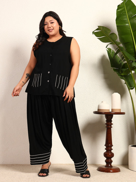 Cotton Mirror Embroidered Neck Patch Anarkali Kurta With Palazzo Indo Western Women's Co-Ord Set