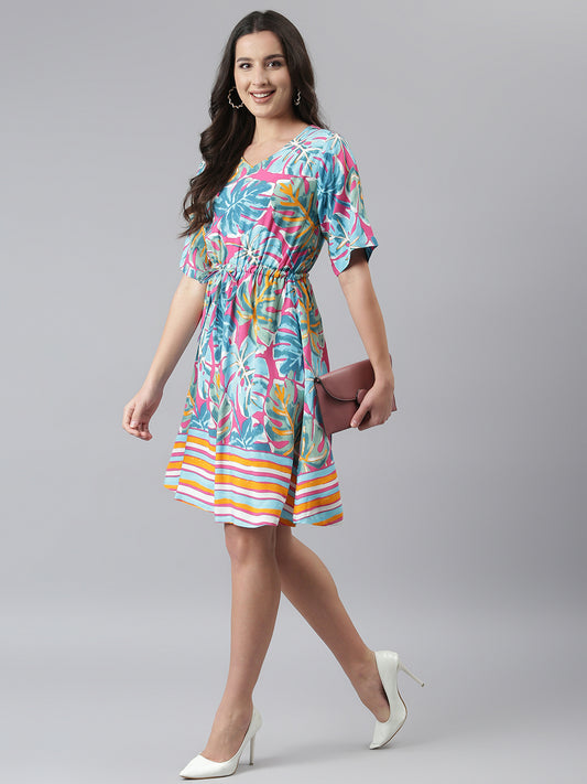 This dress comes with a beautiful tropical print and is flared from the bust. The...