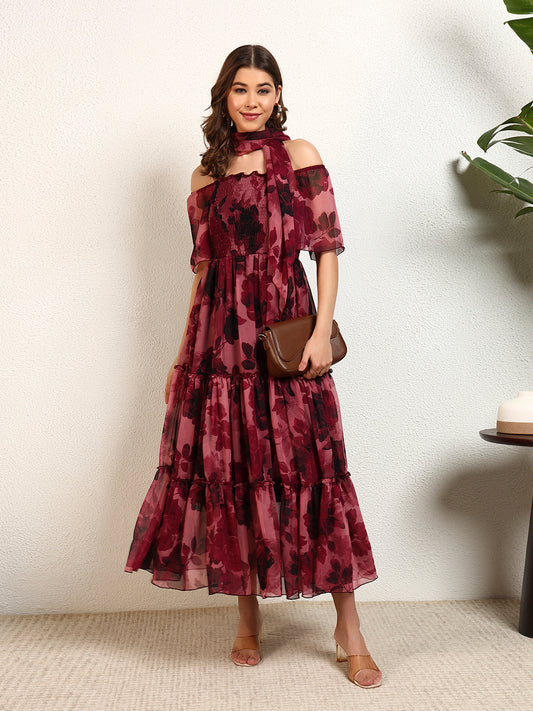 Material : Chiffon Color : Wine Pattern : Floral Neck : Square Neck Wash Care...