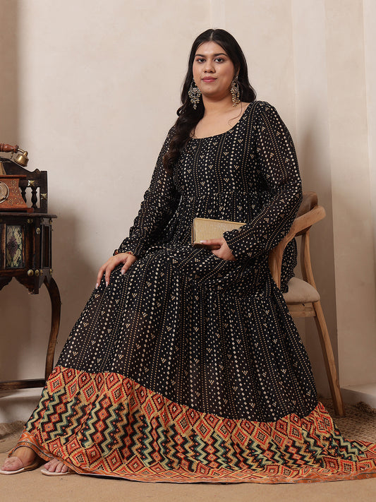 Material : Chiffon Color : Black Pattern : Bandhani Border Print Neck : Round Wash...