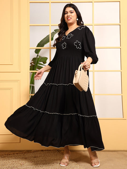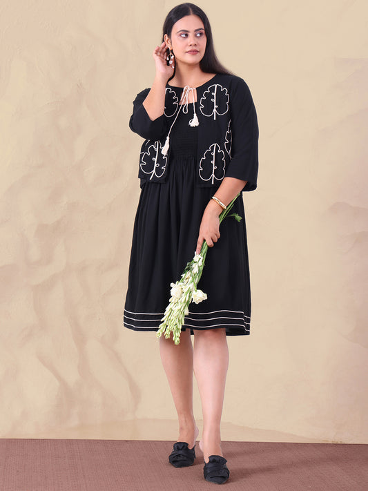 Material : Cotton Embroidered Viscose Rayon Color : Black Pattern : Embroidered With Solid Neck...