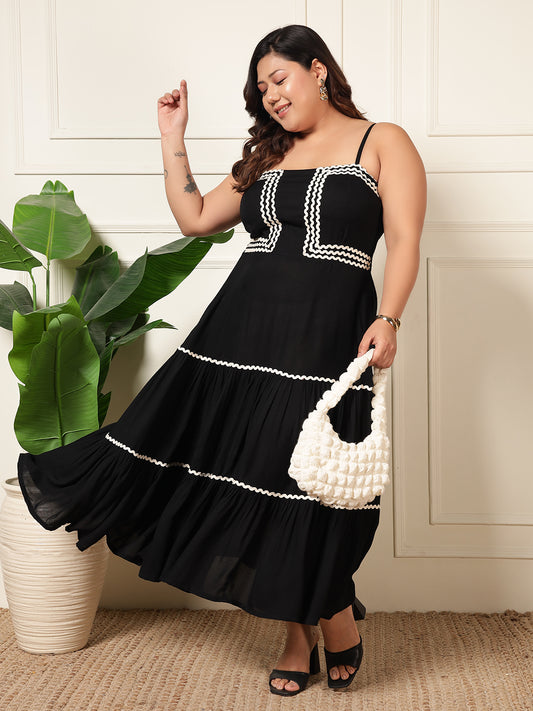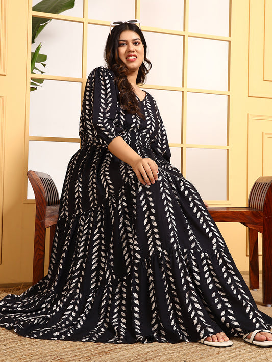 Striped Pure Rayon Women's Tiered Maxi Dress