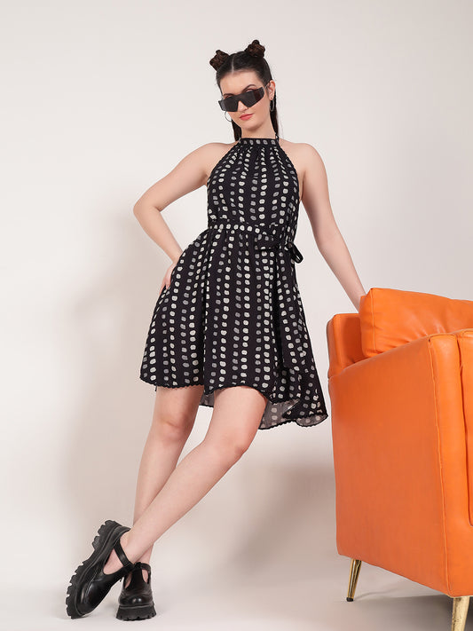 Material : Rayon Color : Black Pattern : Abstract Polka Neck : Halter Wash Care...