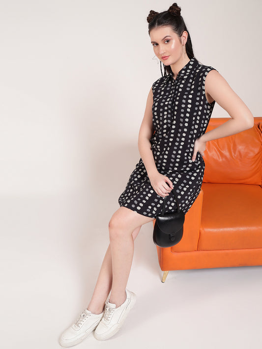 Material : Rayon Color : Black Pattern : Abstract Polka Neck : Collar Wash Care...