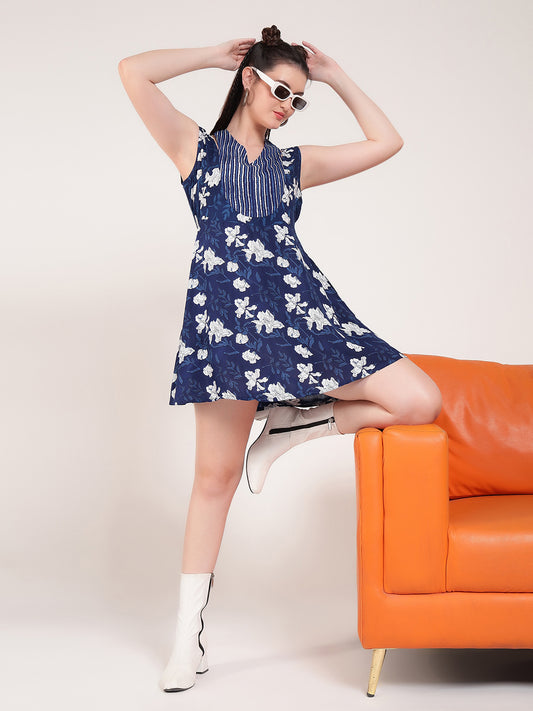 Material : Rayon Color : Blue Indigo Pattern : Floral Stripe Indigo Neck : V-Neck...