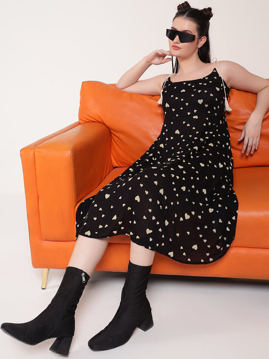 Material : Wrinkle Rayon Color : Black Pattern : Heart Print Neck : Boat Wash...
