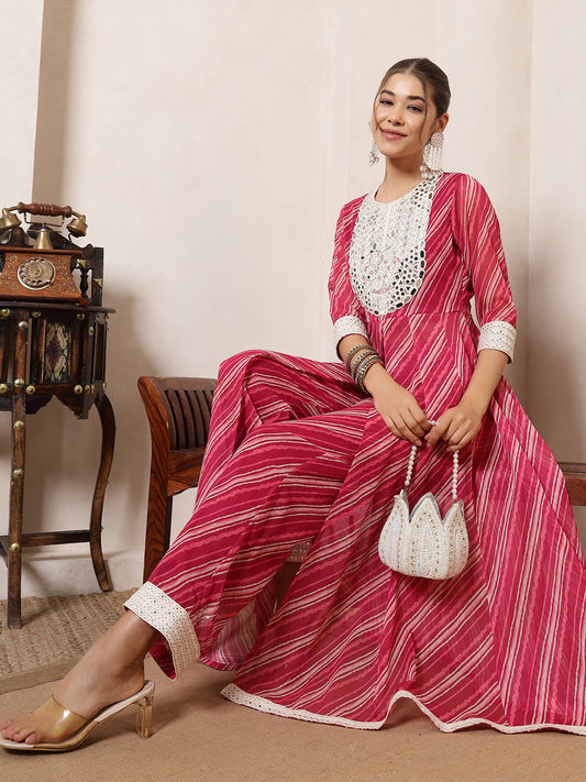 Material : Chiffon Color : Pink Pattern : Lahariya Neck : Round Wash Care :...