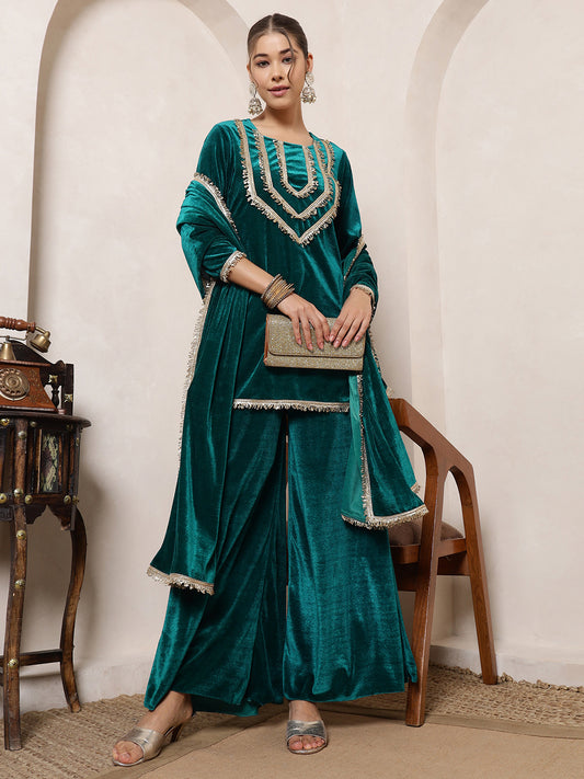 Material : Velvet Color : Rama Green Pattern : Solid Neck : Round Wash Care...