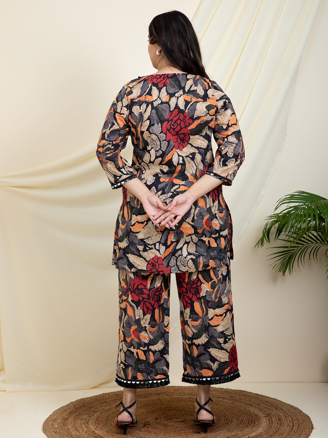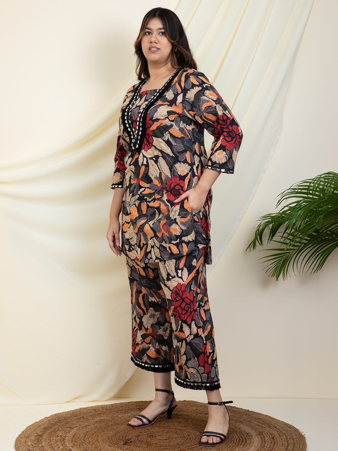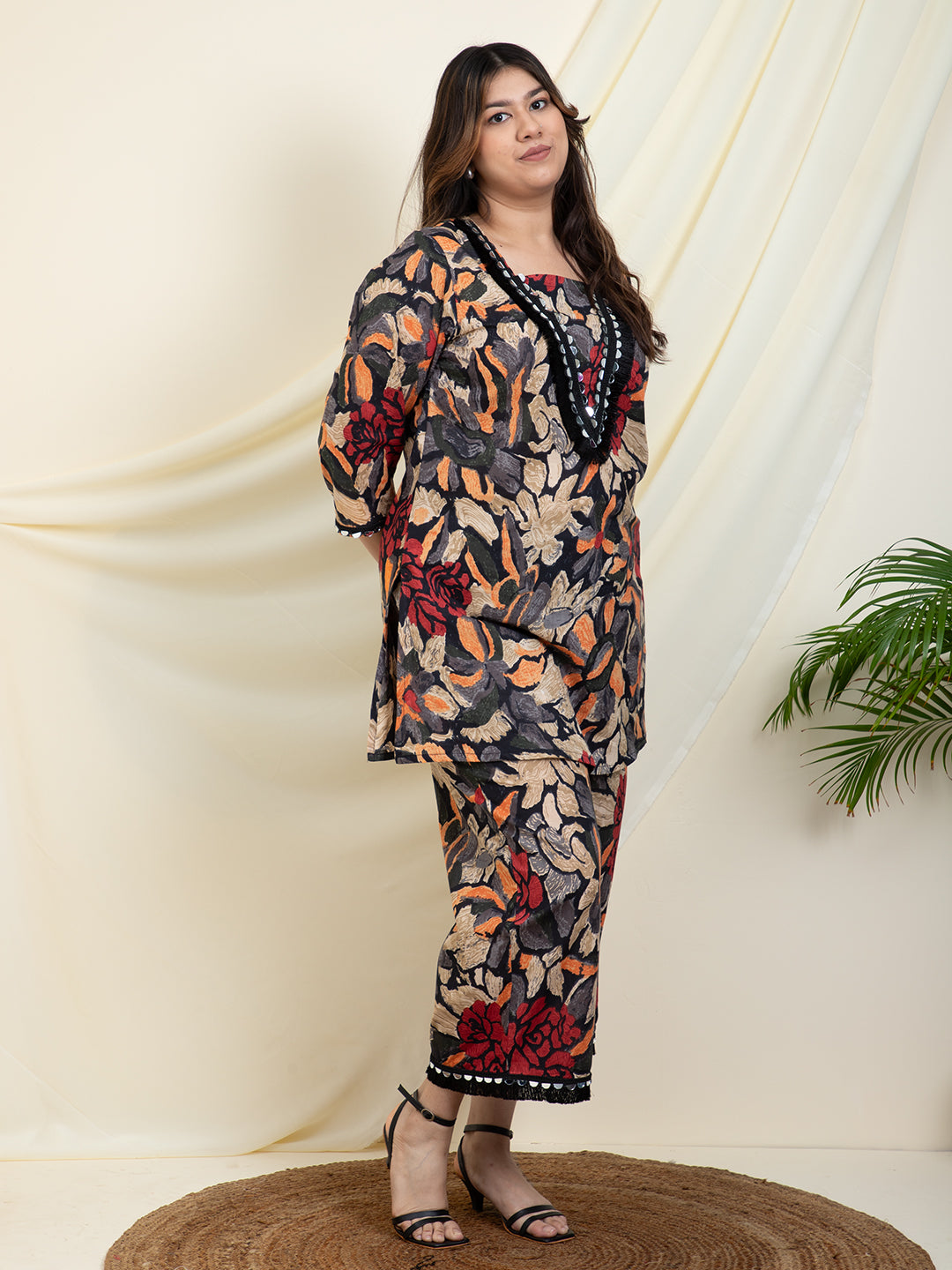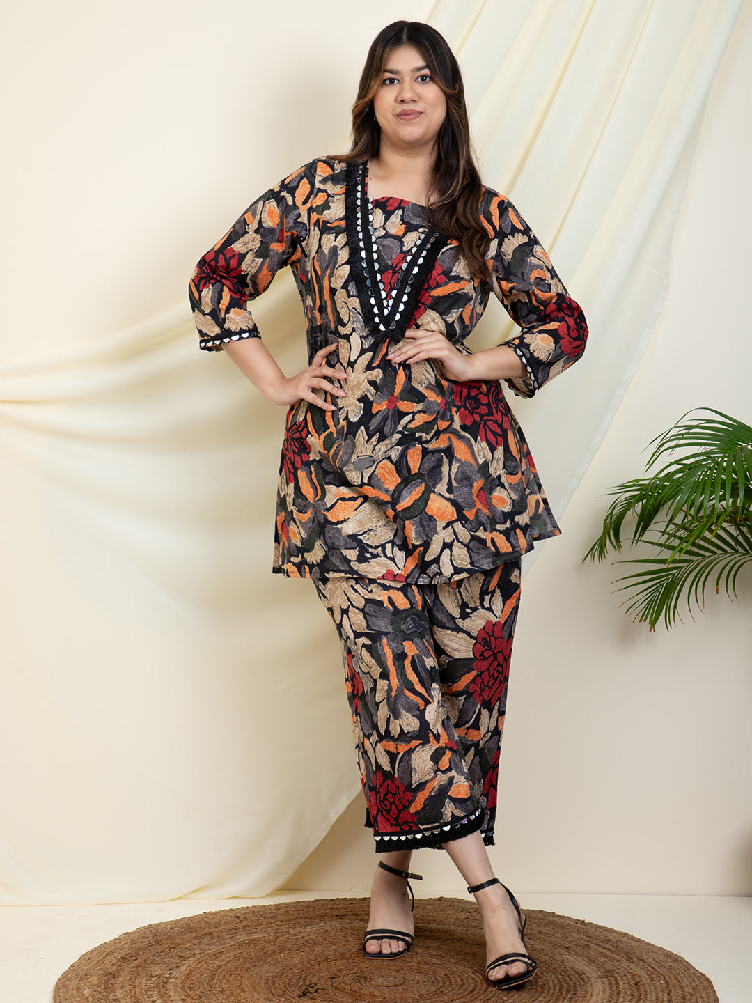 Abstract Floral Printed Women Plus SIze Co-Ord Set