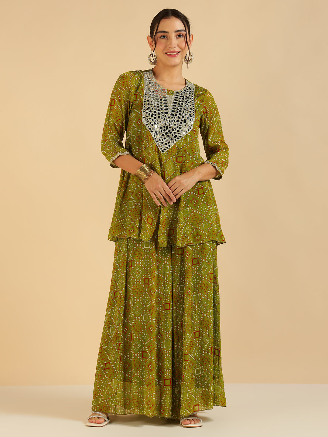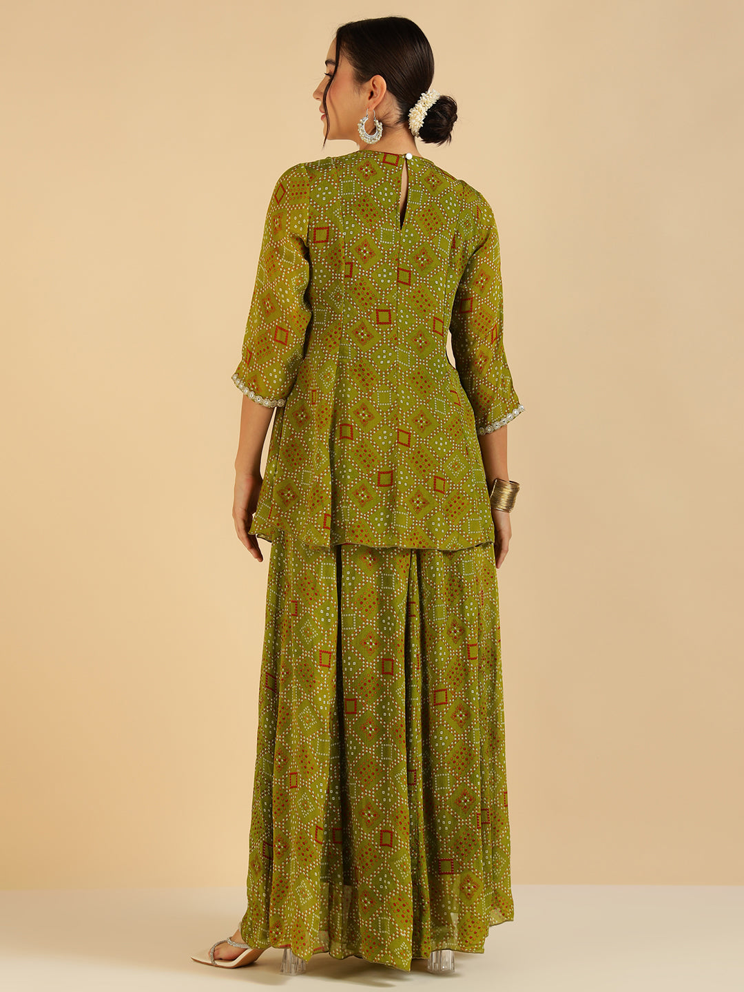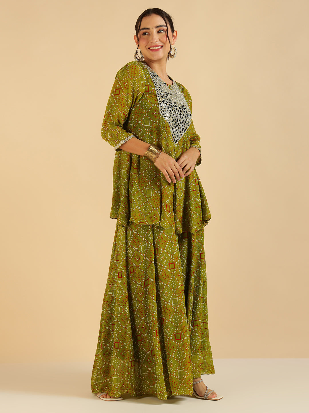 Bandhani Printed Peplum Top With Sharara Fusion Women Co-Ord Set