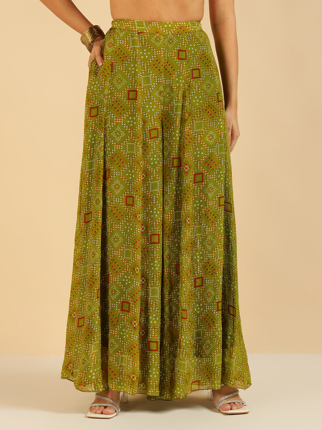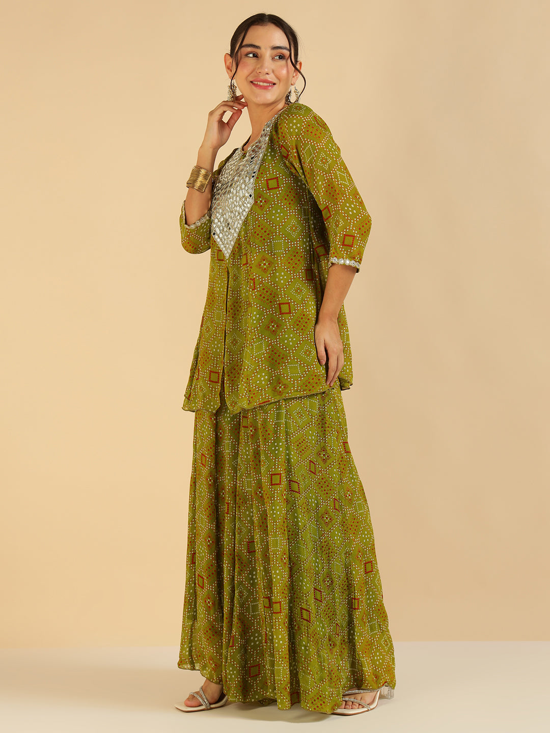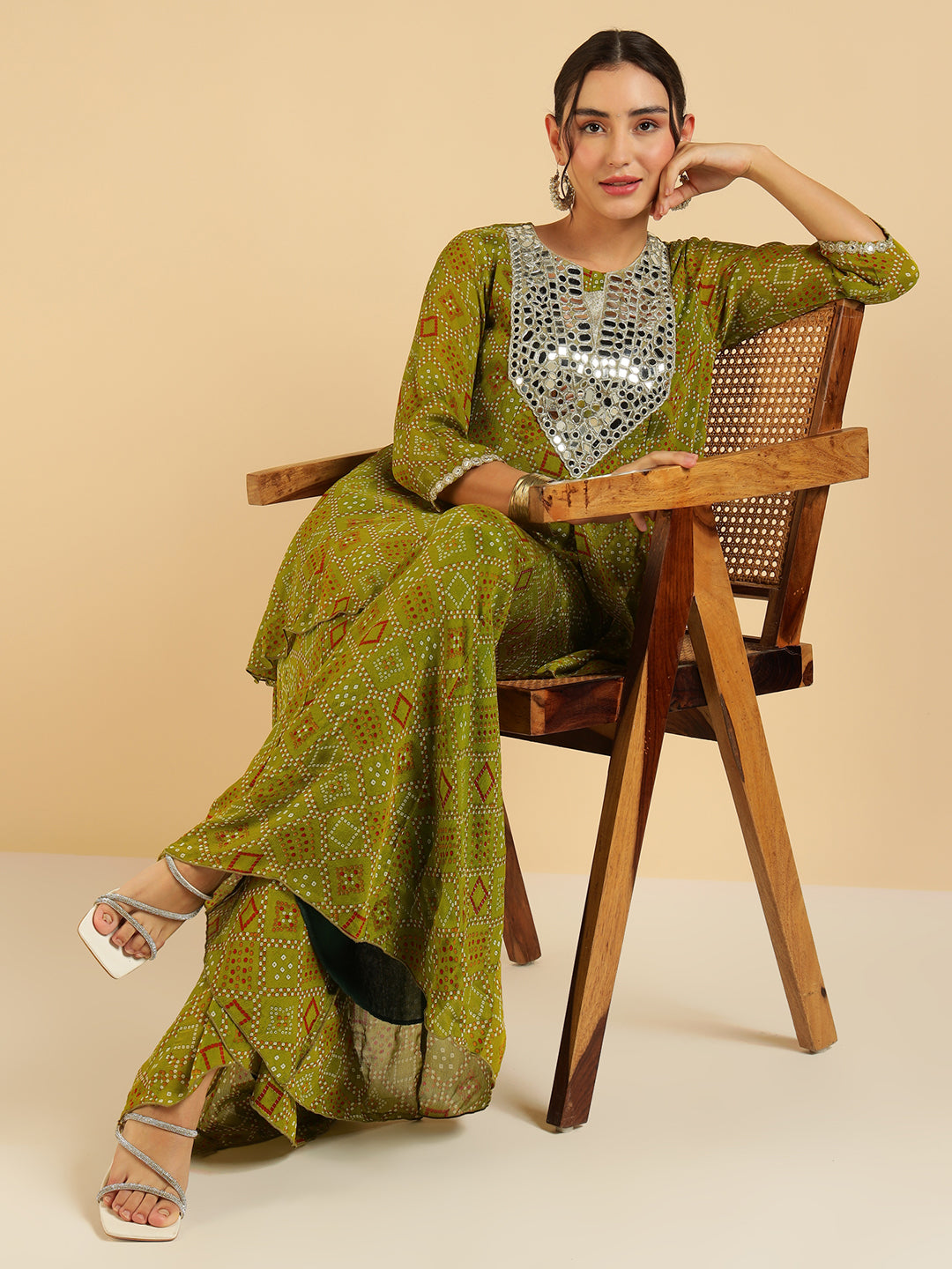 Bandhani Printed Peplum Top With Sharara Fusion Women Co-Ord Set