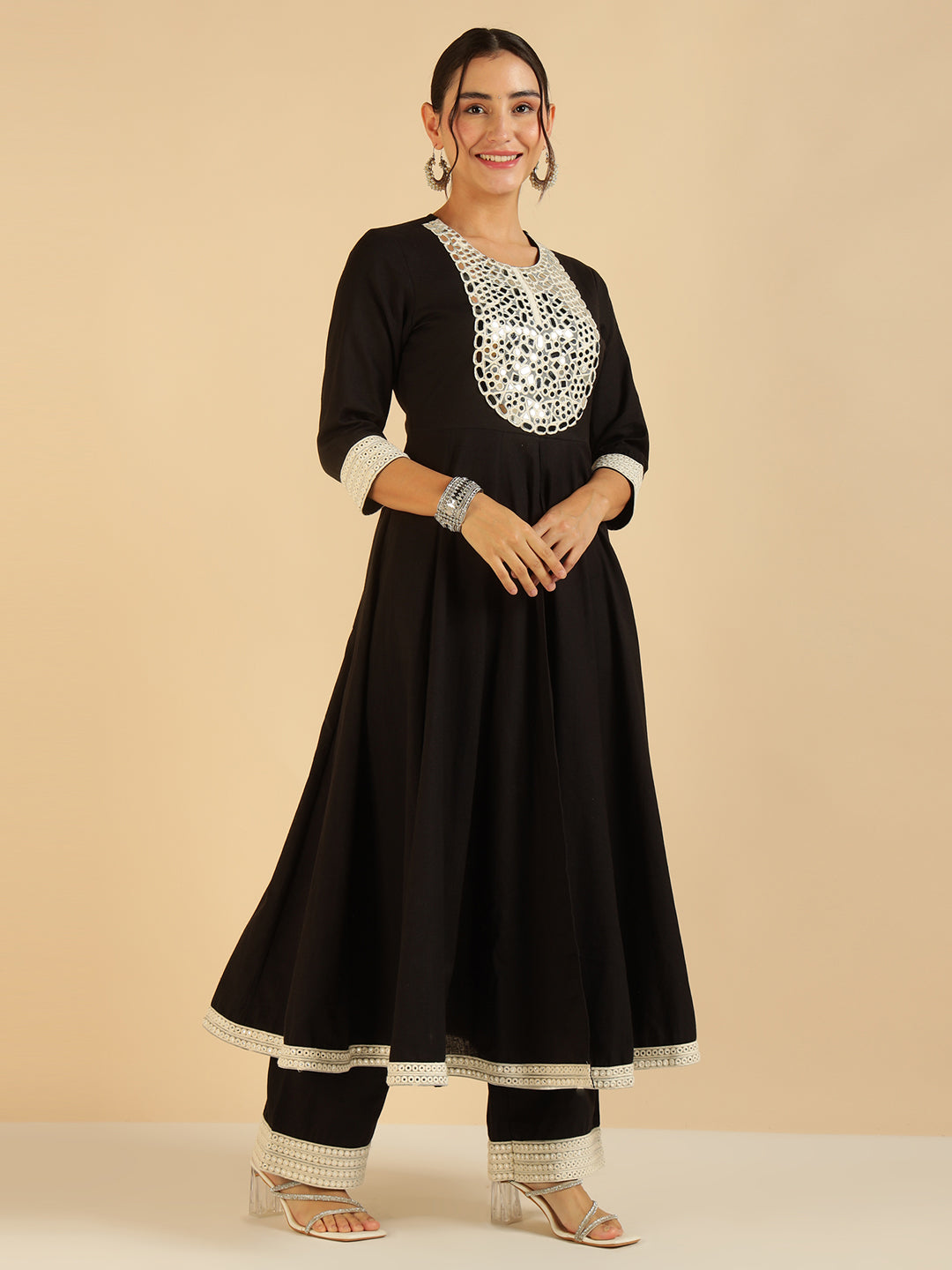 Black Embroidered Tunic & Palazzo Fusion Women Co-Ord Set
