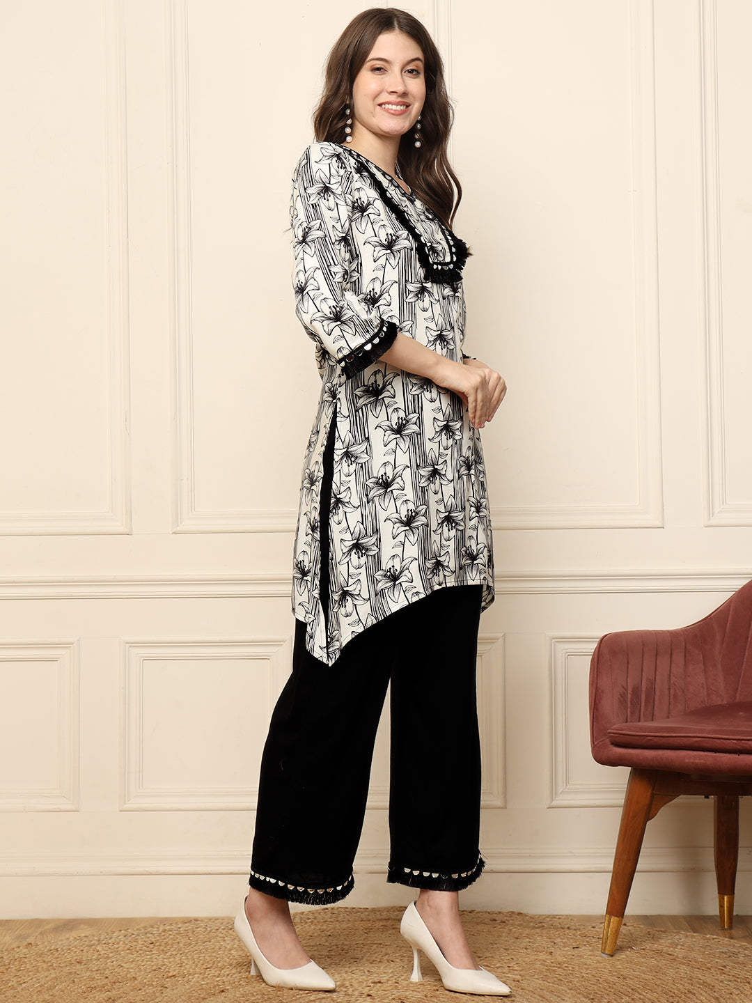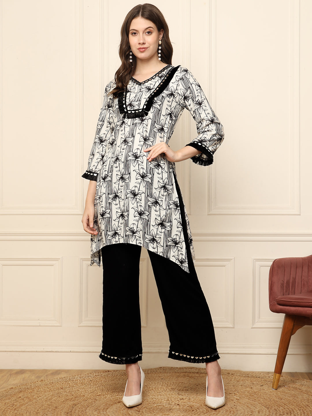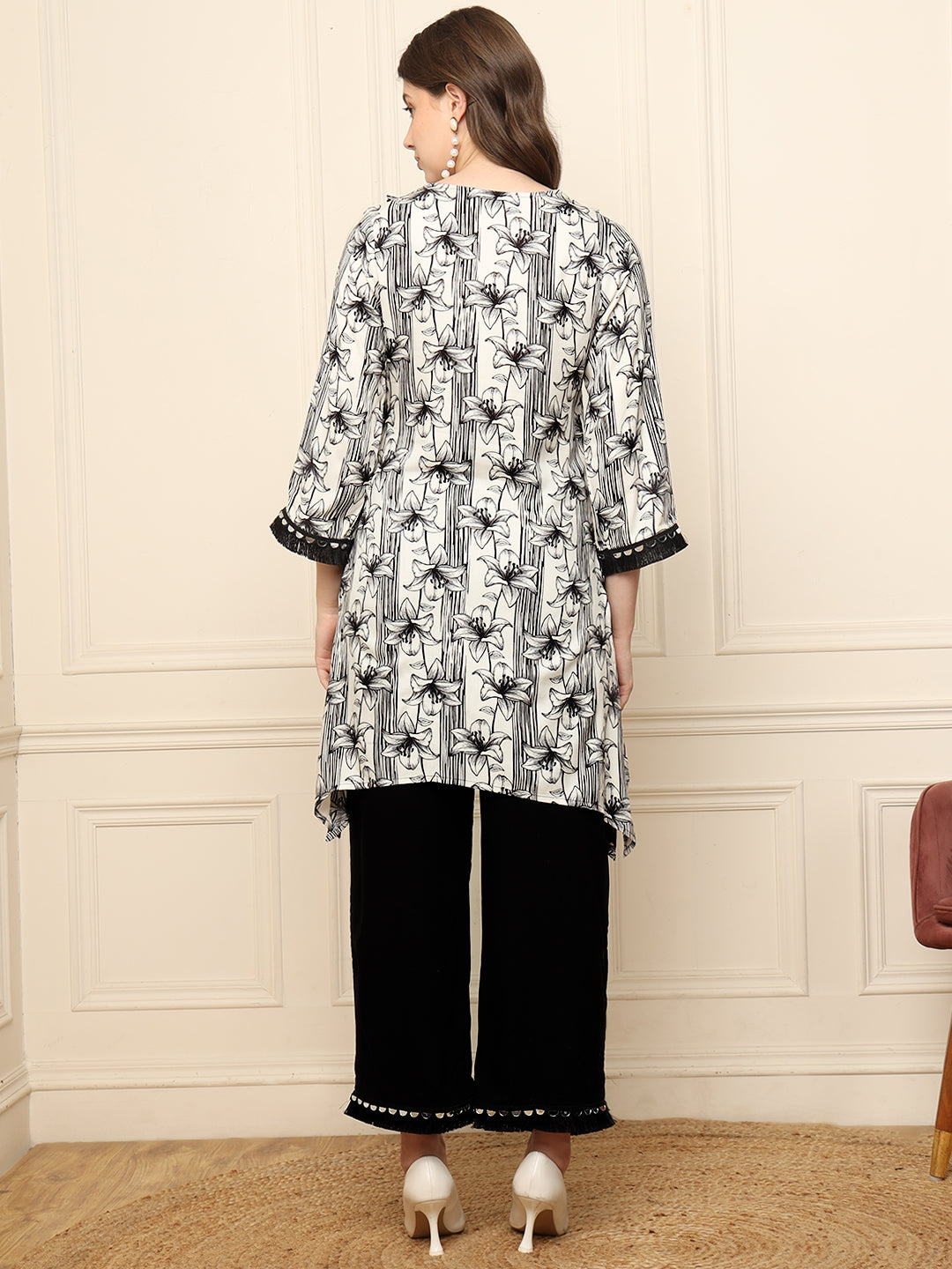 Black Floral Printed Kurta With Palazzo Women Co-Ord Set