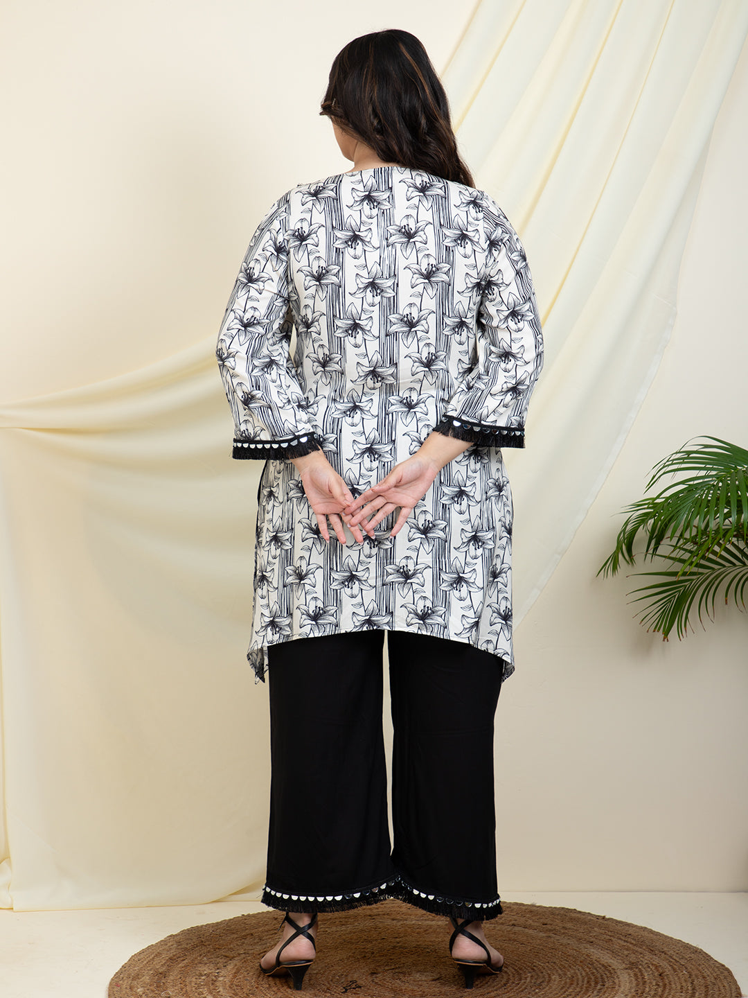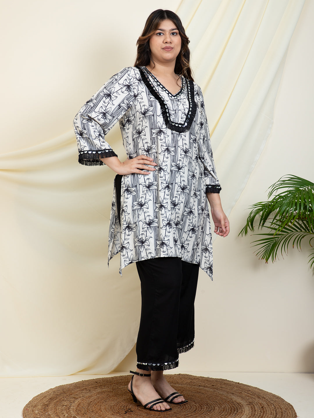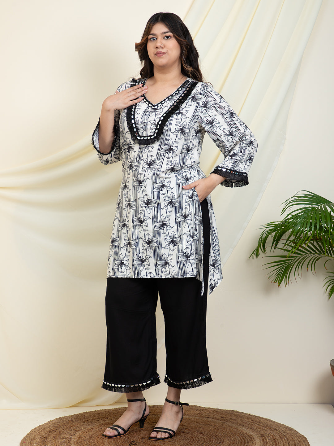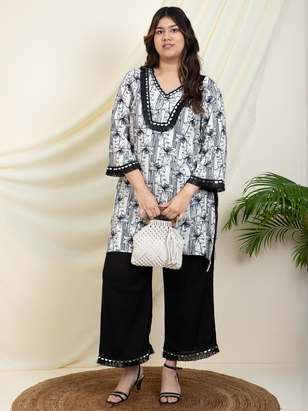 Black Floral Printed Kurta With Palazzo Women Plus SIze Co-Ord Set