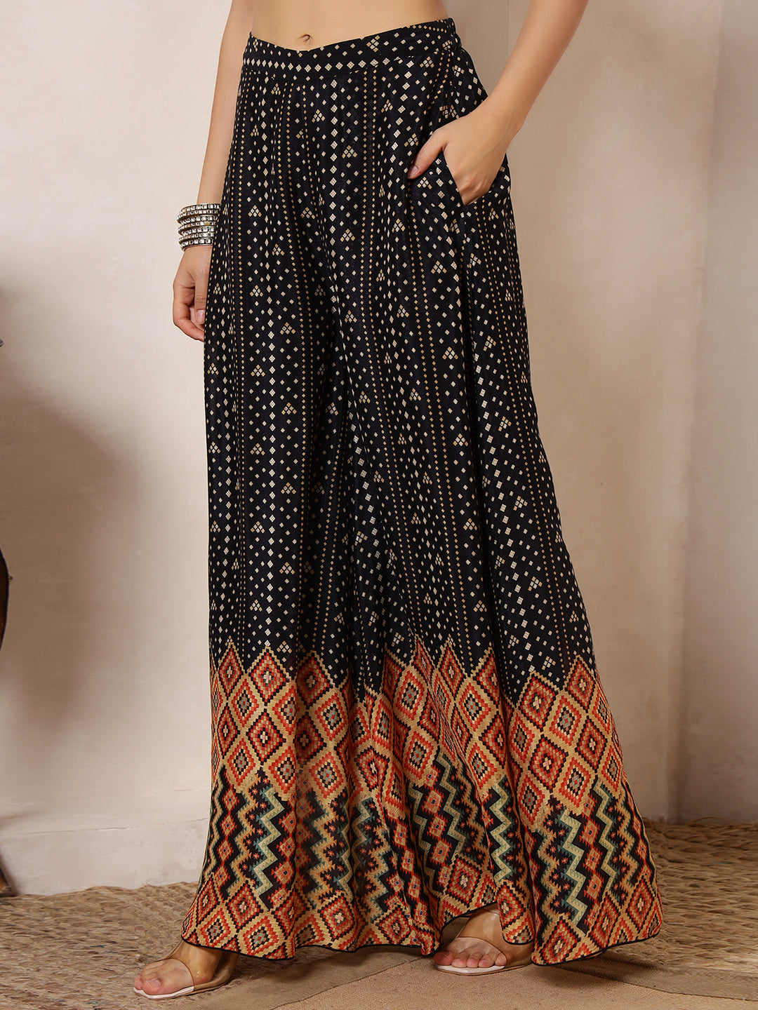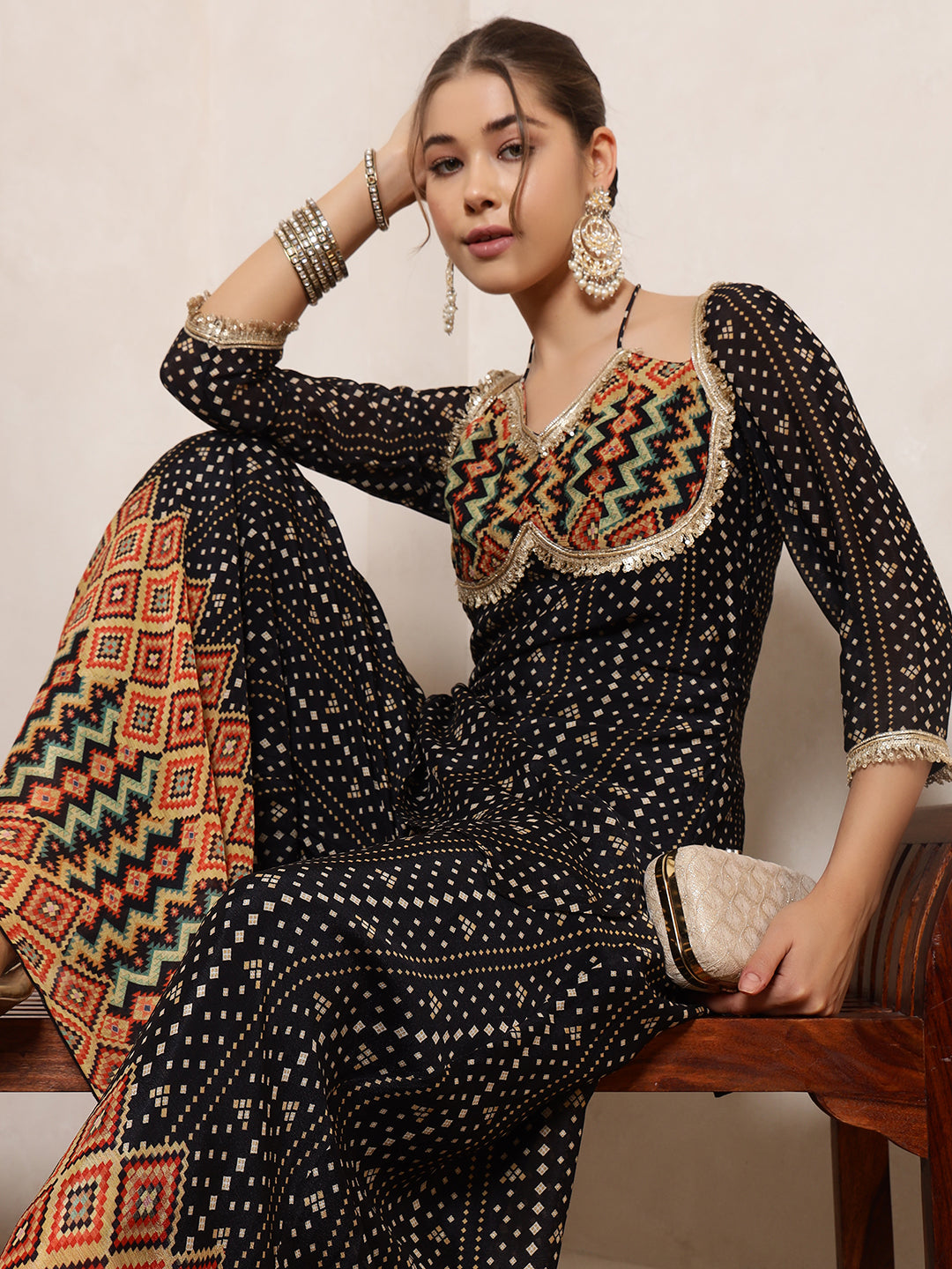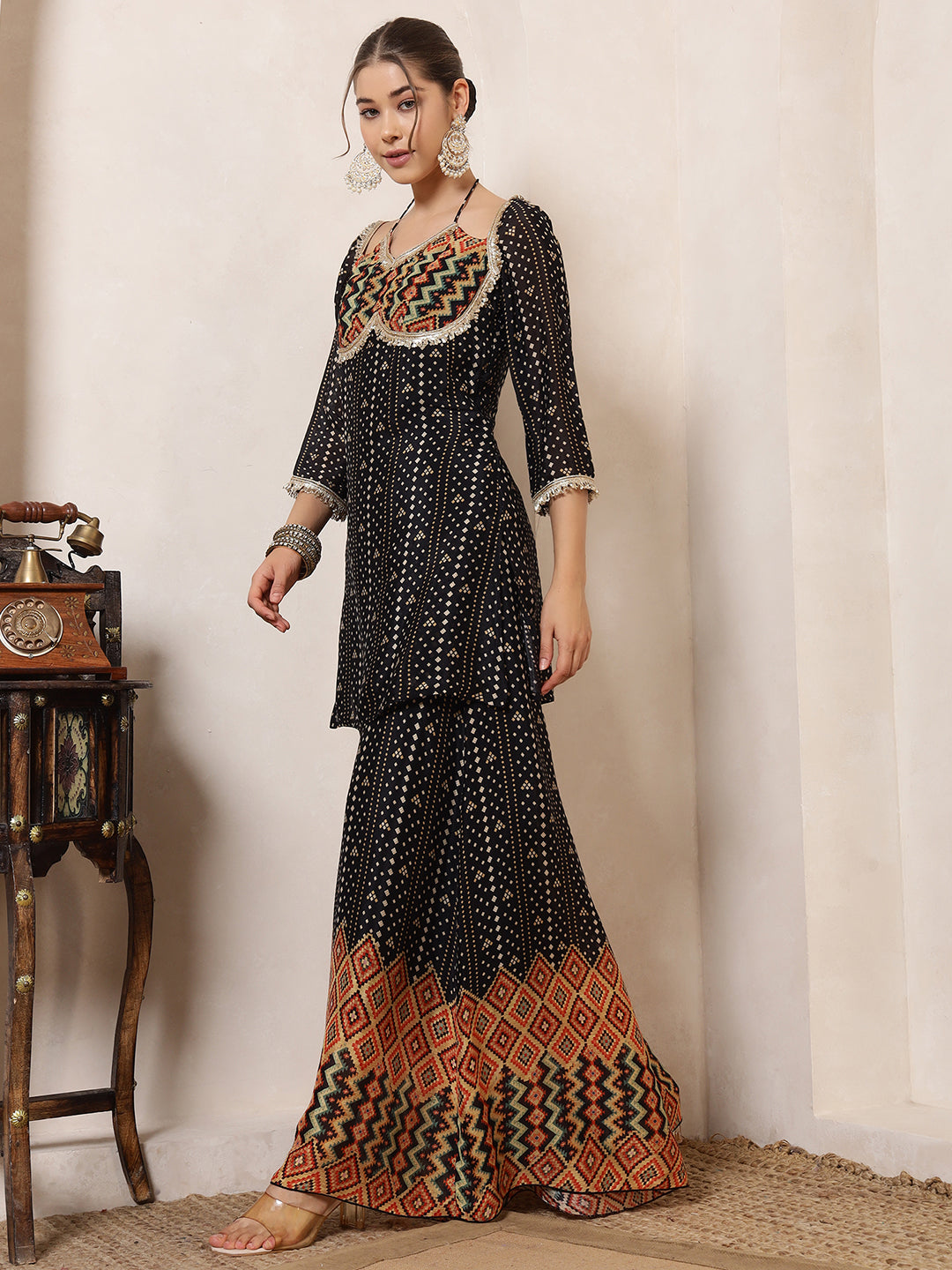 Black Halter Neck Bandhani Printed Kurta With Palazzo Indo Western Women Co-Ord Set