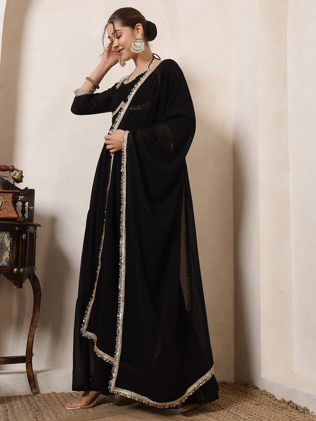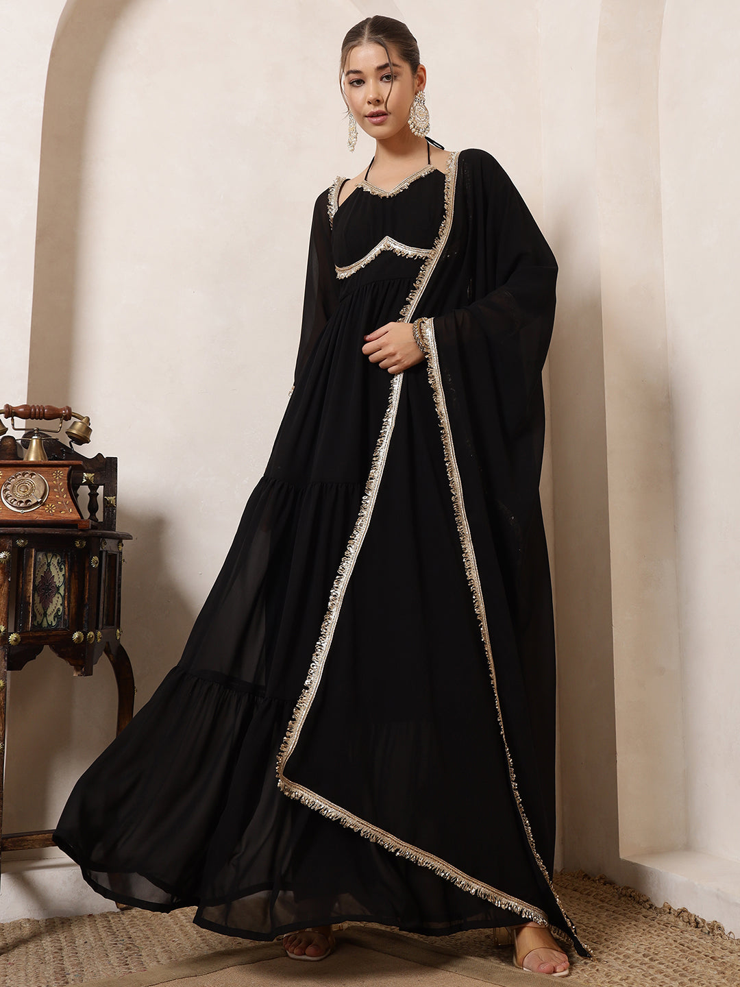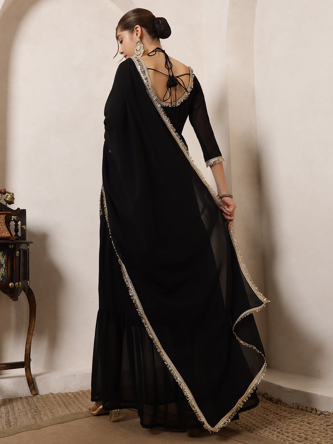 Black Halter Neck Kurta With Dupatta Indo Western Women Kurta Set