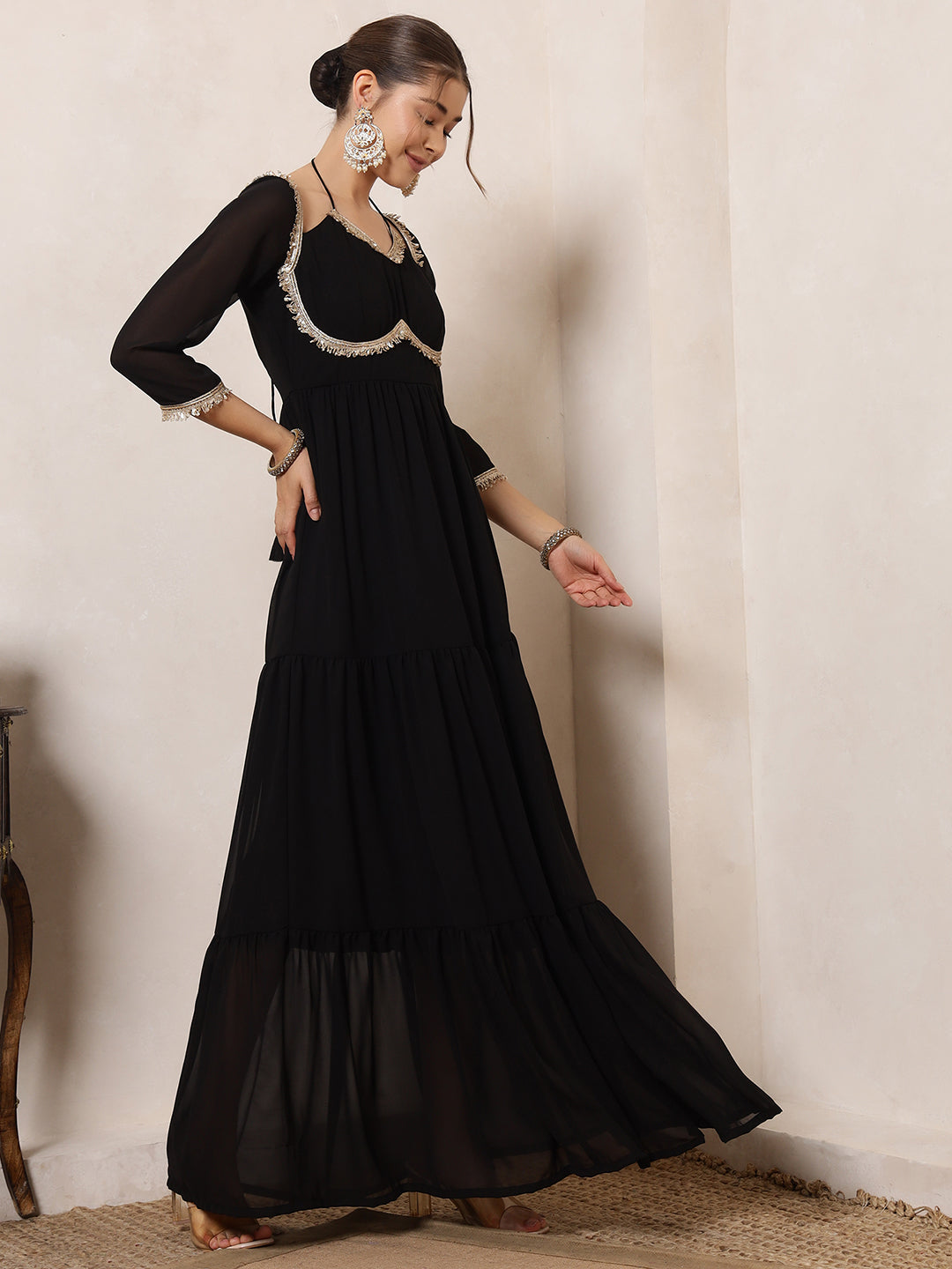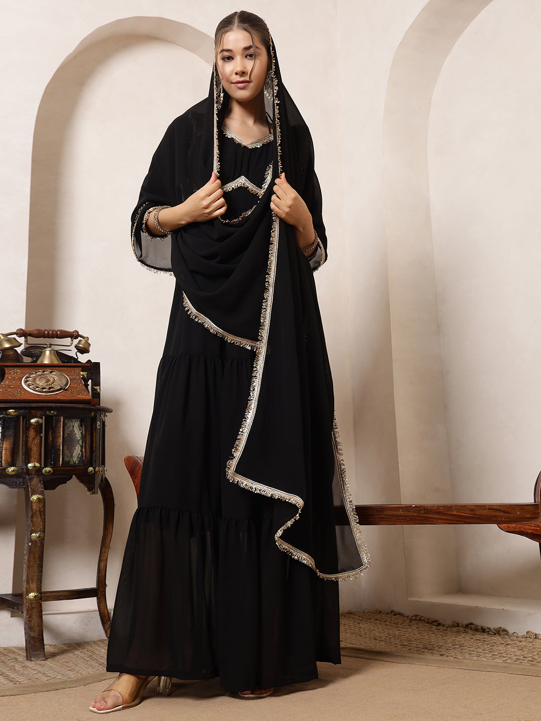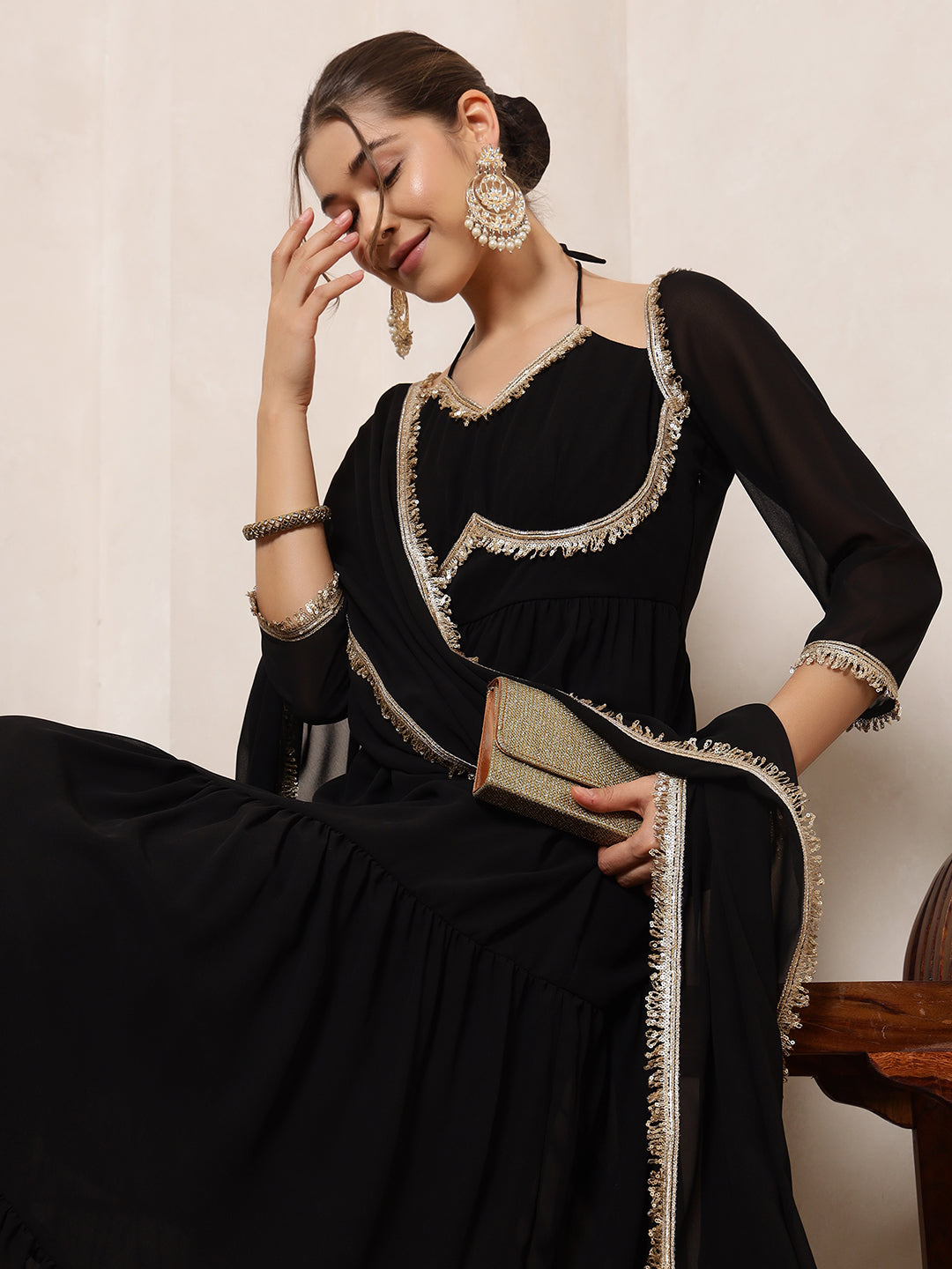 Black Halter Neck Kurta With Dupatta Indo Western Women Kurta Set