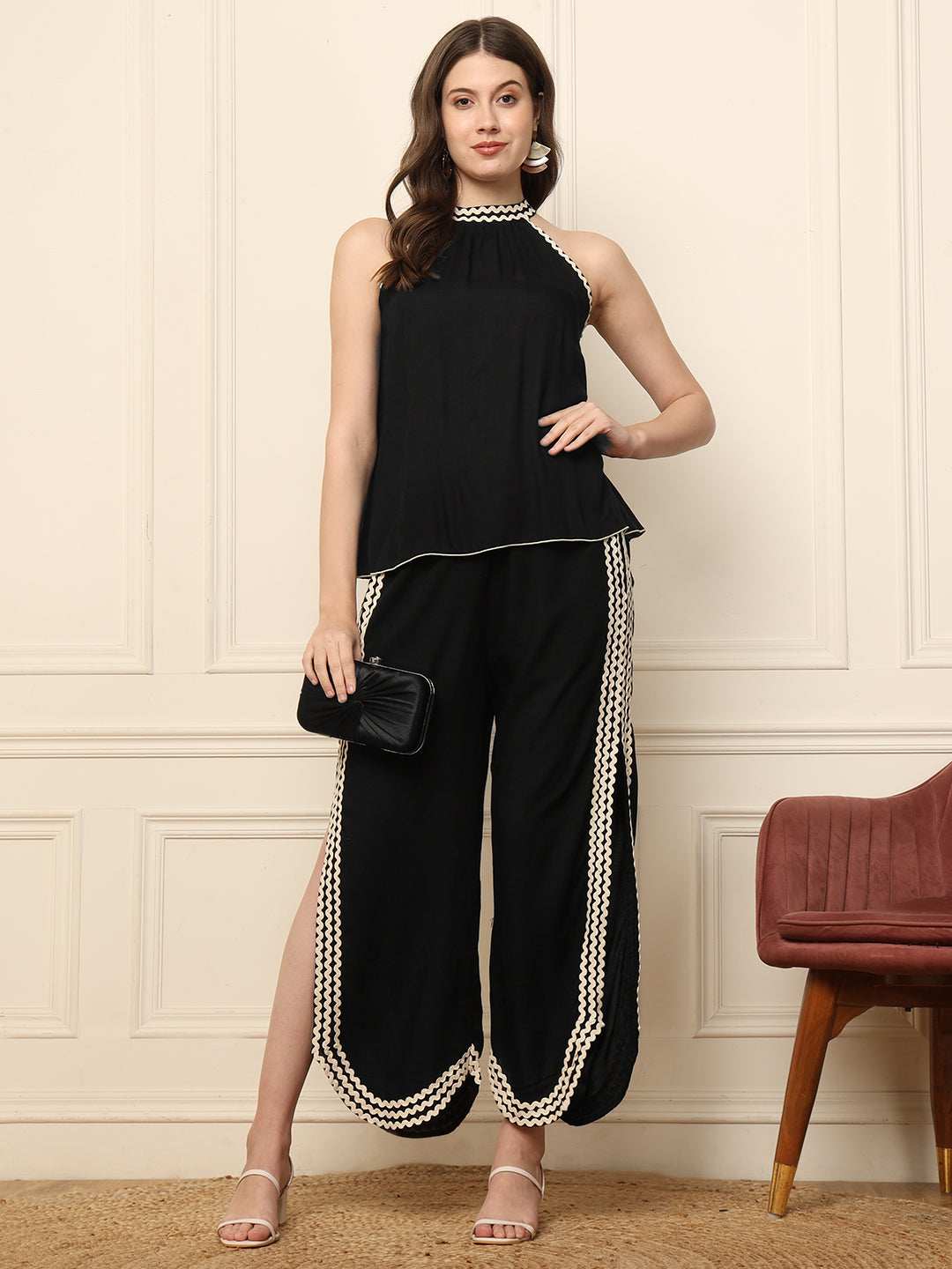 Black Halter Neck Top With Pants Women Co-Ord Set