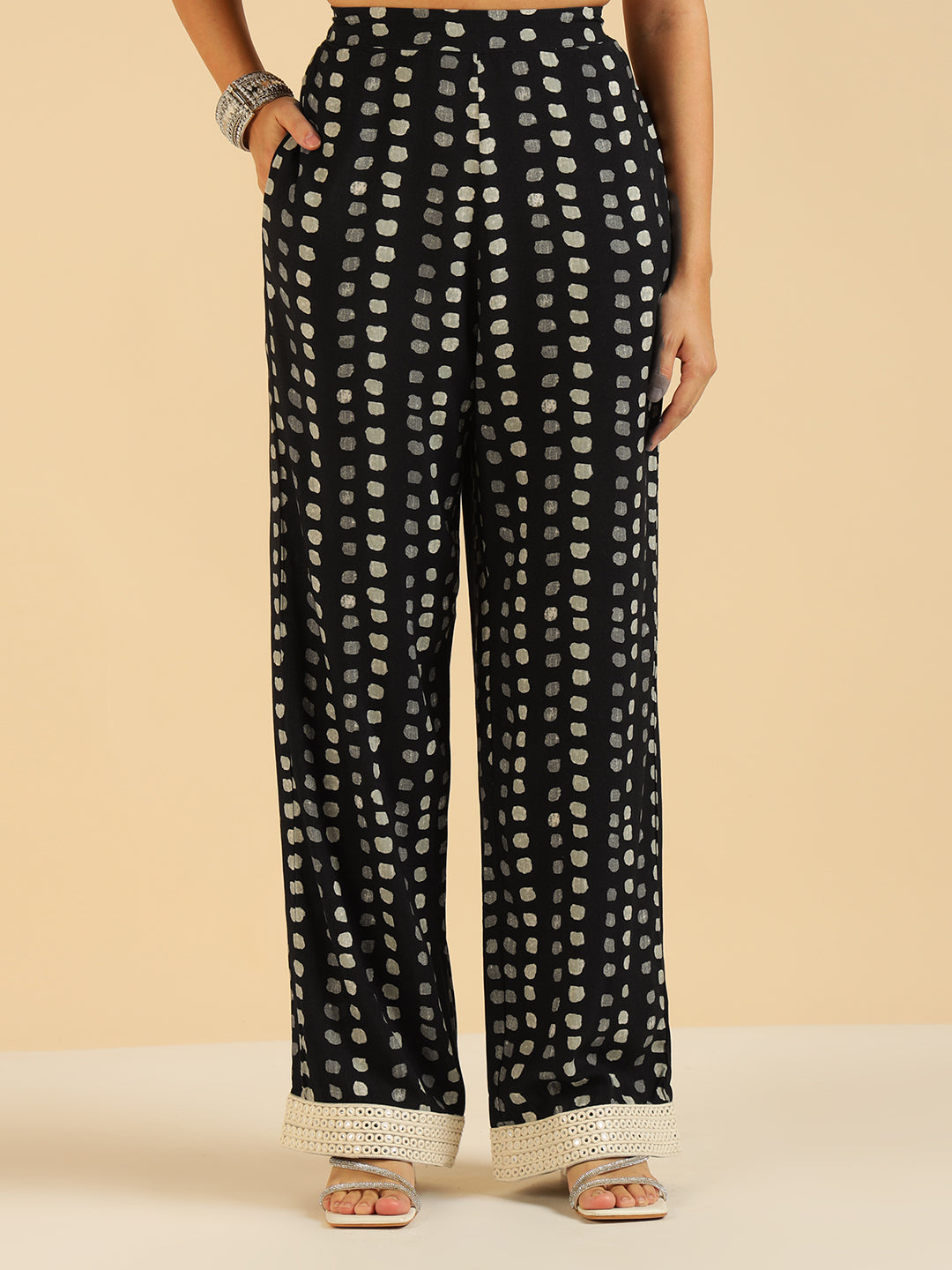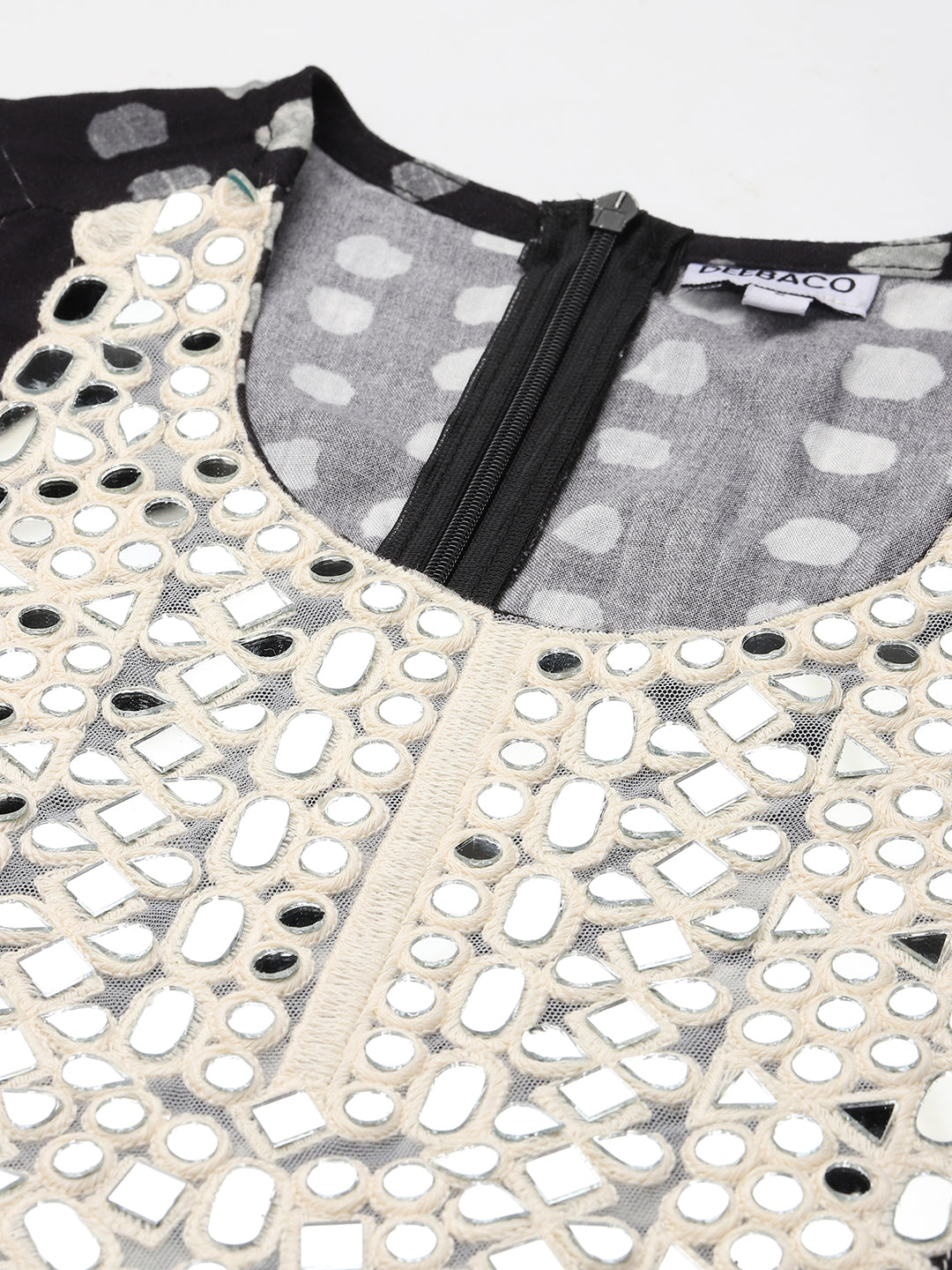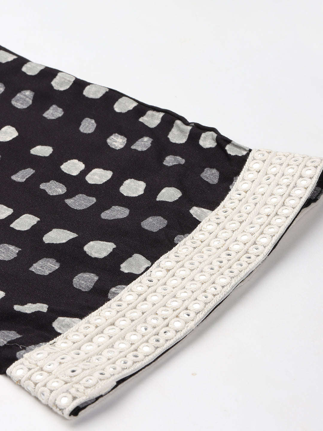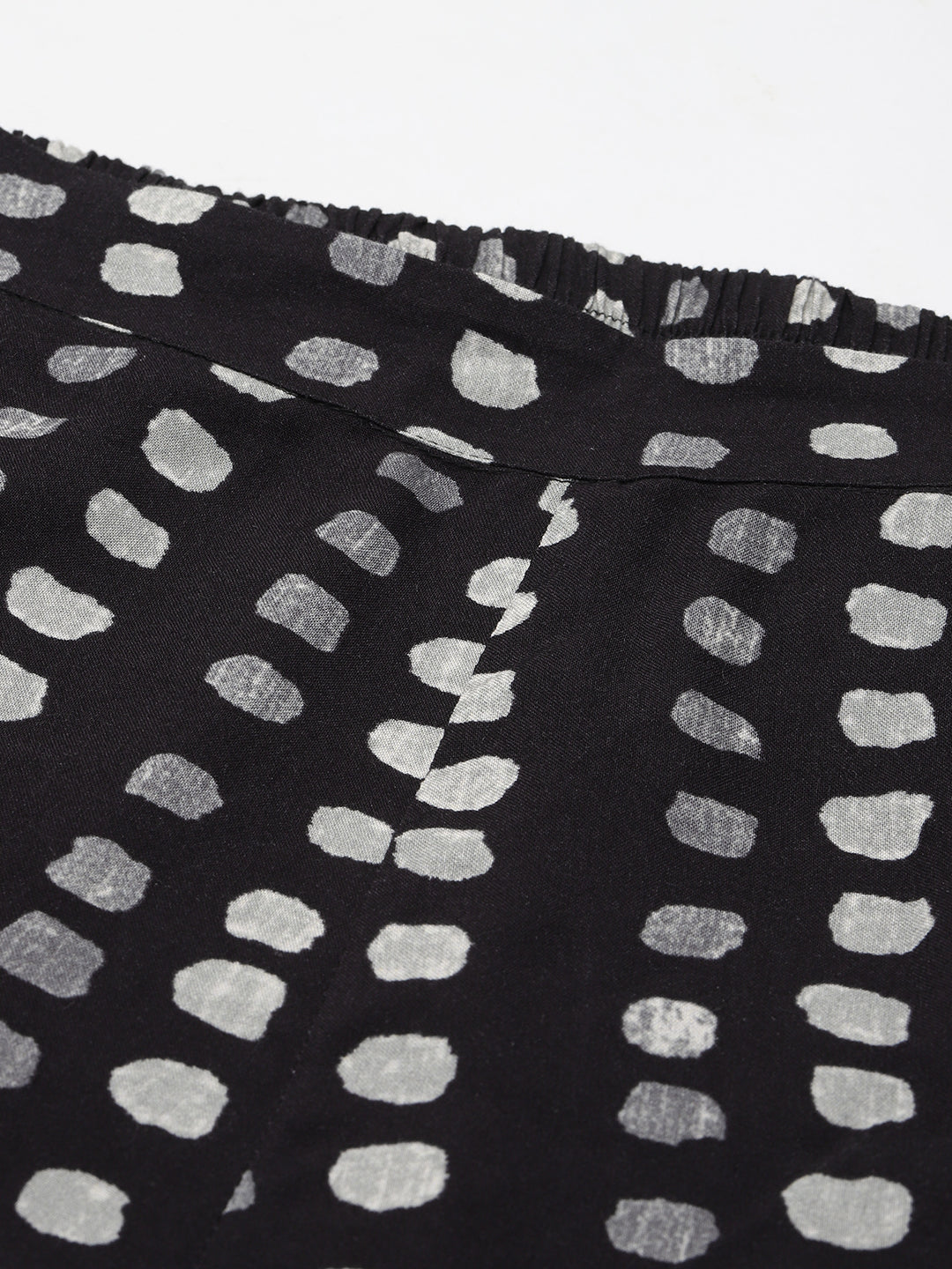 Black Polka Printed Embroidered Tunic & Palazzo Fusion Women Co-Ord Set