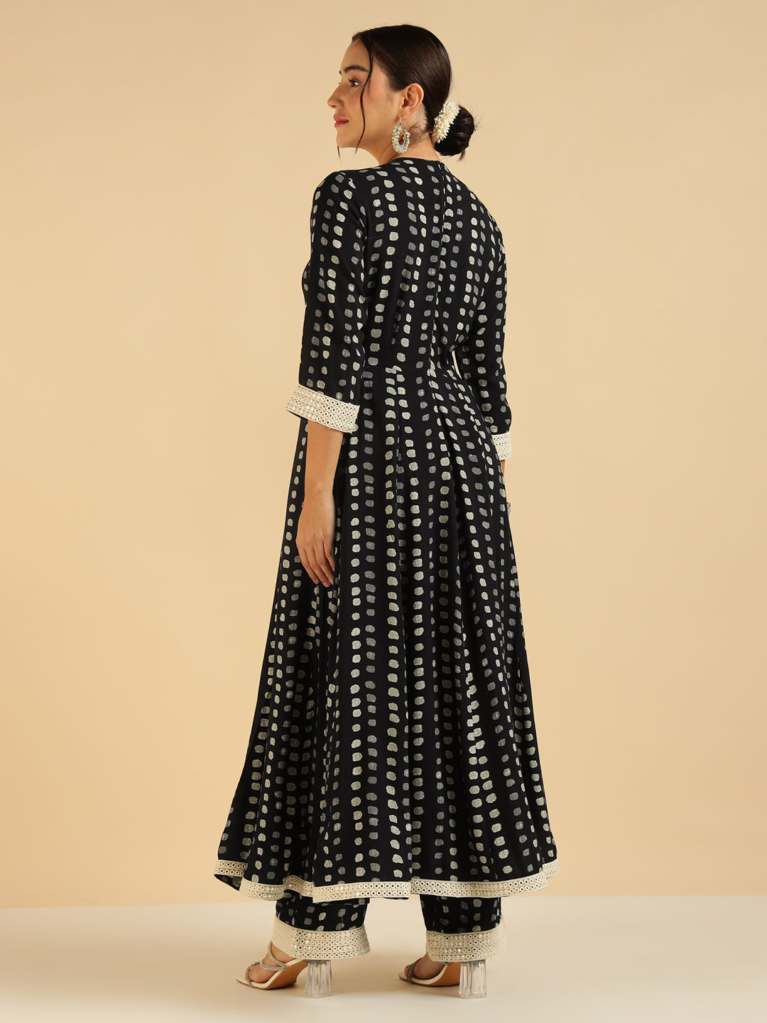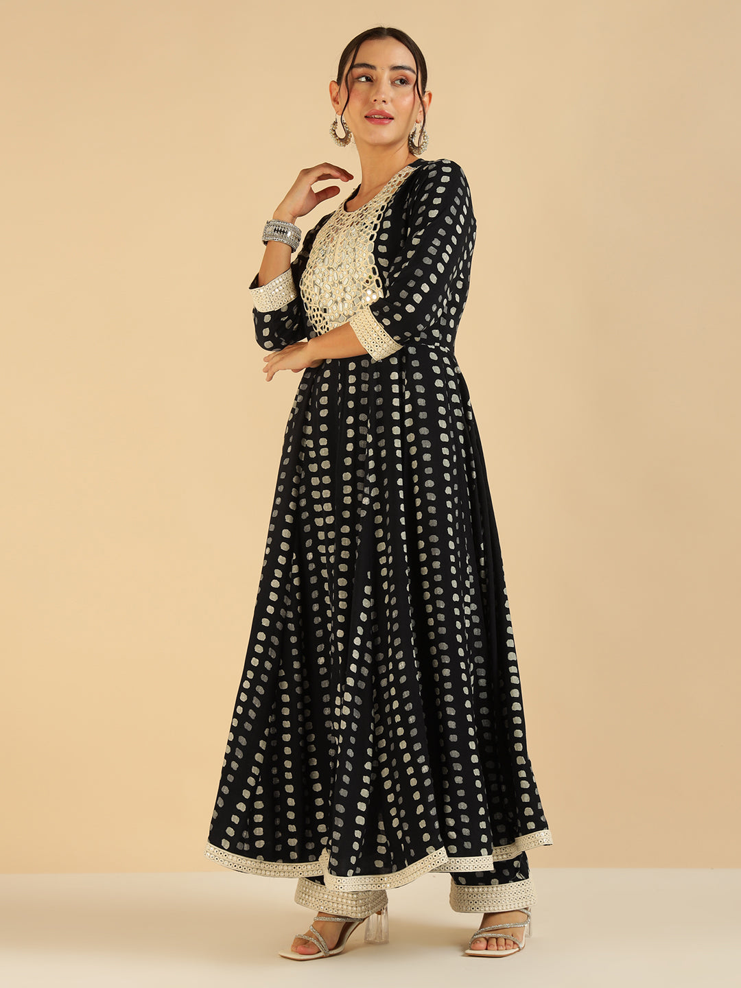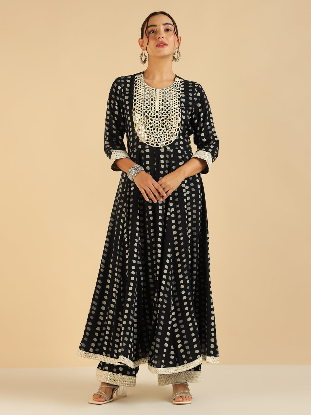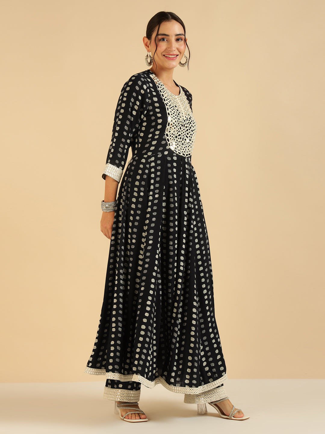 Black Polka Printed Embroidered Tunic & Palazzo Fusion Women Co-Ord Set