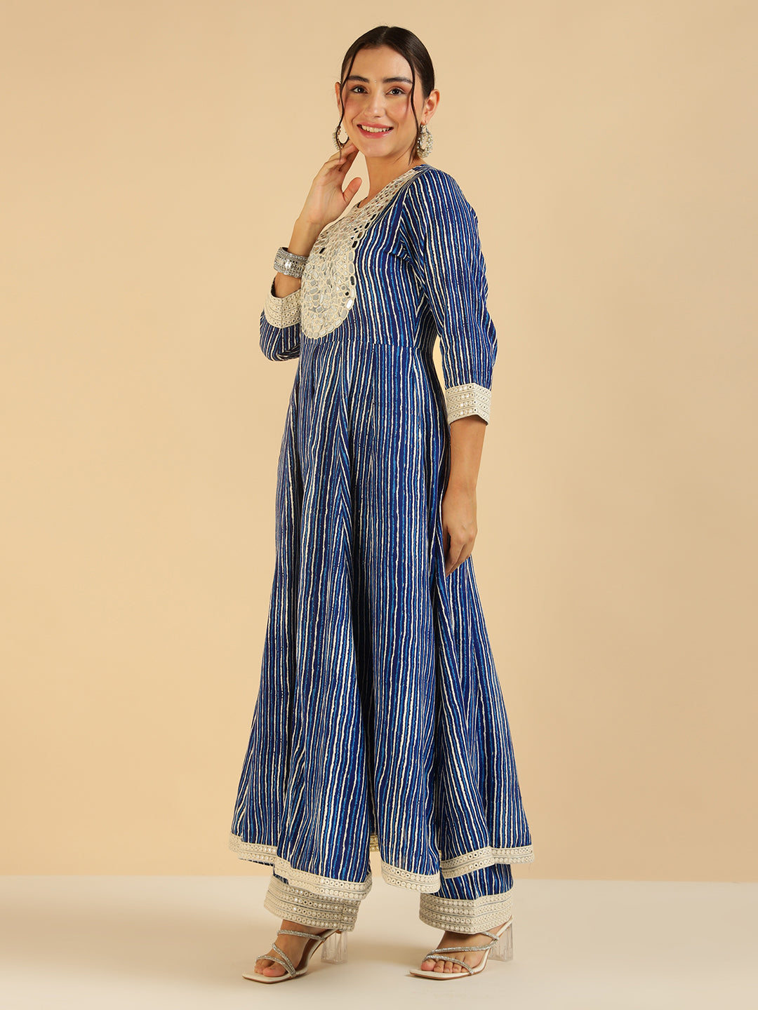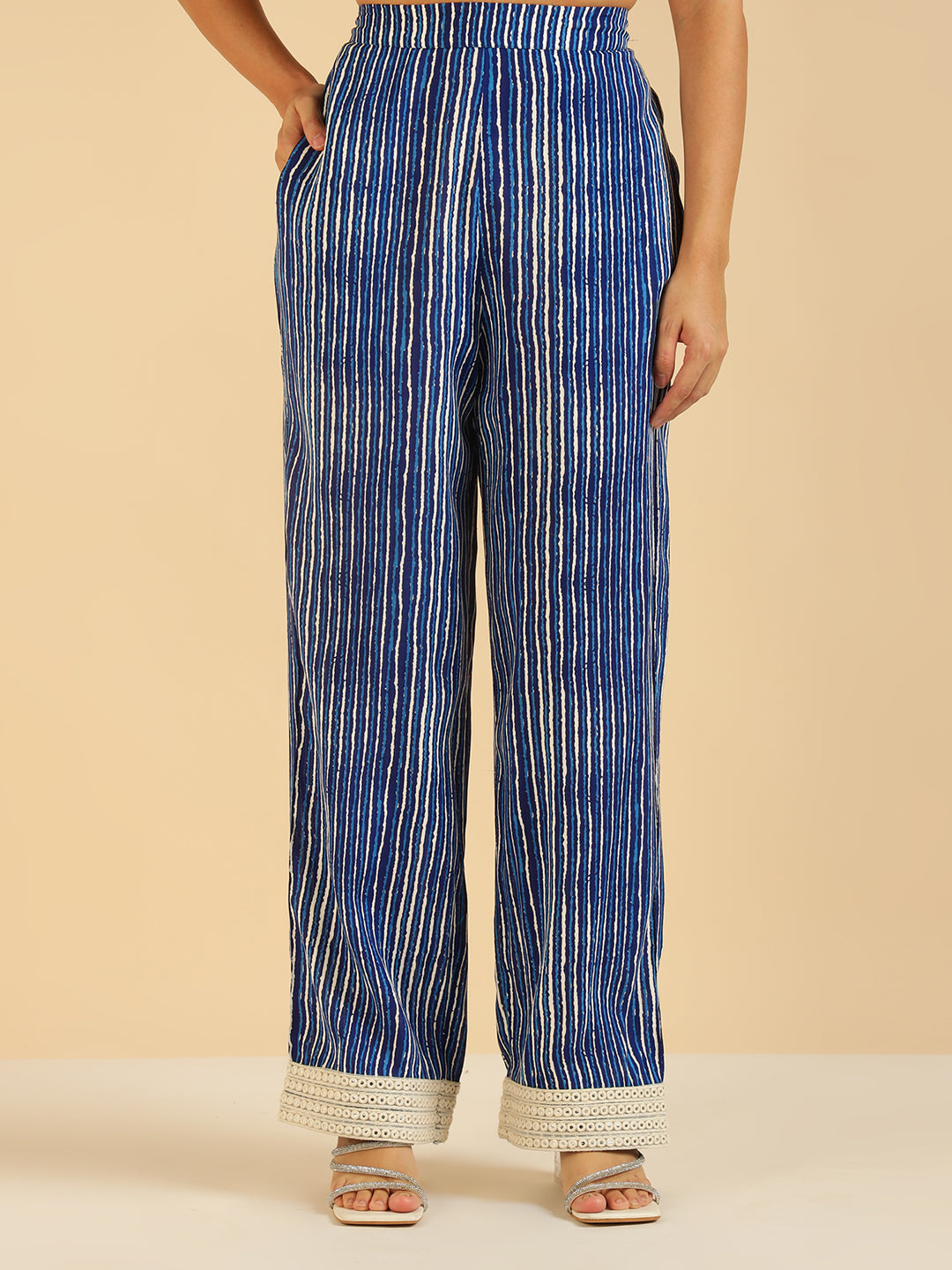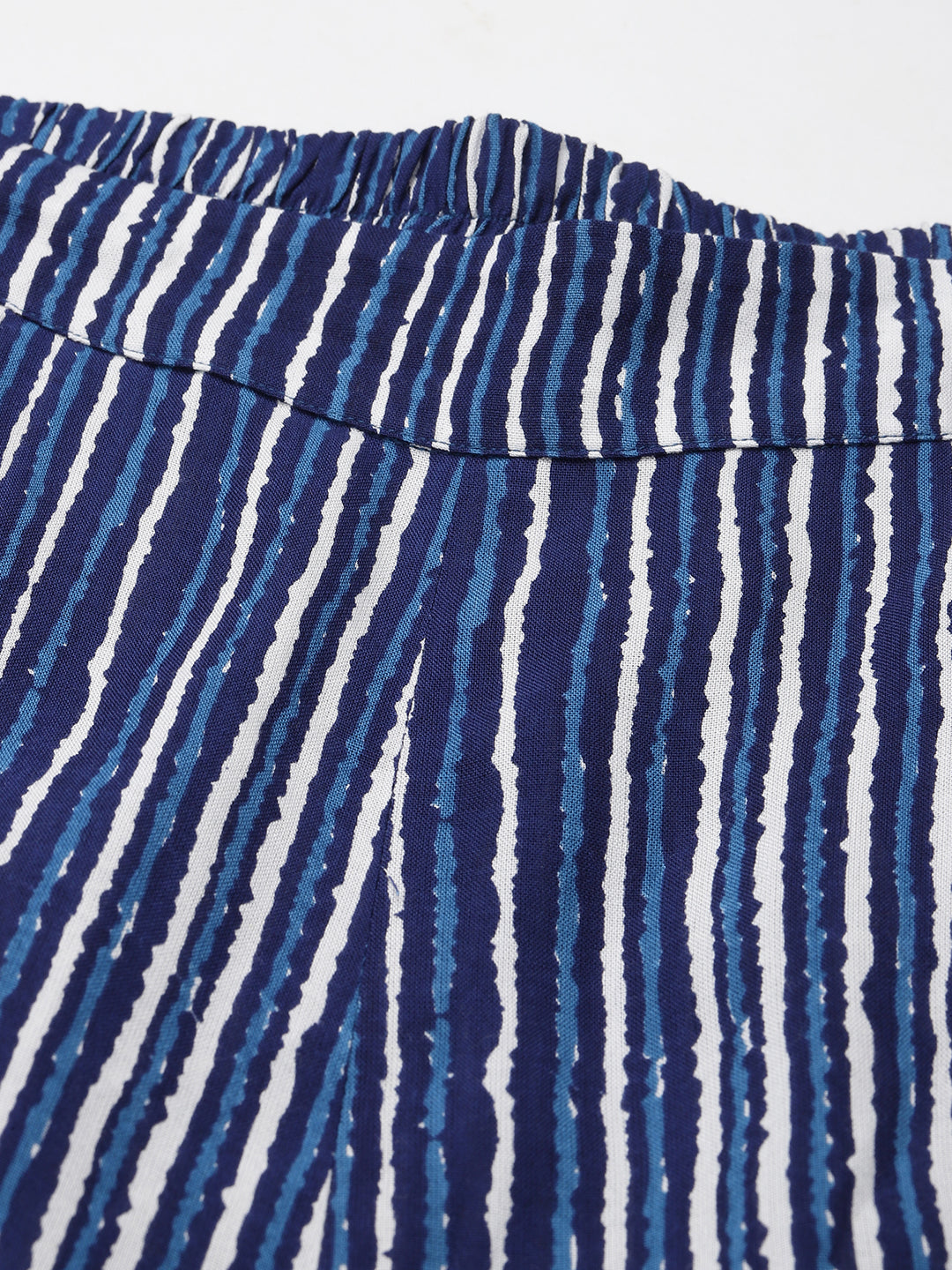 Blue Stripe Embroidered Tunic & Palazzo Fusion Women Co-Ord Set