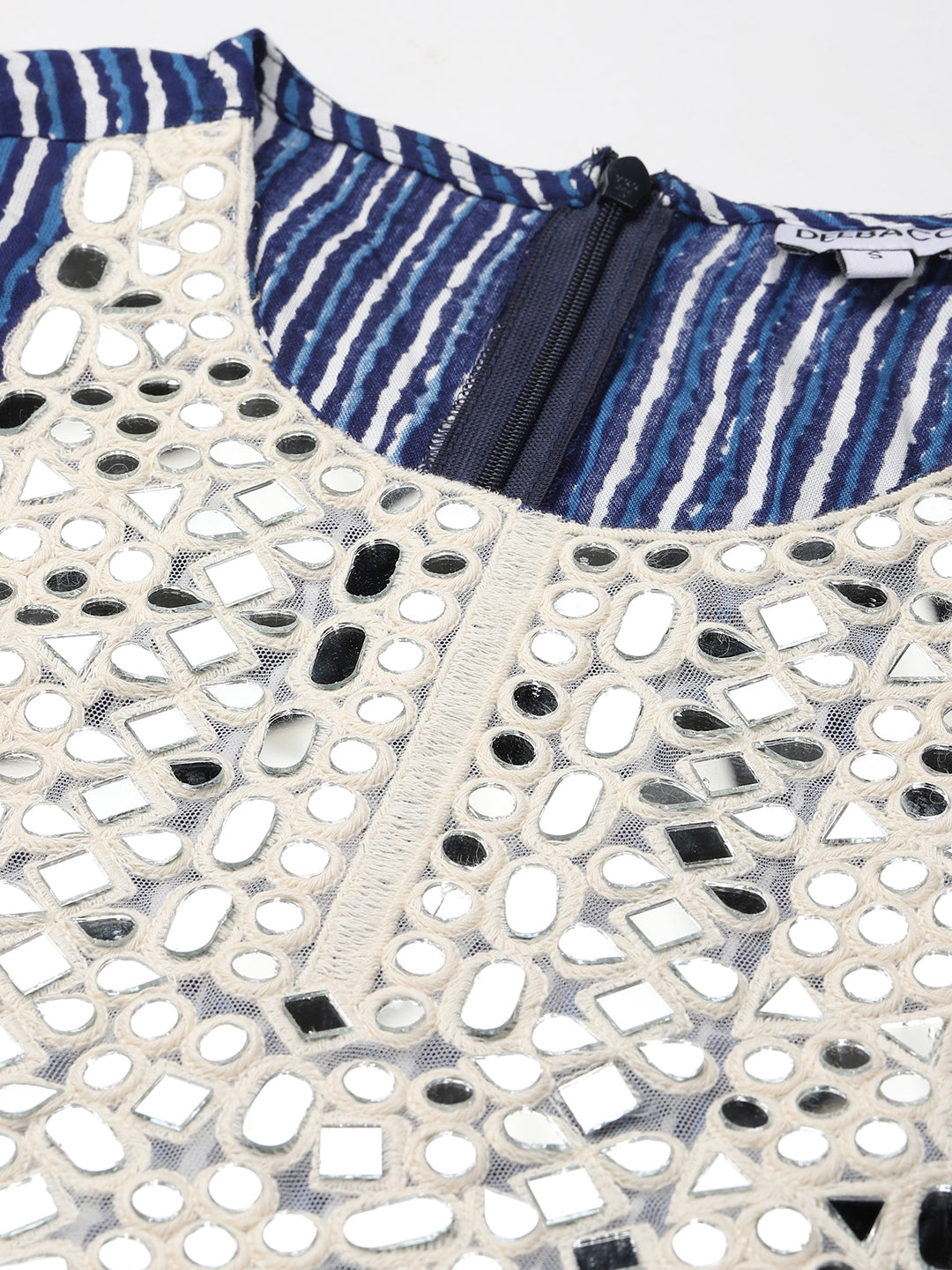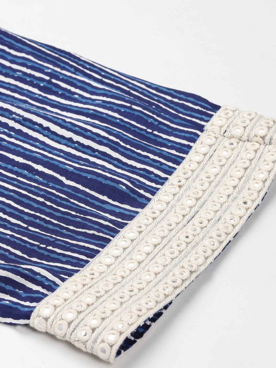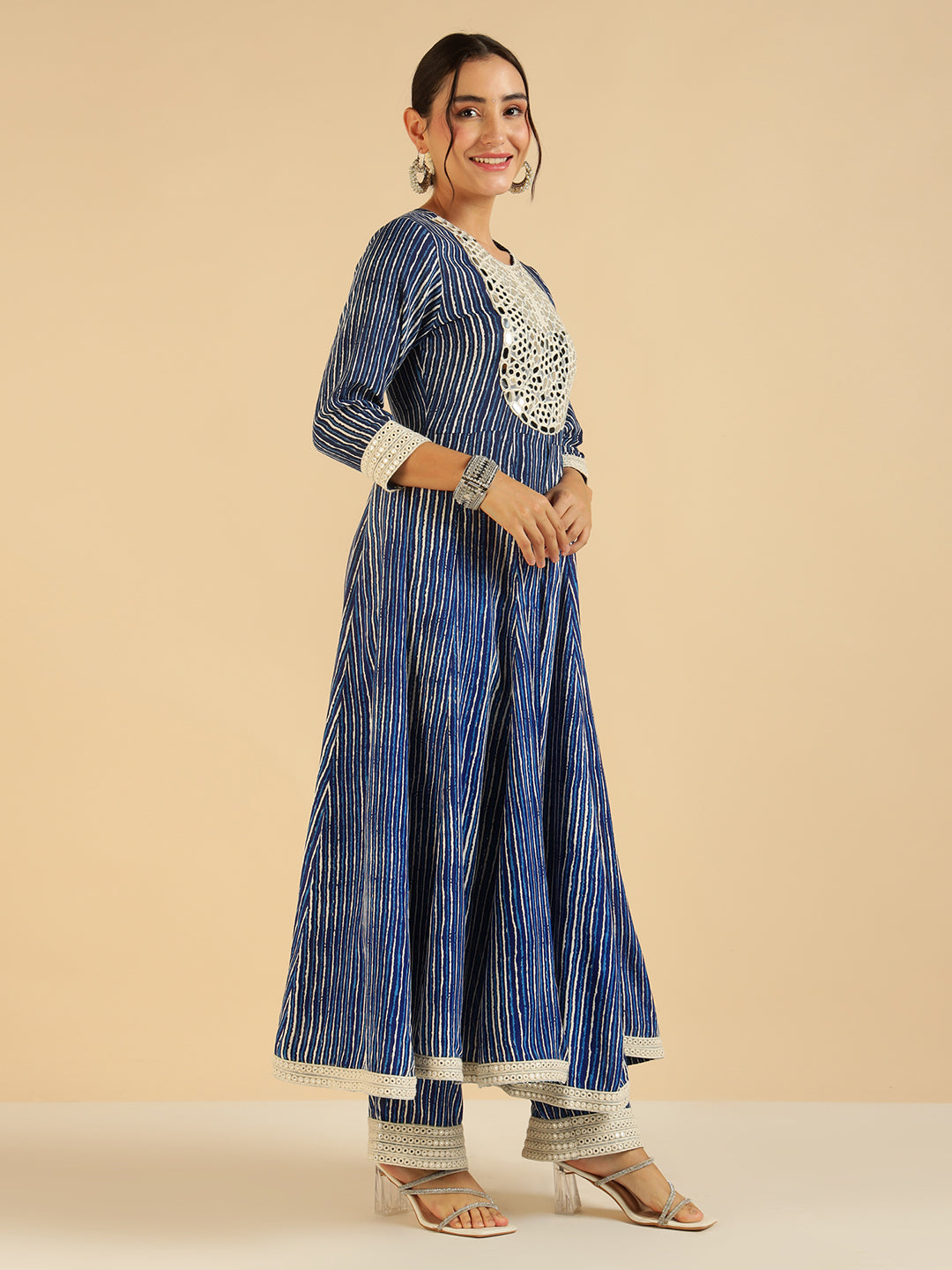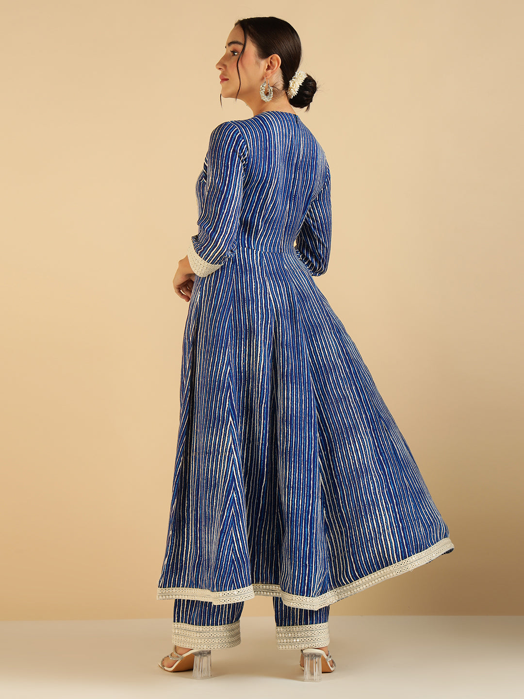 Blue Stripe Embroidered Tunic & Palazzo Fusion Women Co-Ord Set