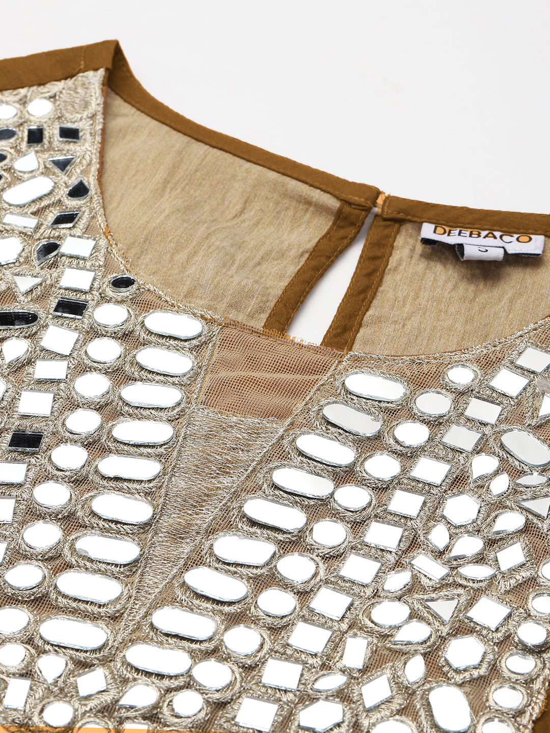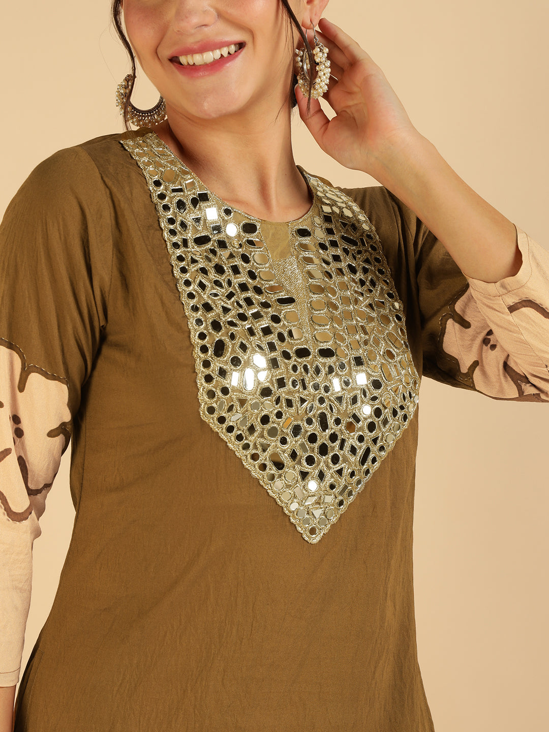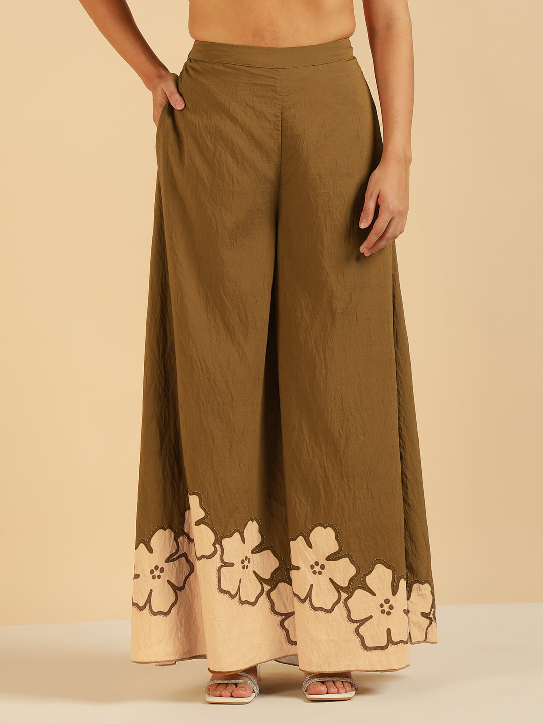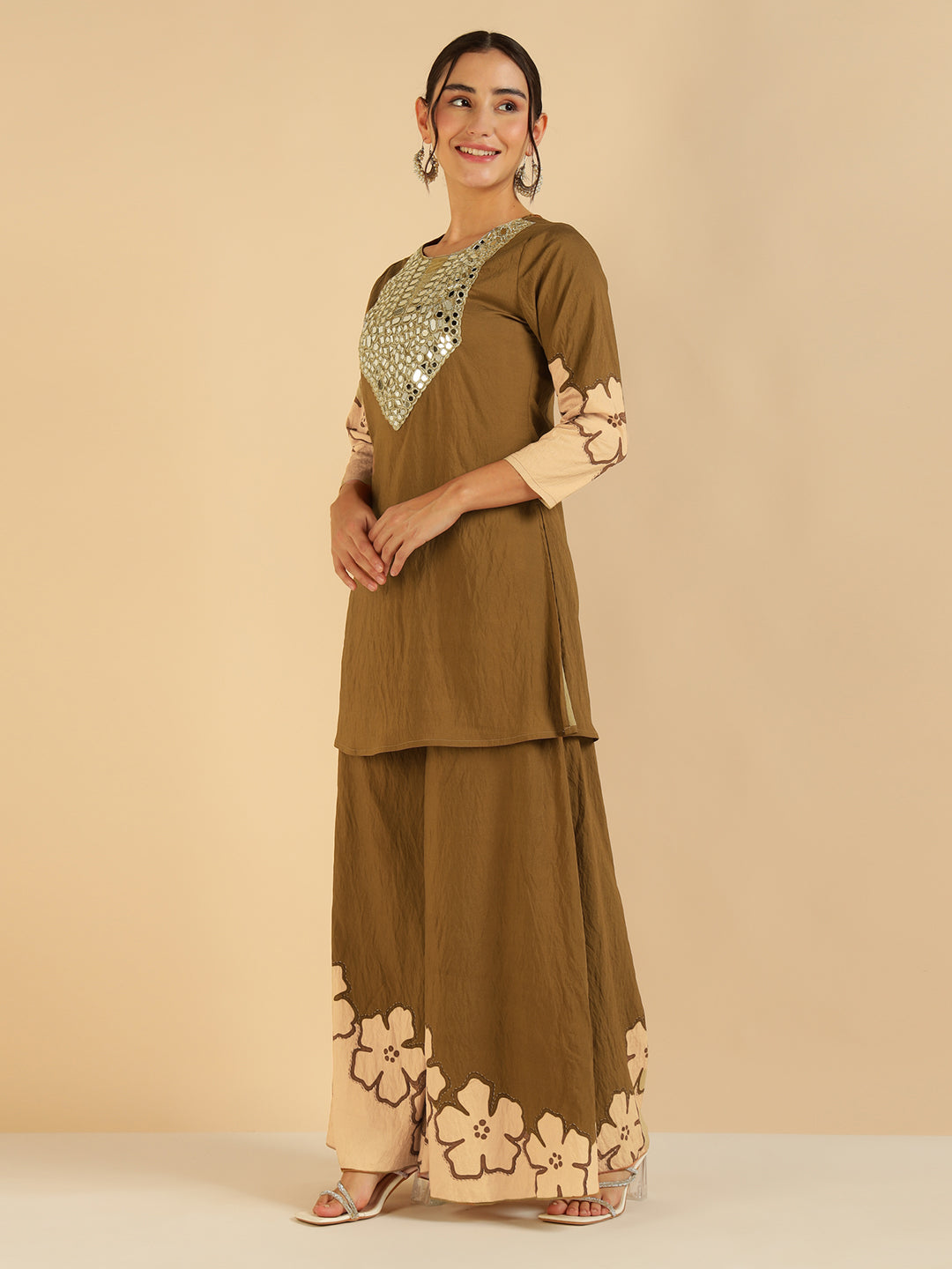 Brown Floral Border Printed Kurti & Sharara Fusion Co-Ord Set