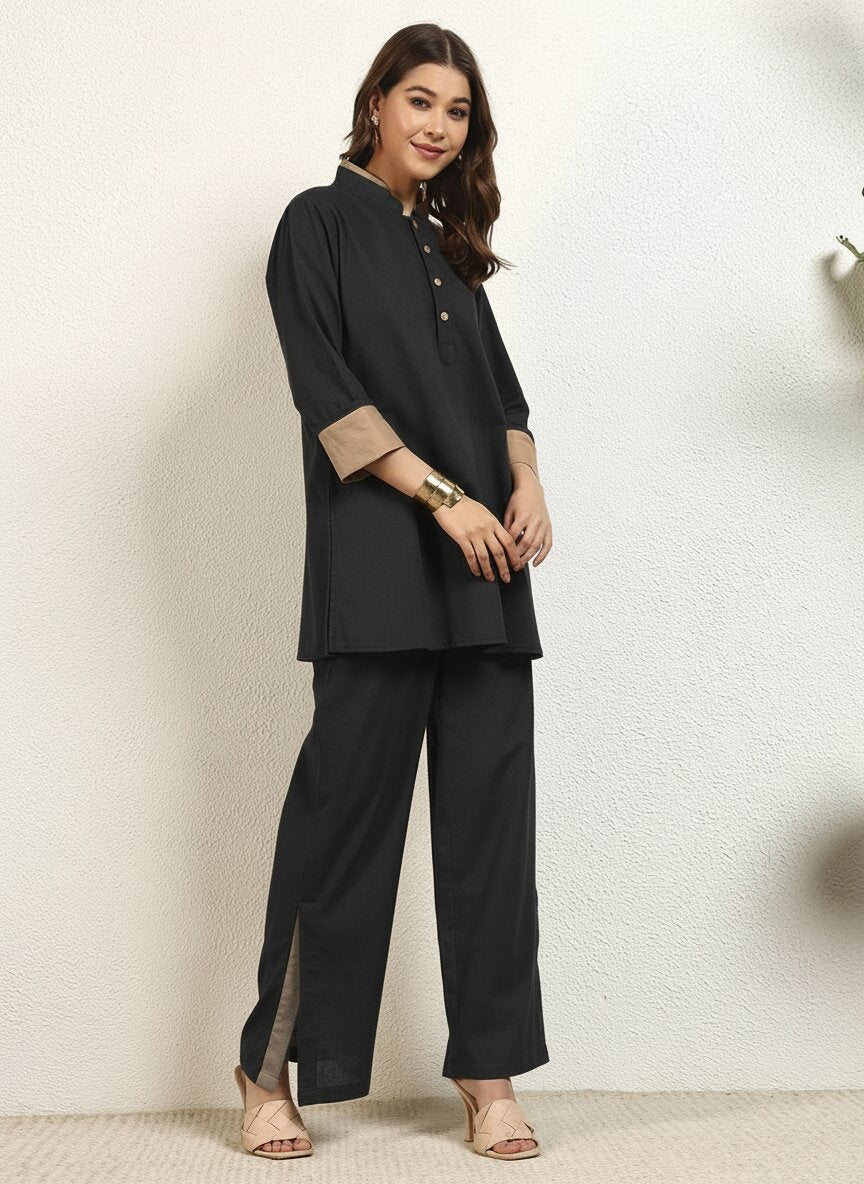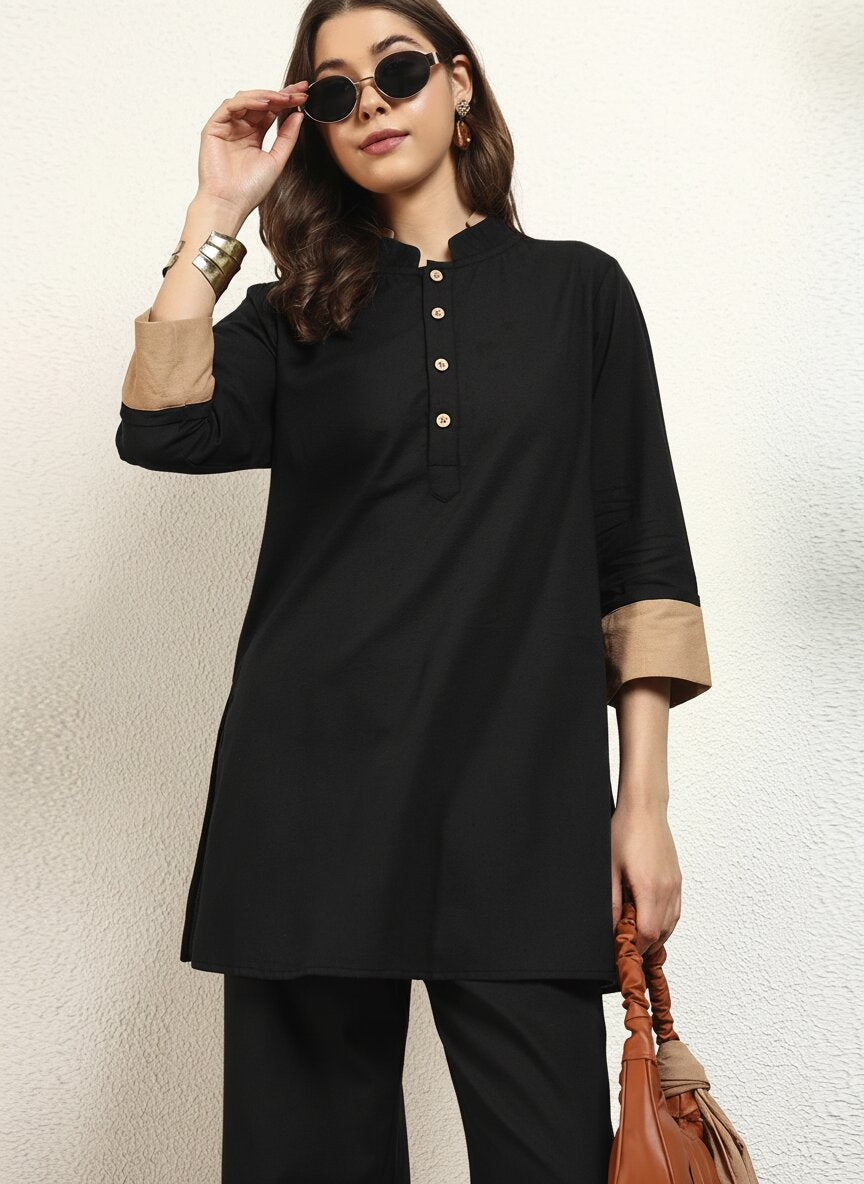Women's Black Solid Tunic with Trouser Co-Ord Set