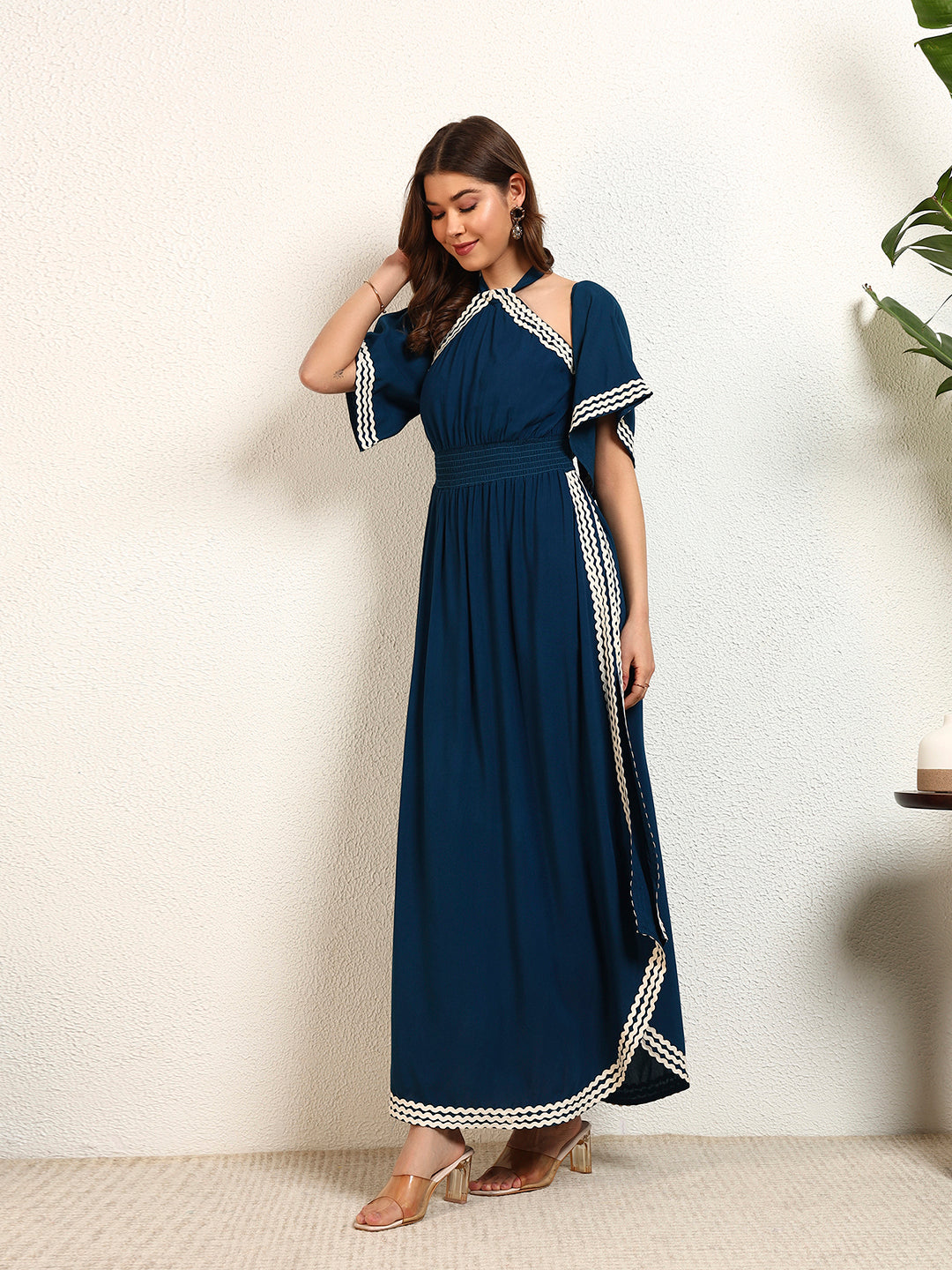 Teal Blue Viscose Rayon Solid Slit A-Line Womens Dress