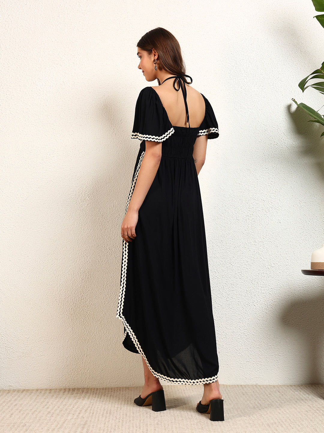 Black Viscose Rayon Solid A Line Slit Womens Dress