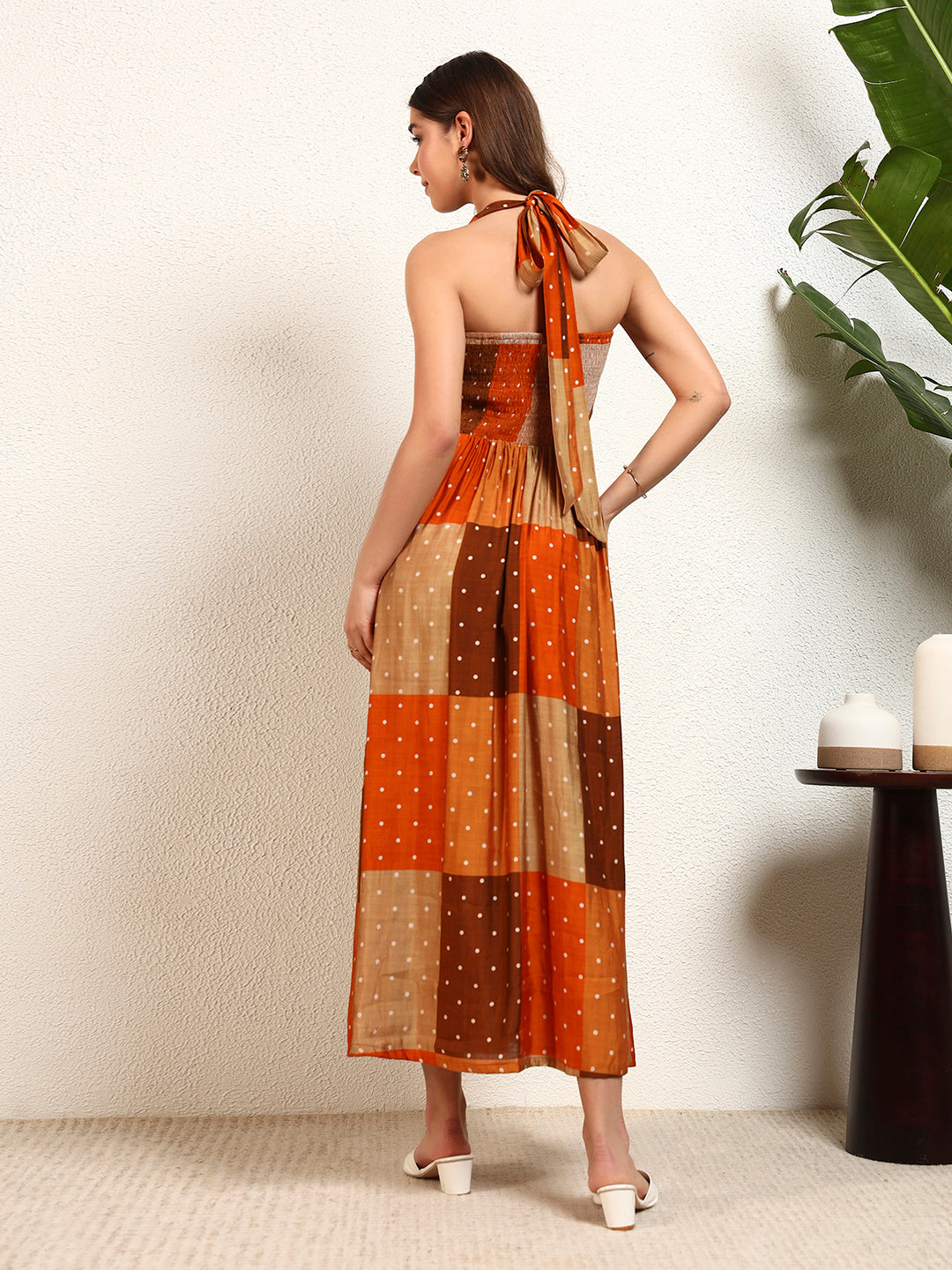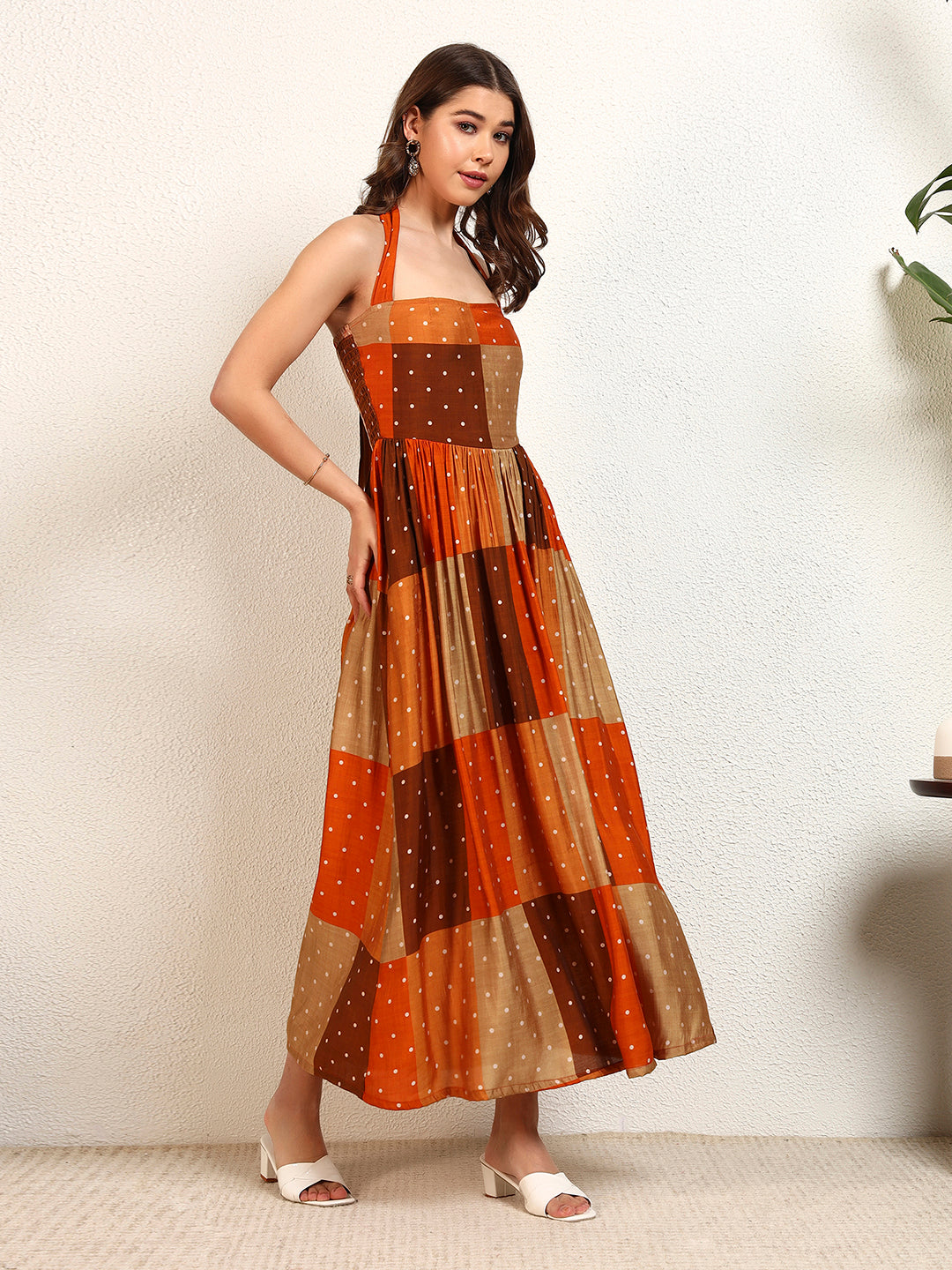 Multicolour Modal Chanderi Patch Halter Strappy A-Line Womens Dress