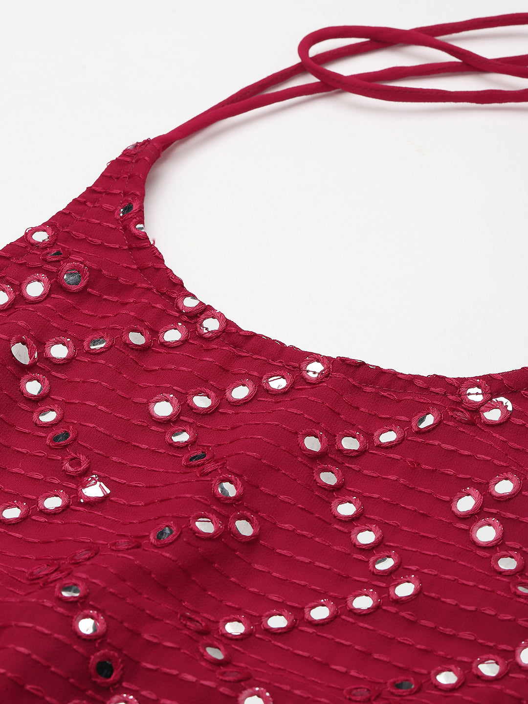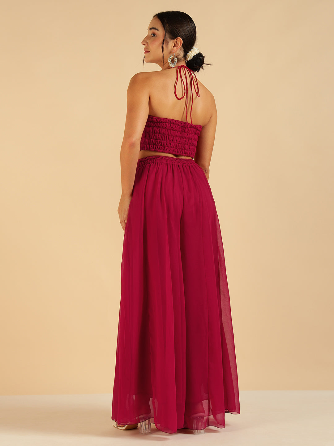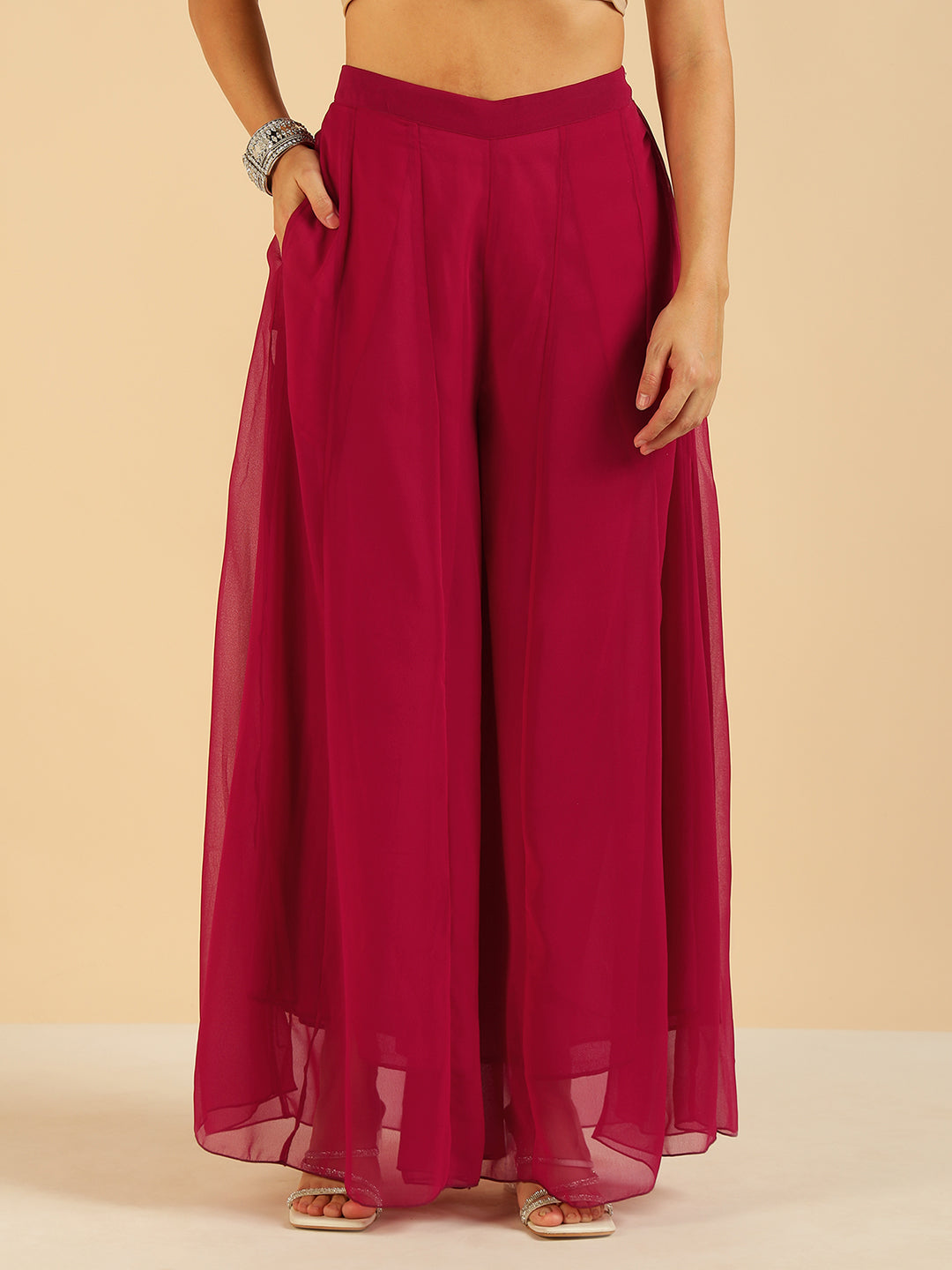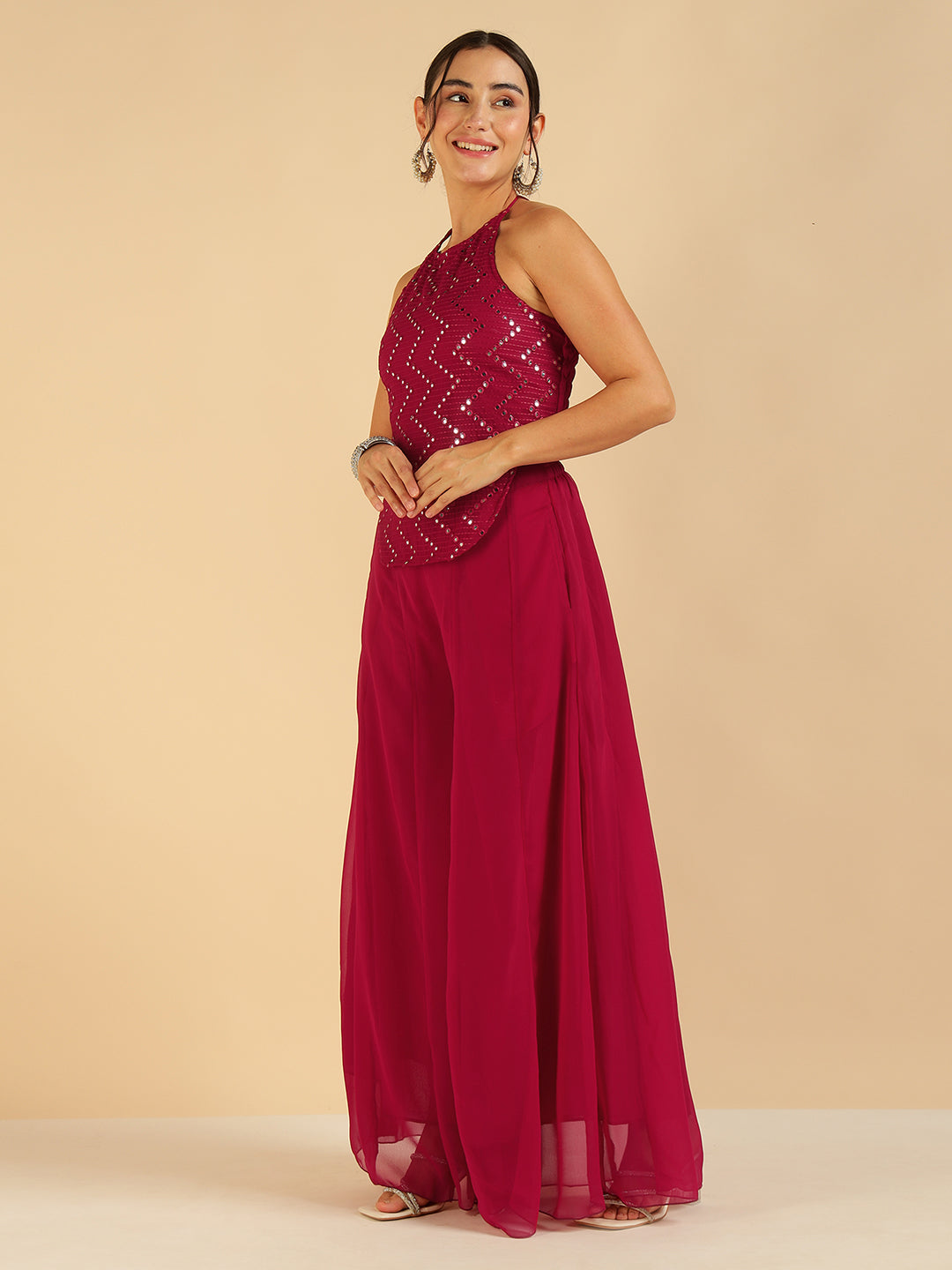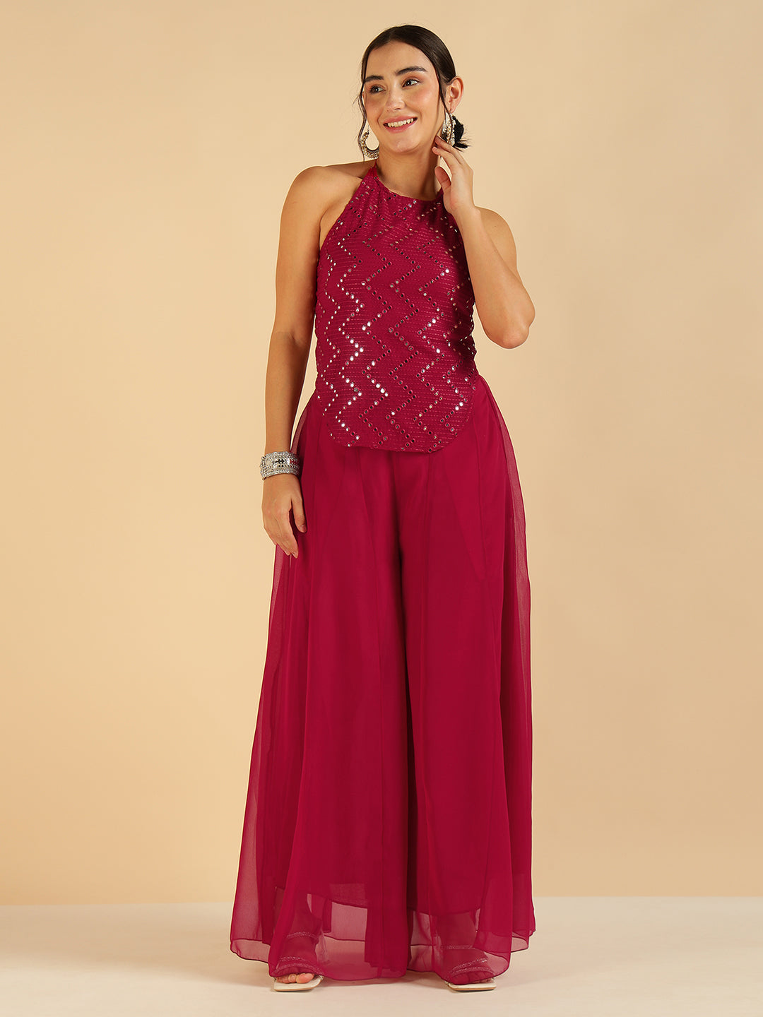 Fuchsia Embroidered Top With Sharara Fusion Women Co-Ord Set