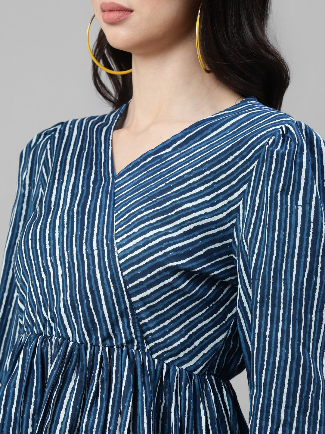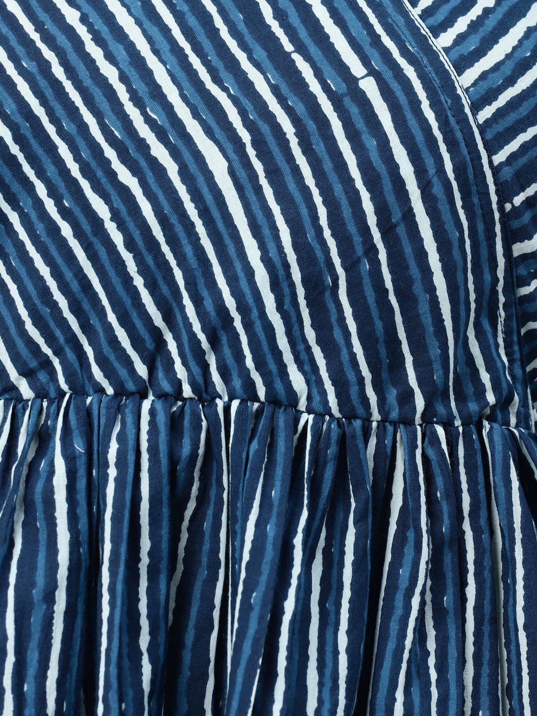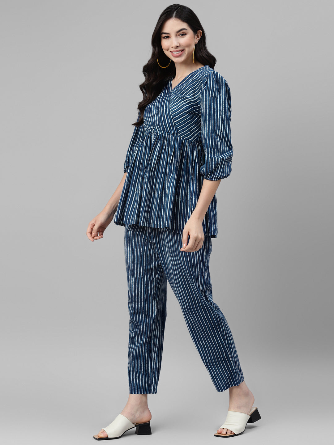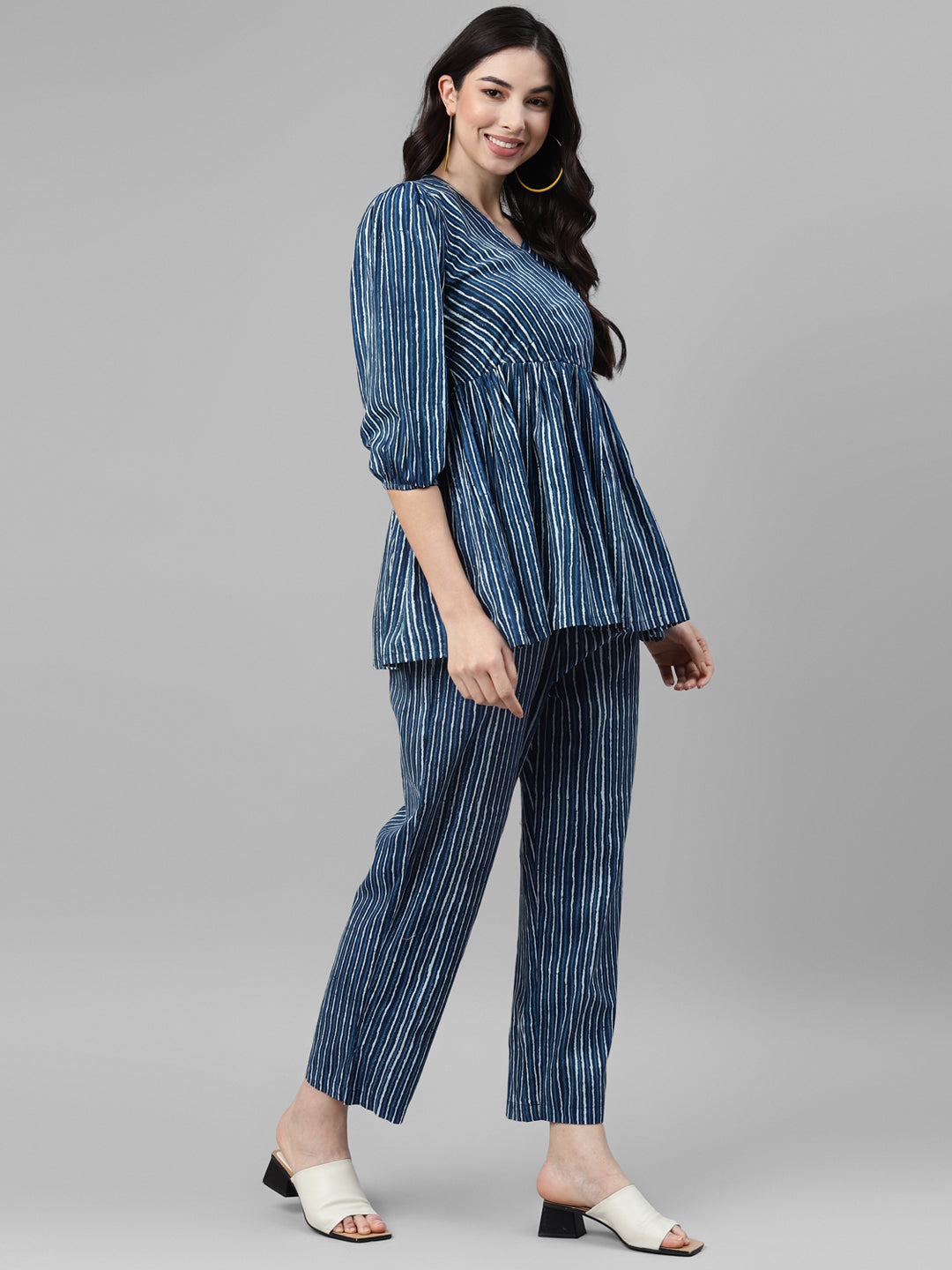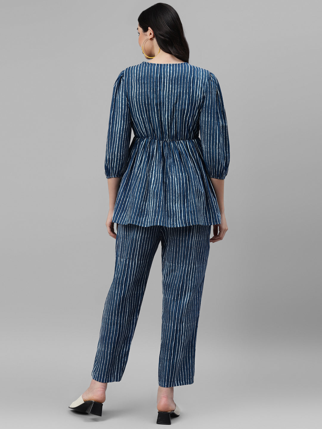 Indigo Stripes Flared Tunic & Straight Pants Set