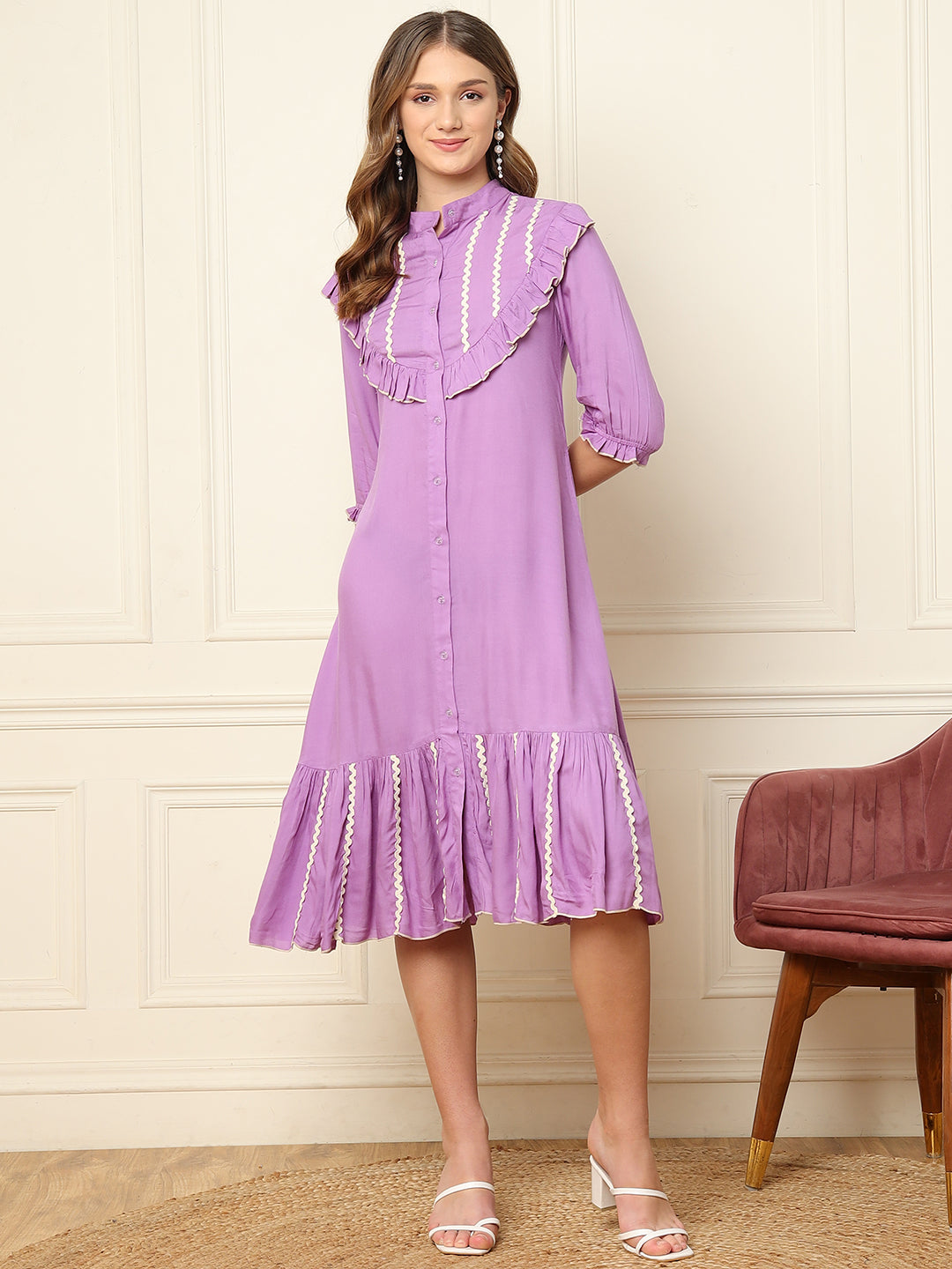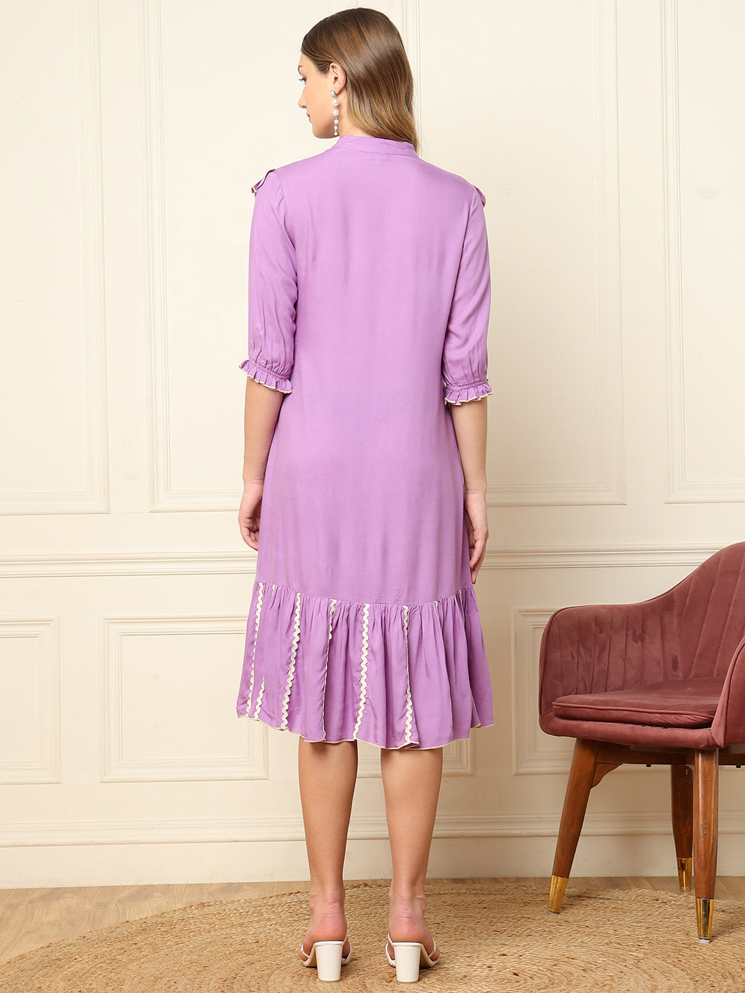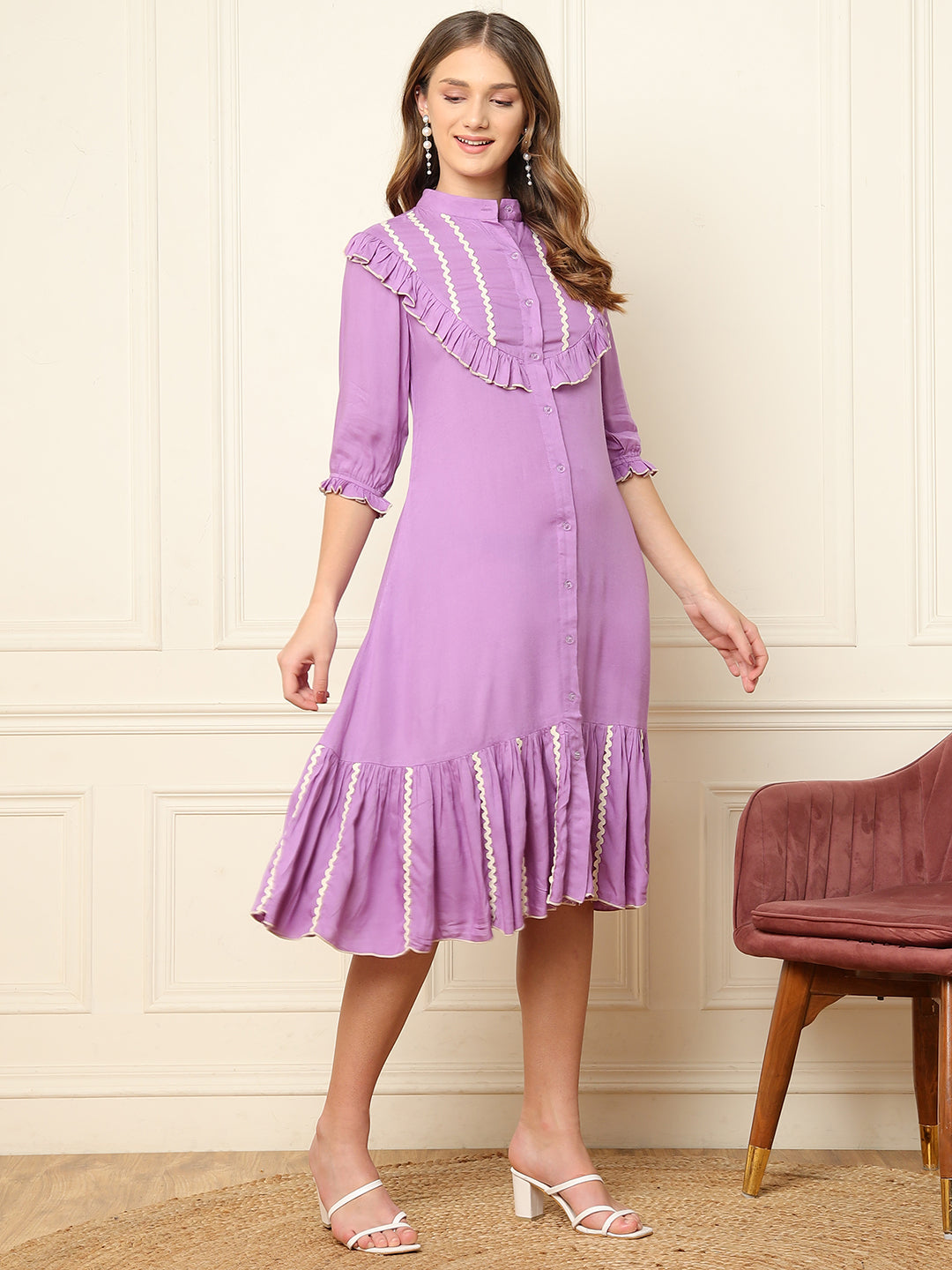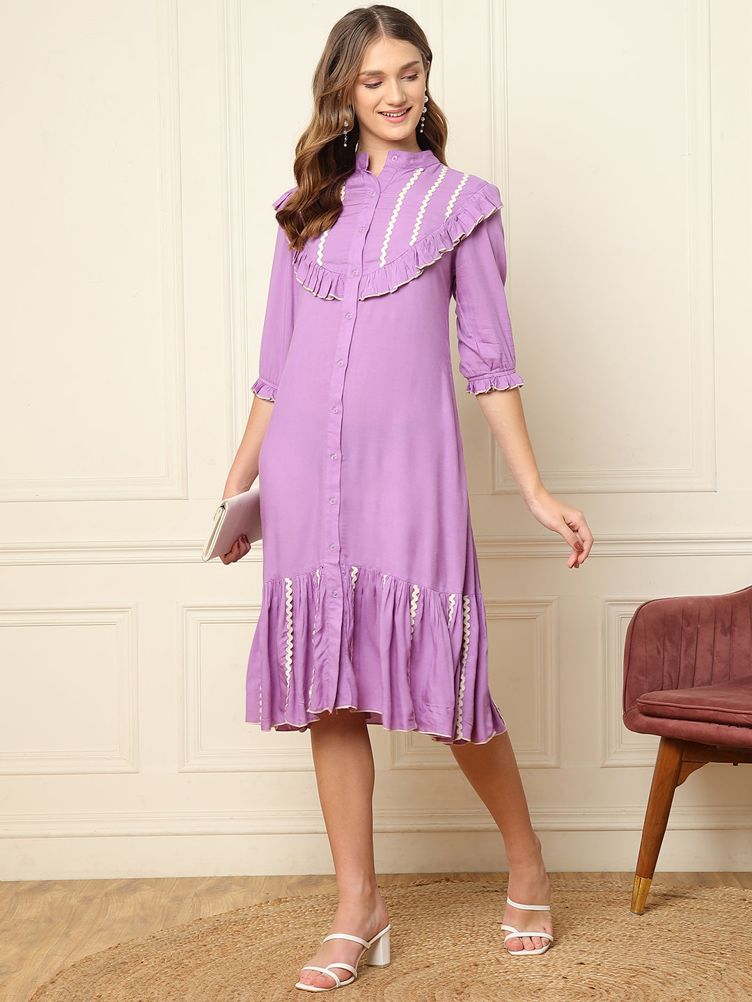 Lavender Tiered Women Shirt Dress