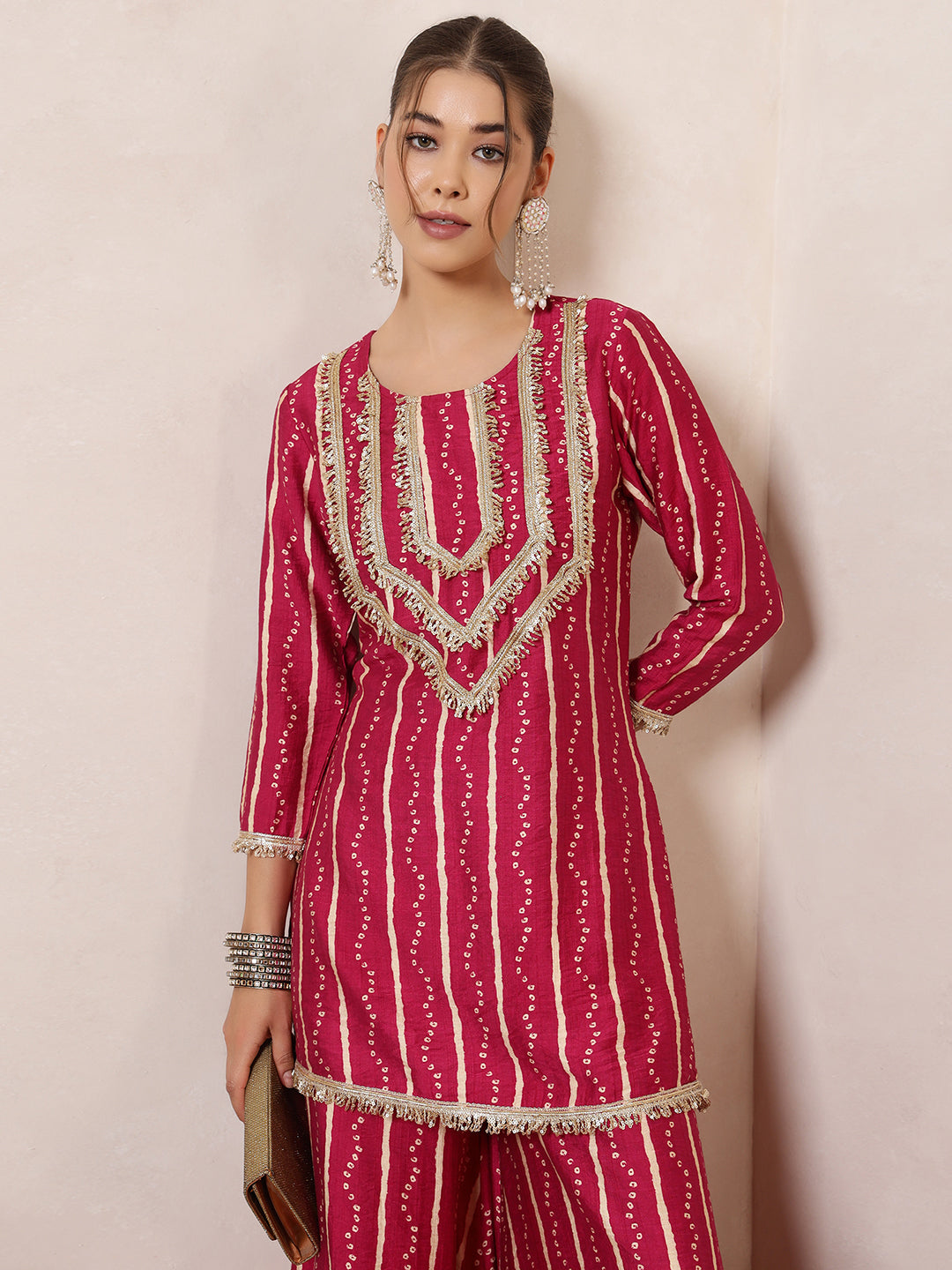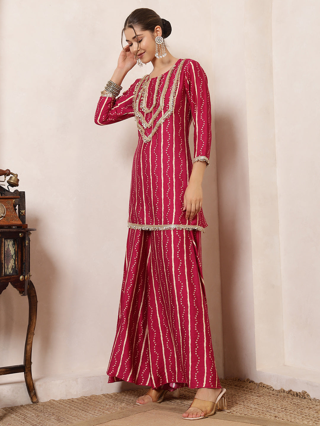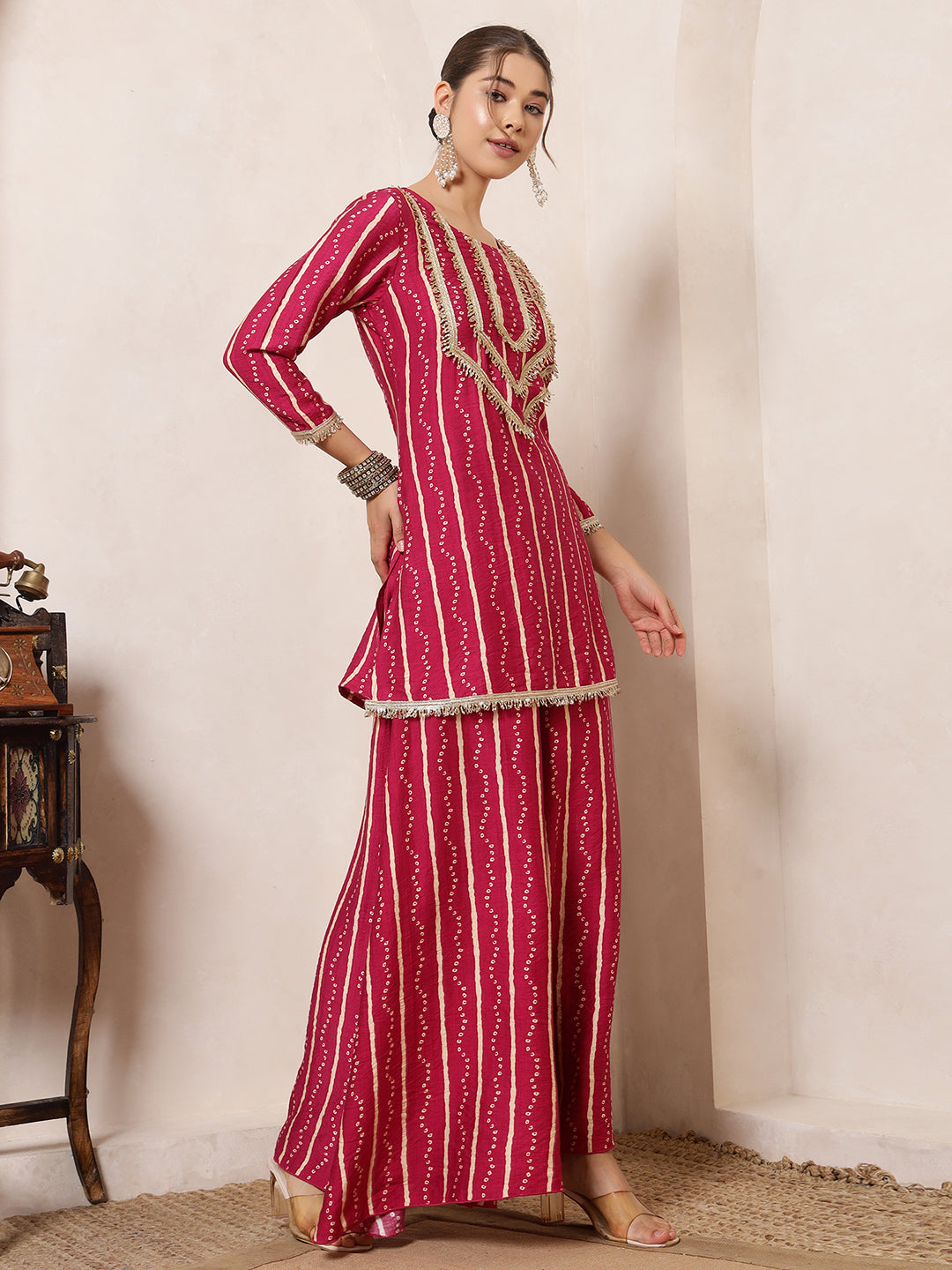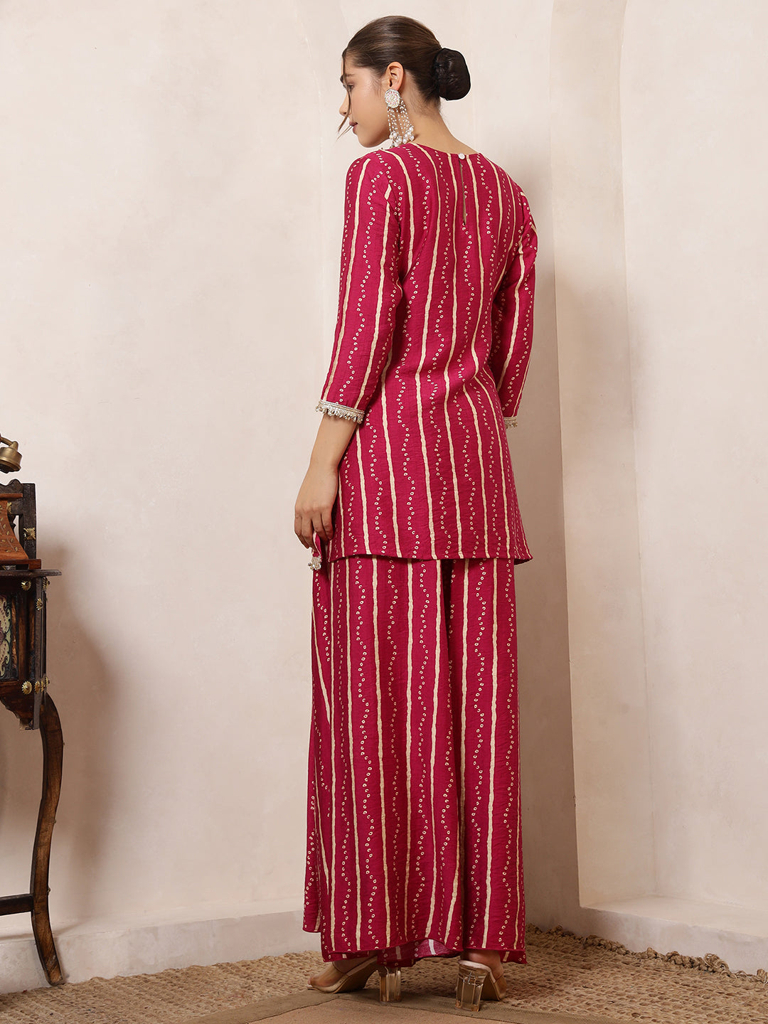 Magenta Bandhani Printed Kurti With Palazzo Indo Western Women Co-Ord Set