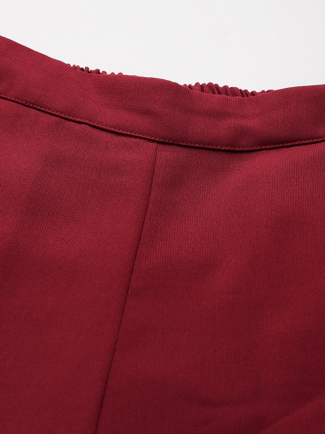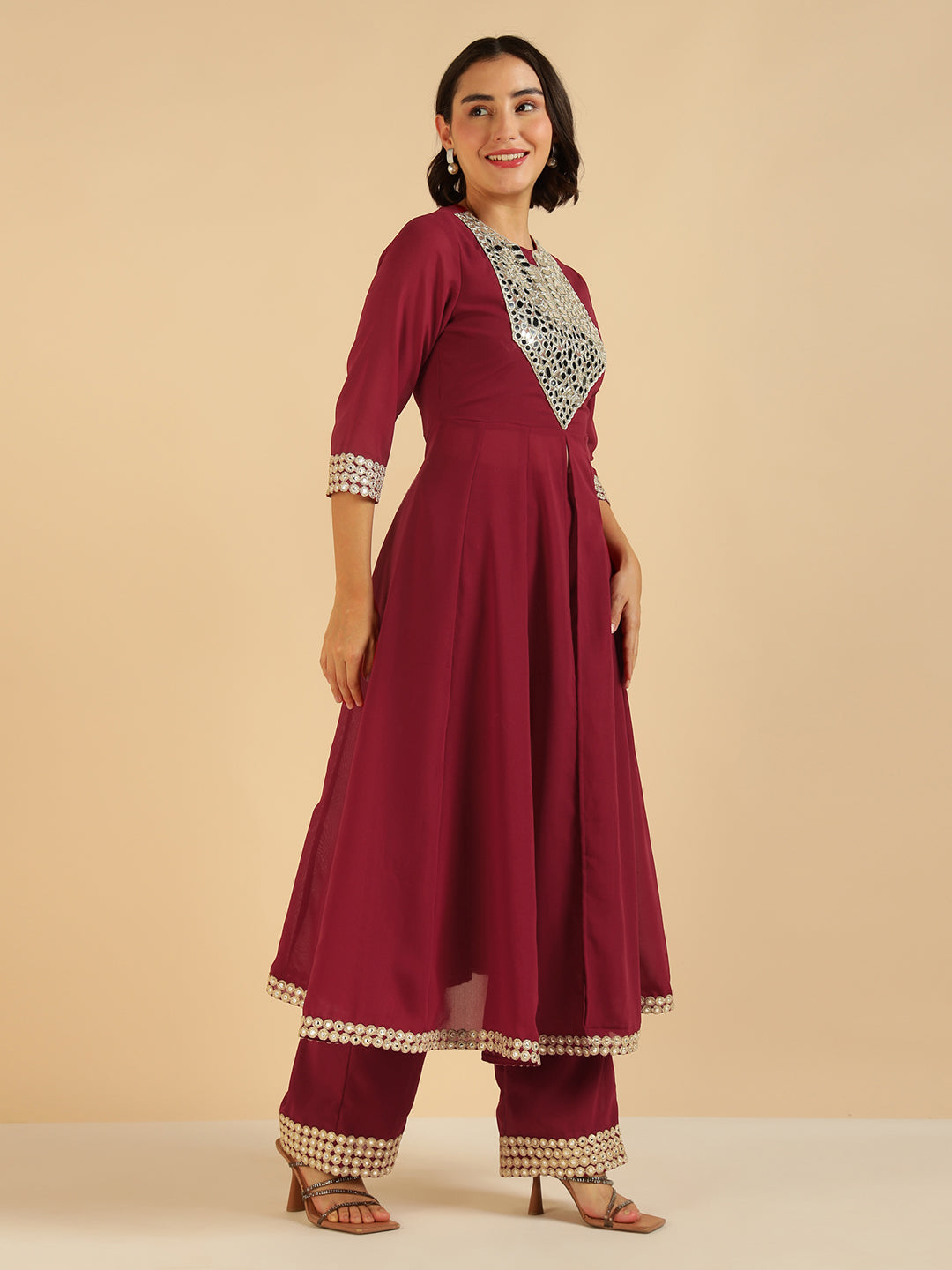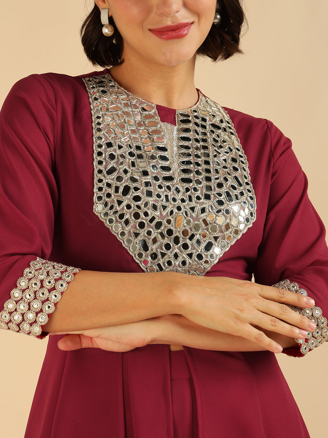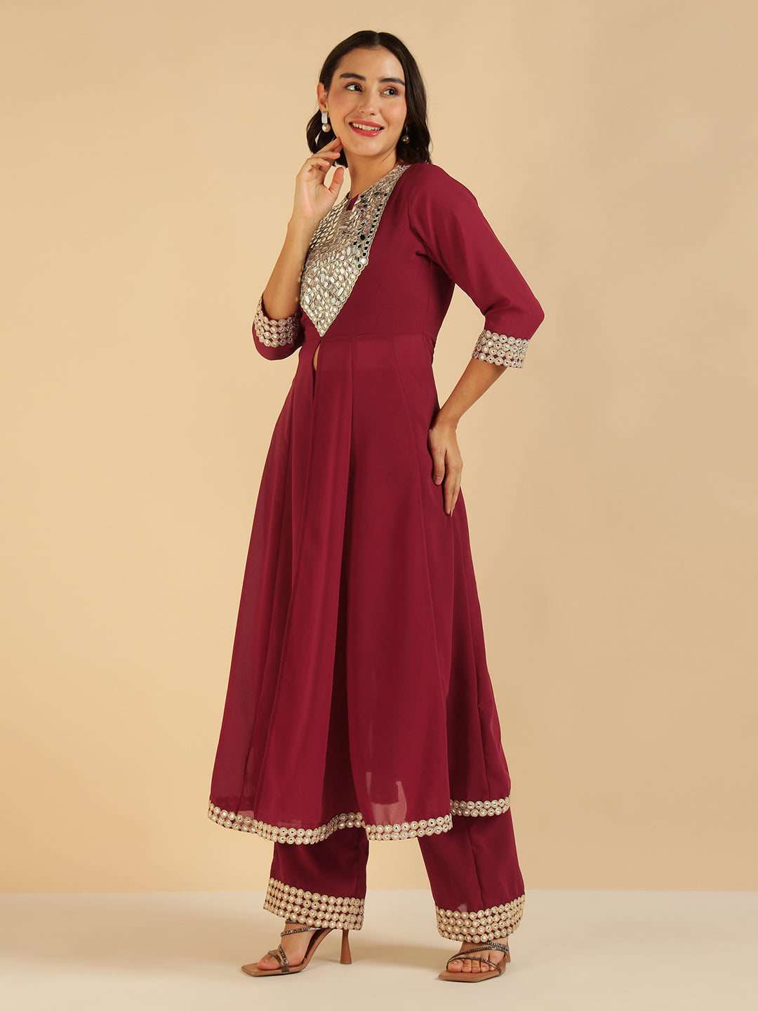 Maroon Georgette Embroidered Tunic & Palazzo Fusion Women Co-Ord Set