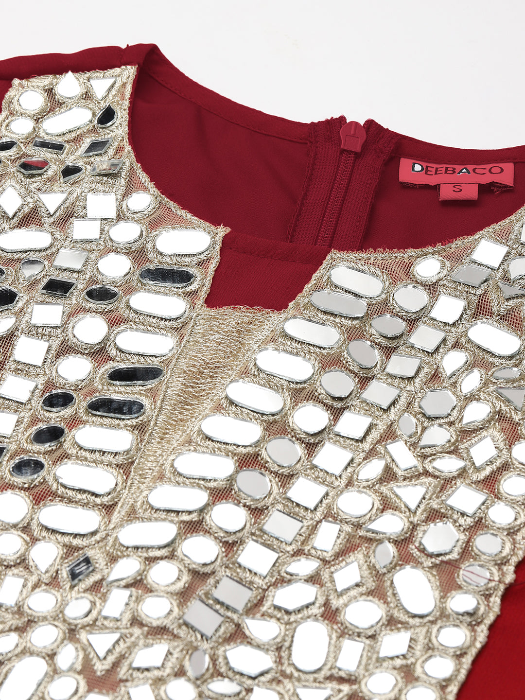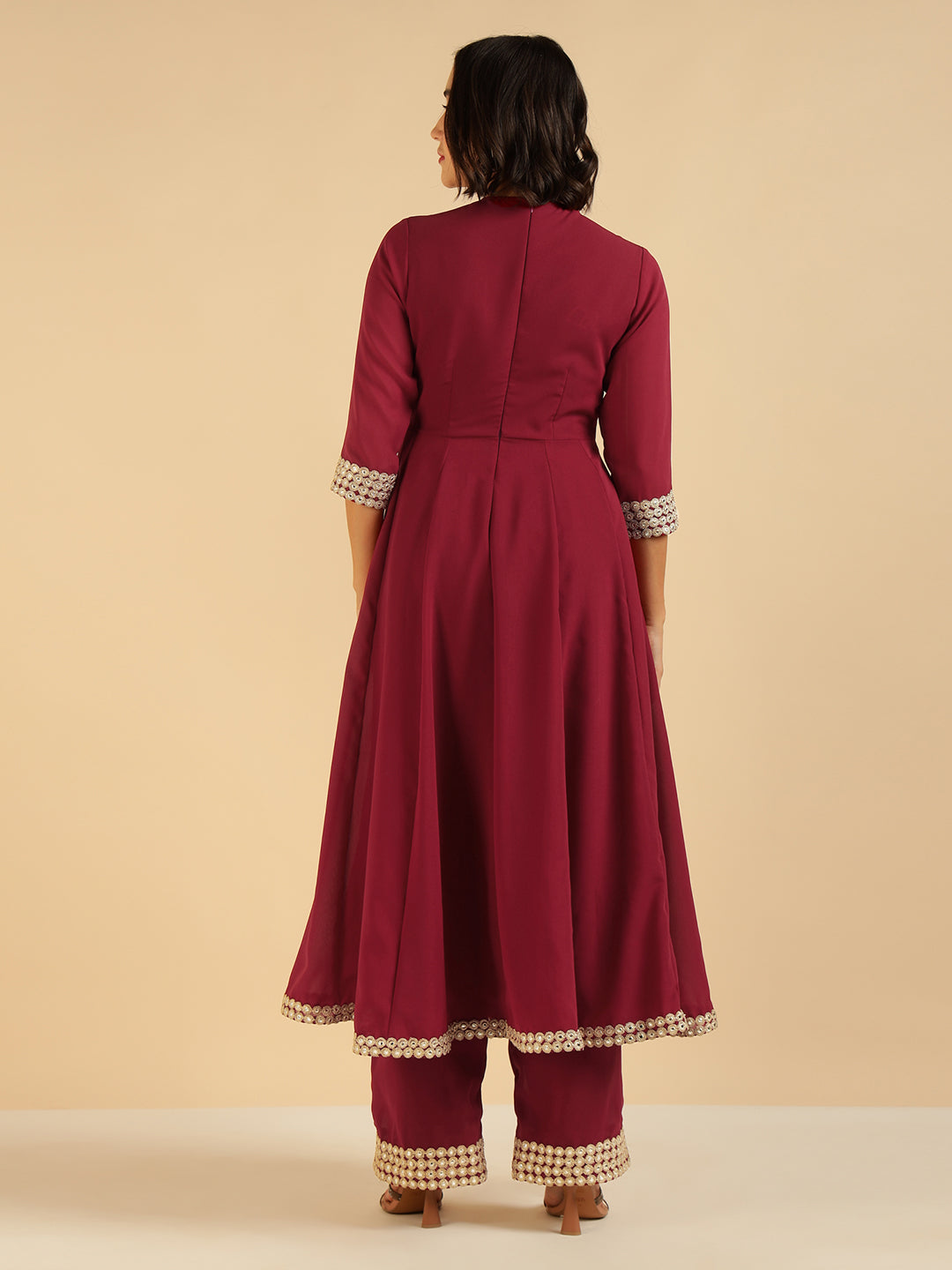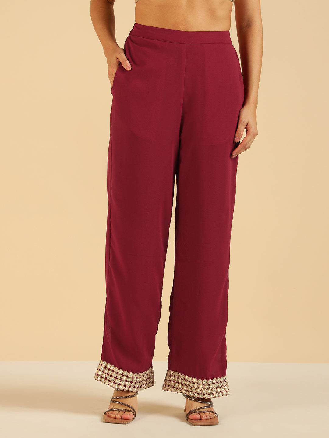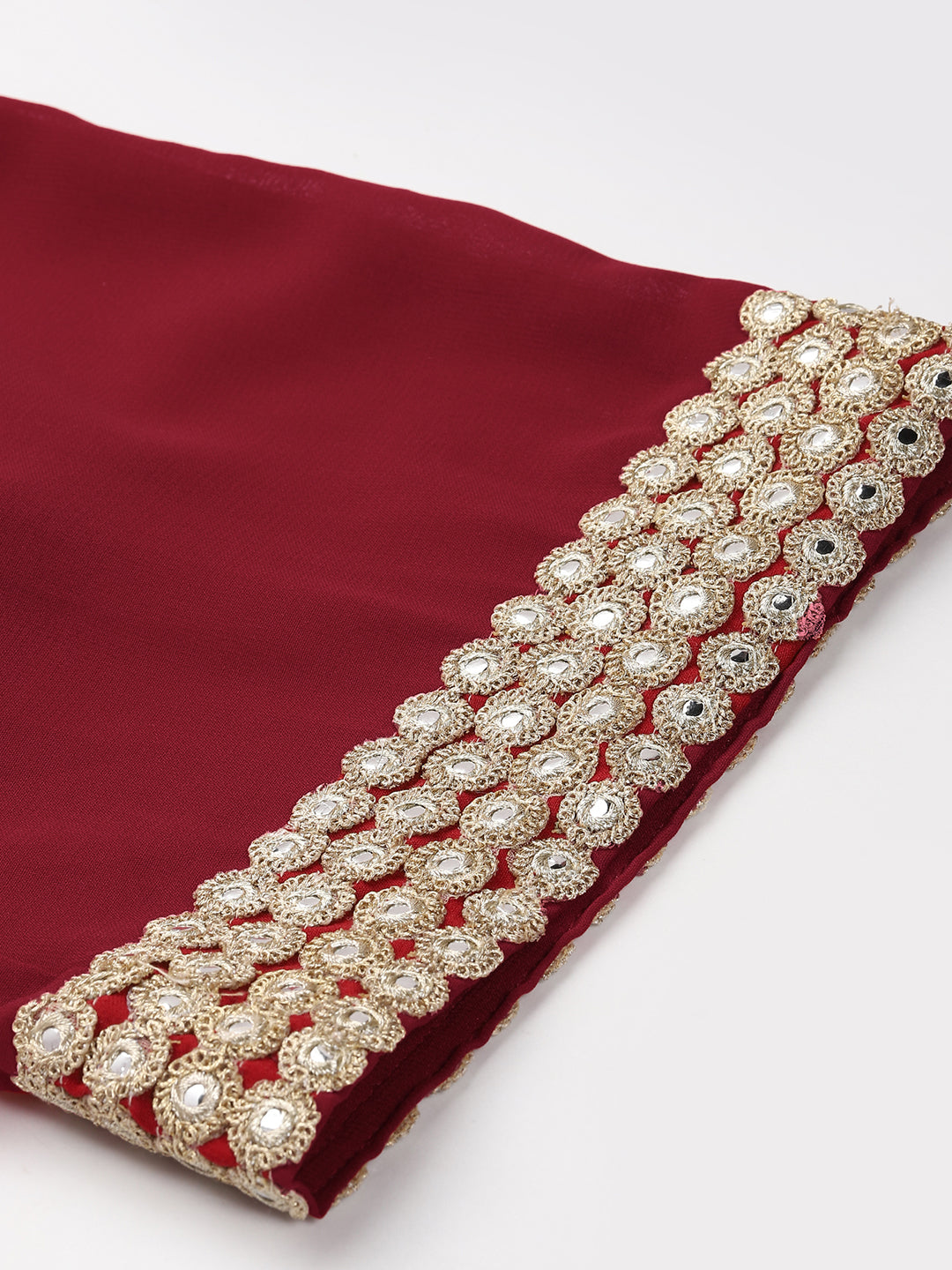 Maroon Georgette Embroidered Tunic & Palazzo Fusion Women Co-Ord Set