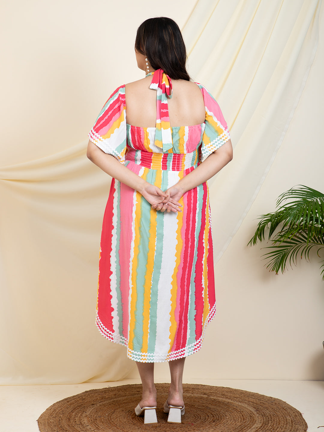 Multi Colour Halter Neck With Bell Sleeve A-Line Slit Women Plus Size Dress