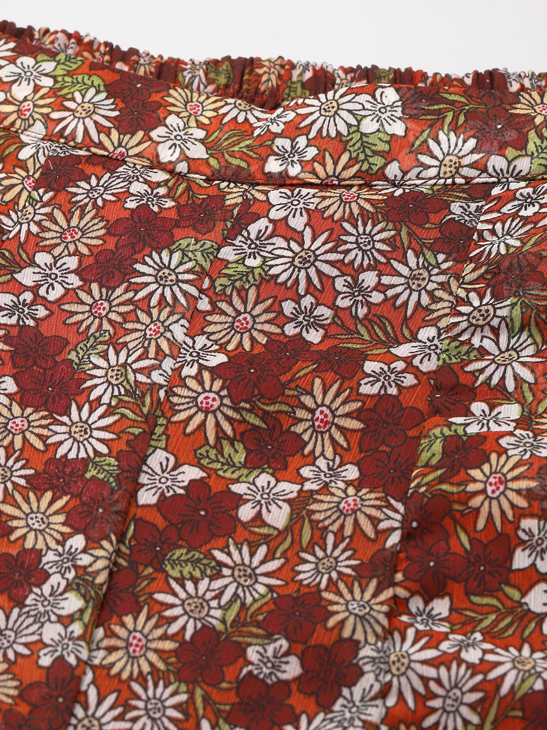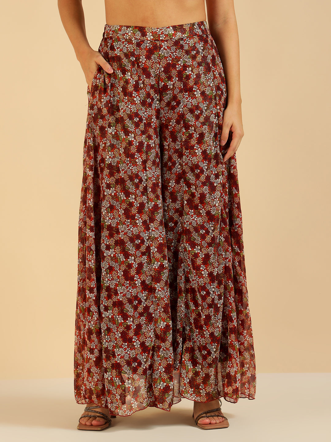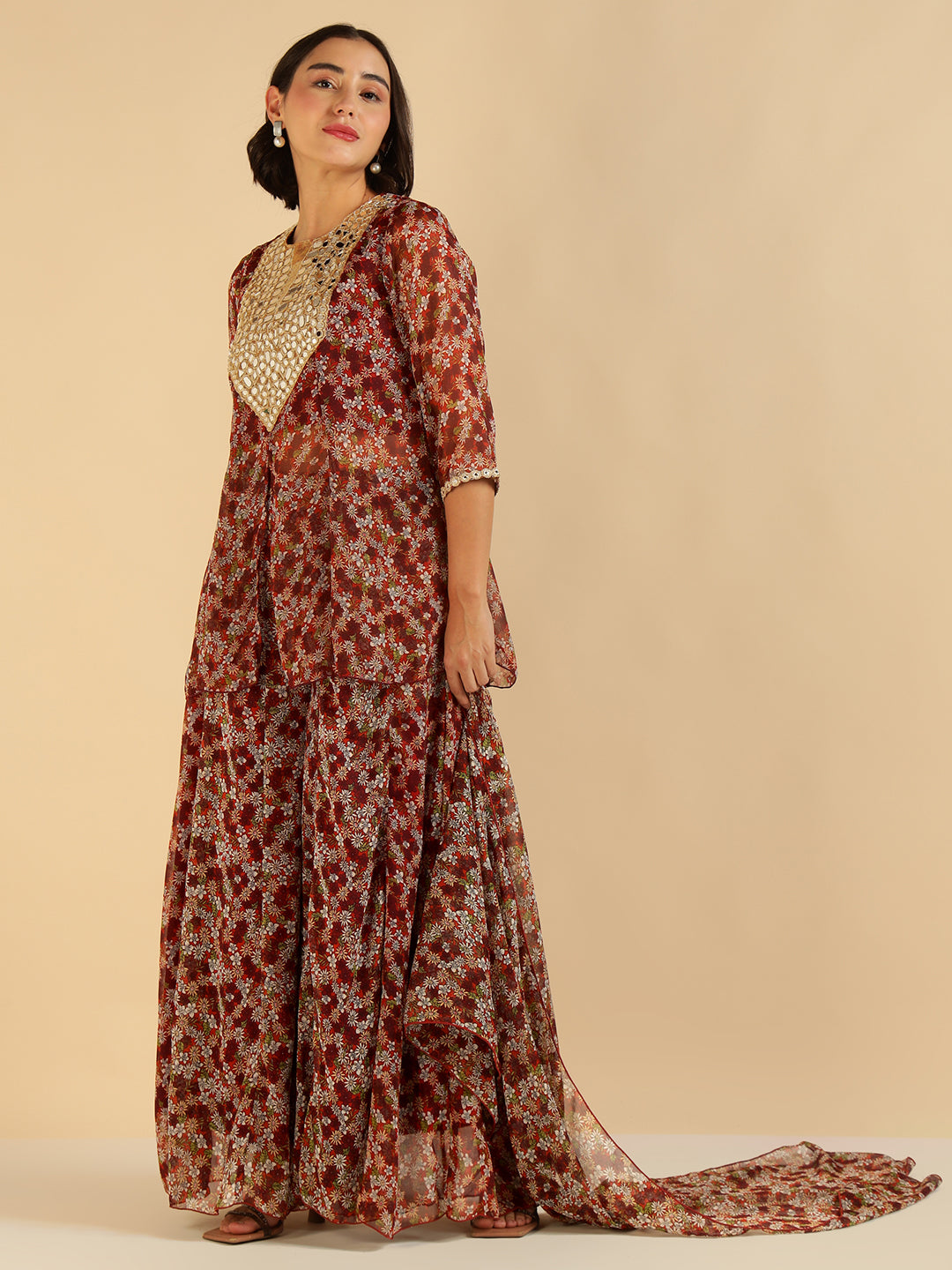 Multi Floral Peplum Top & Sharara With Dupatta Fusion Women Co-Ord Set