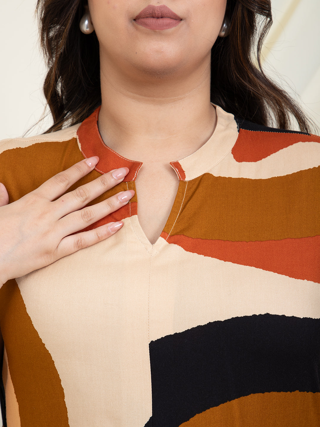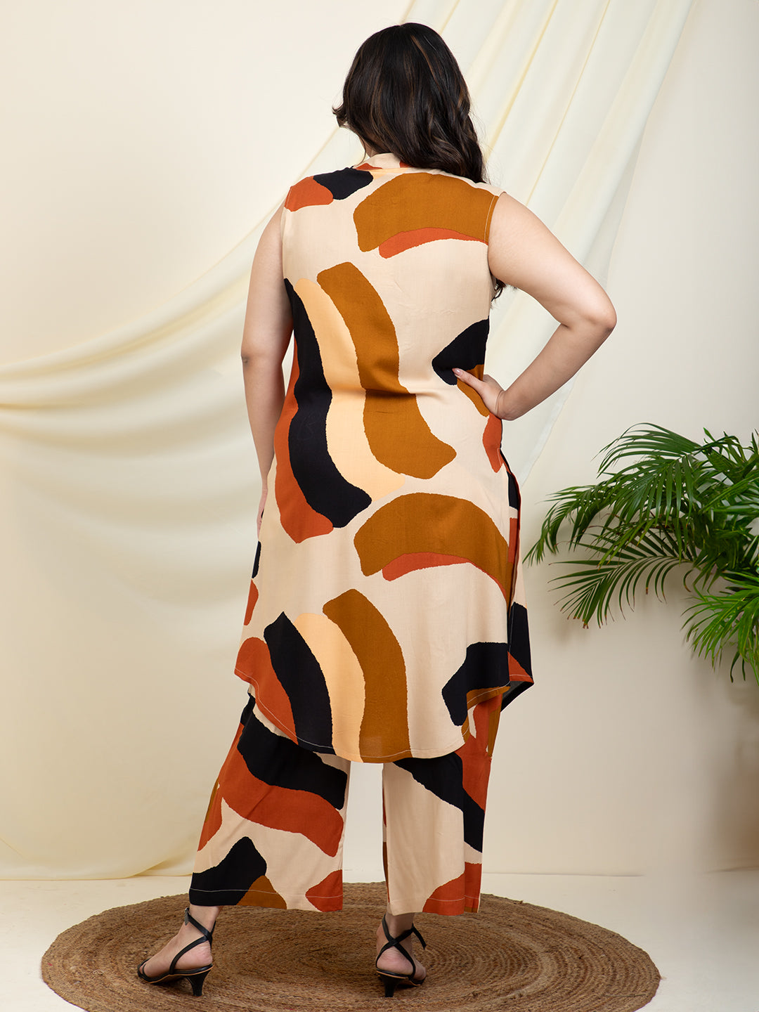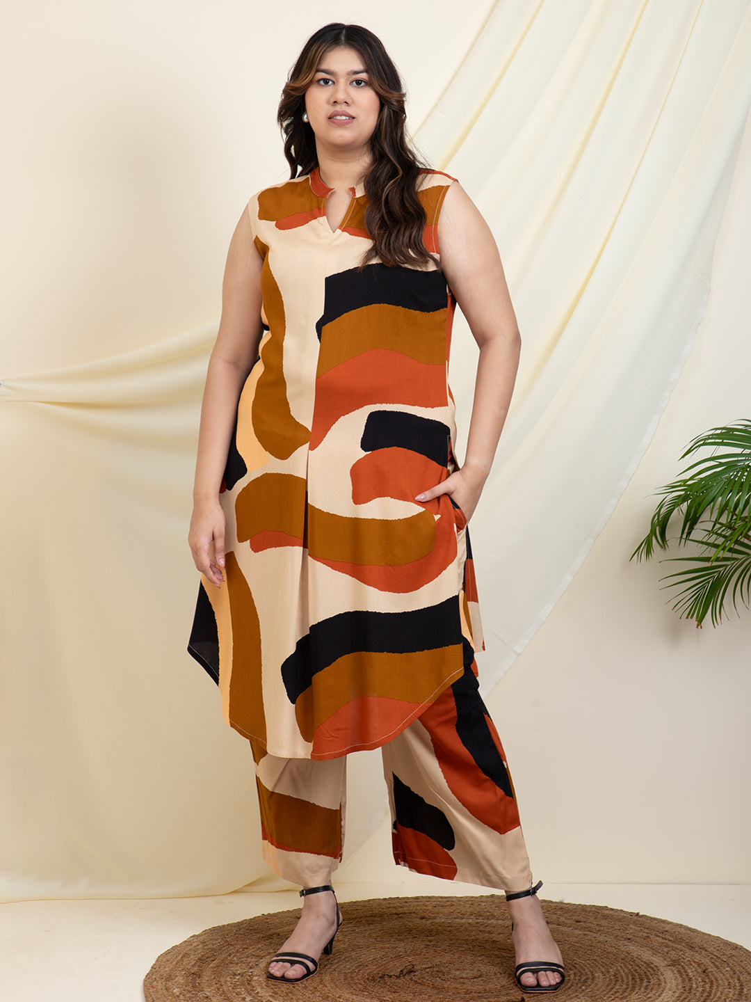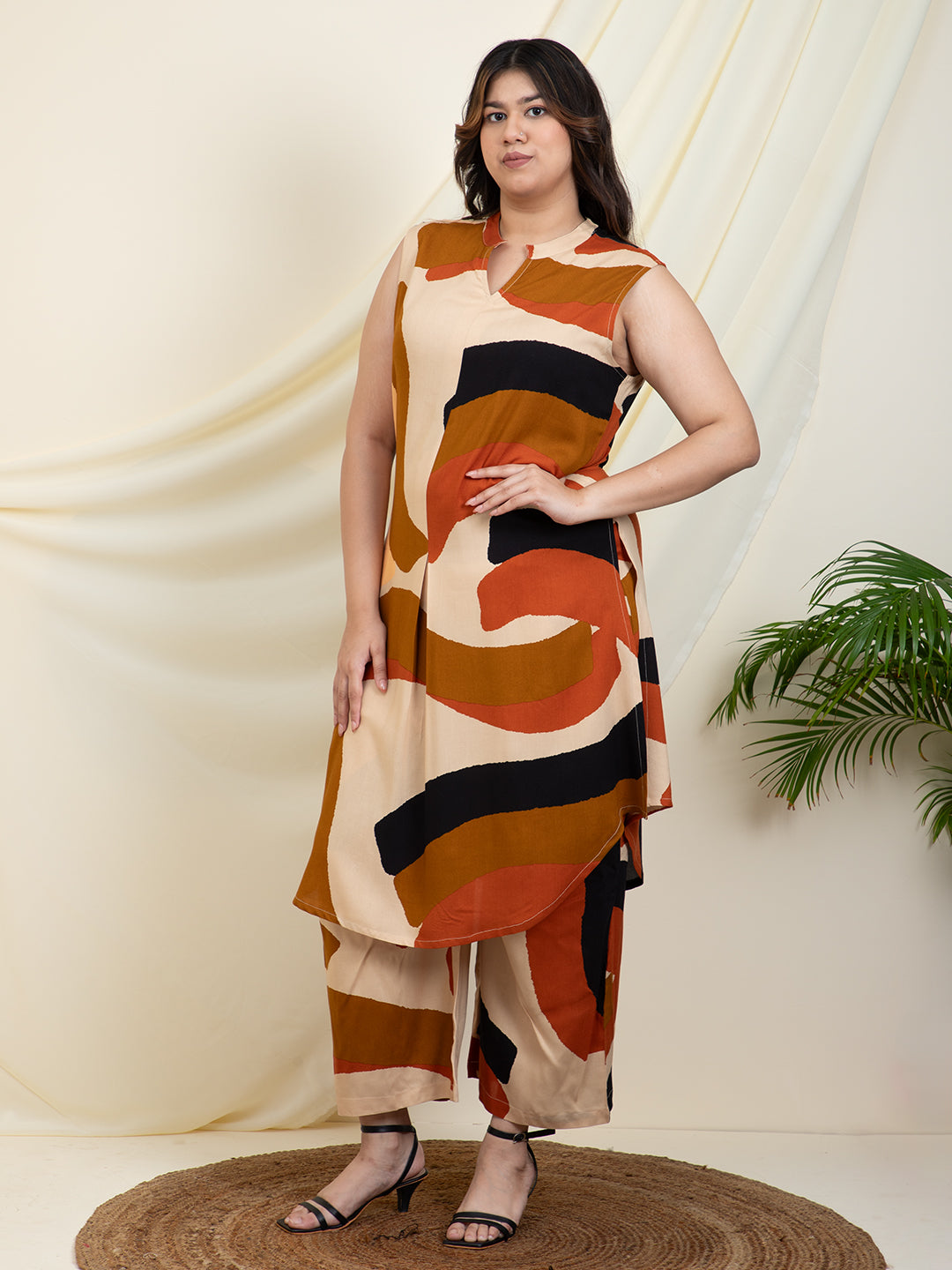 Multicolor Plus SIze Abstract Printed Long Kurta With Palazzo Plus SIze Co-Ord Set