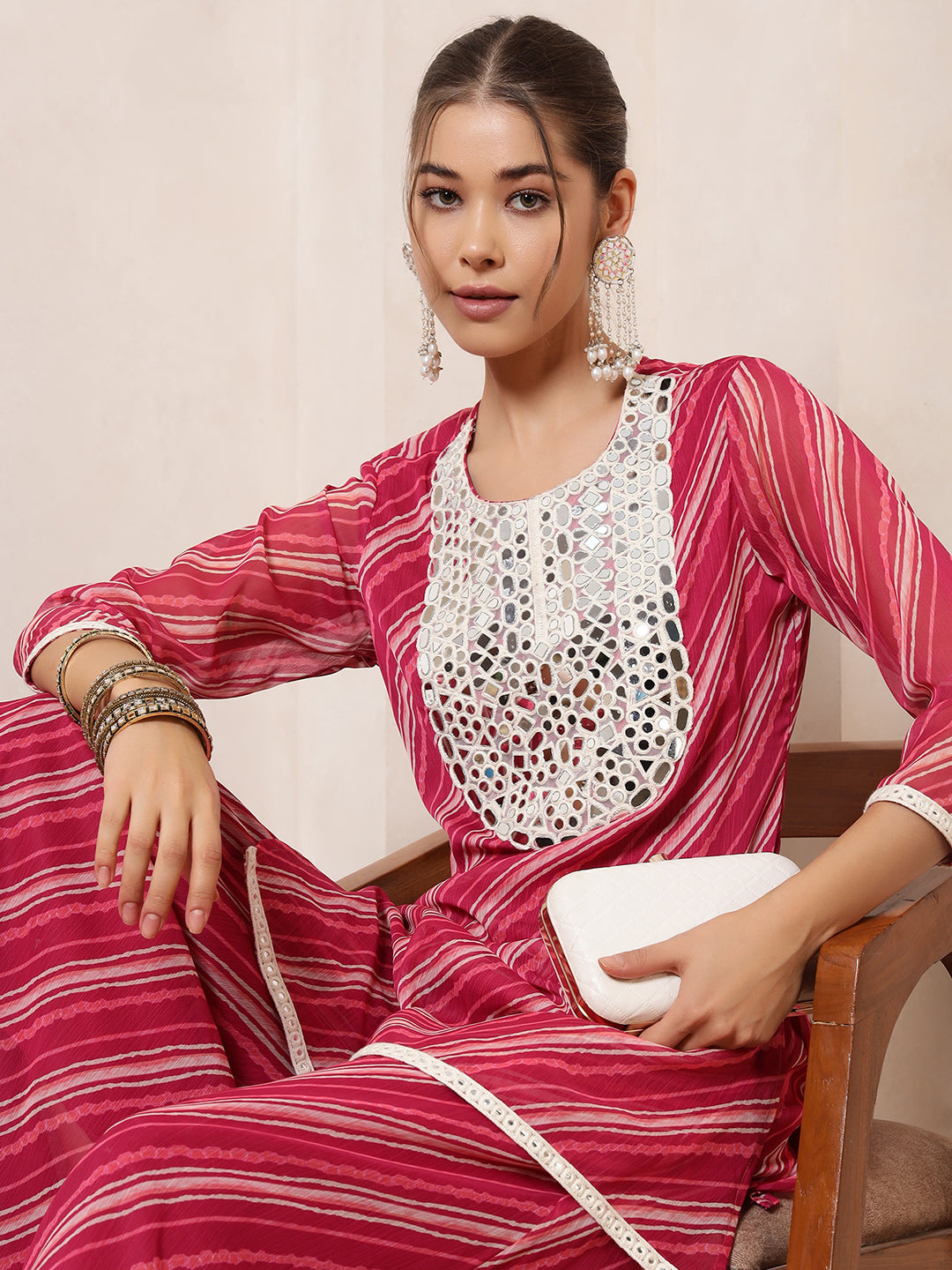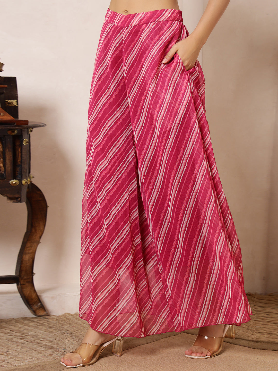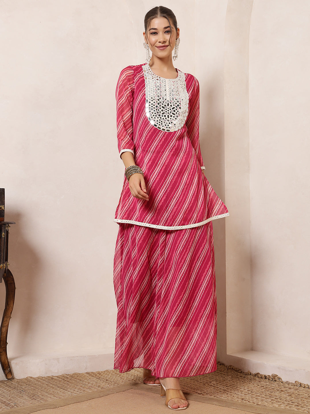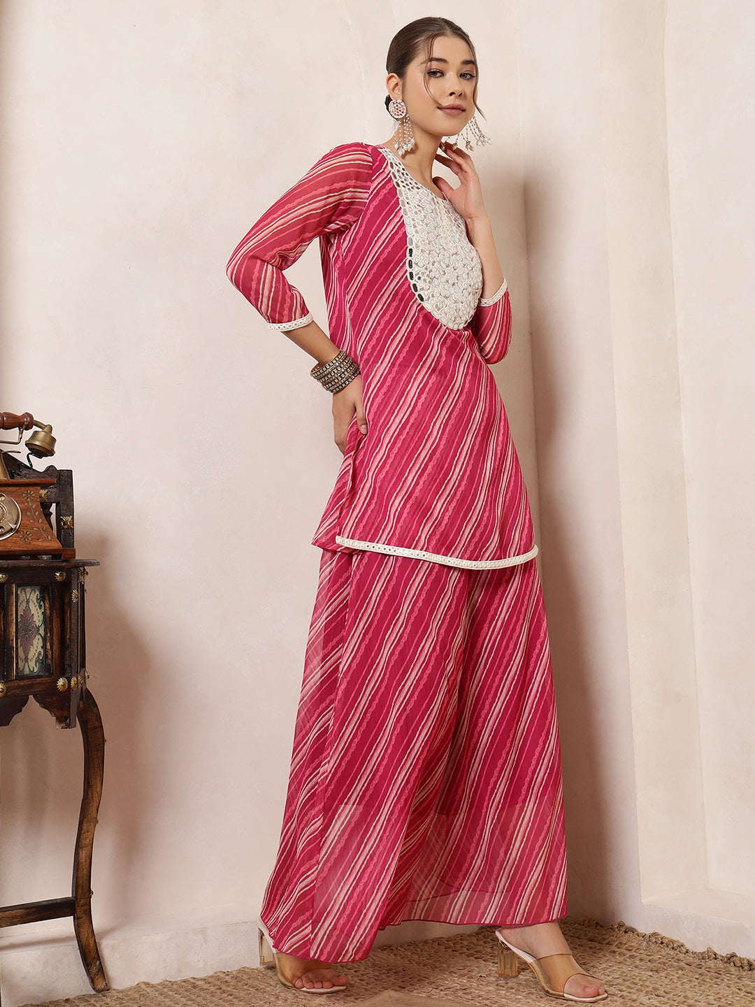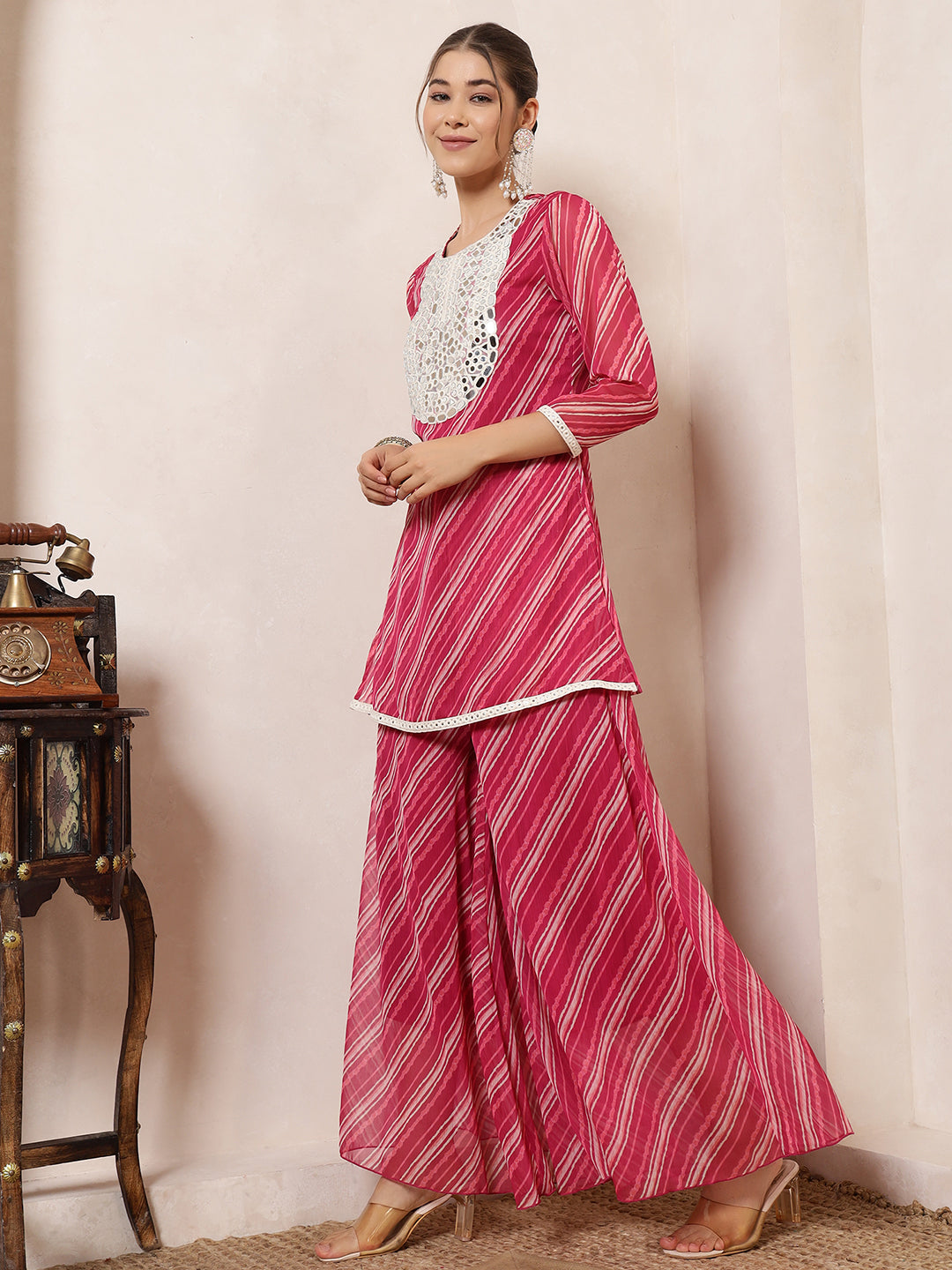 Pink Laheriya Printed Indo Western Kurti With Sharara Women Co-Ord Set