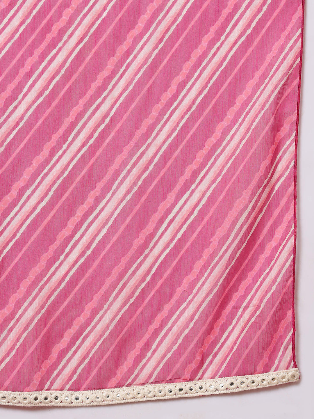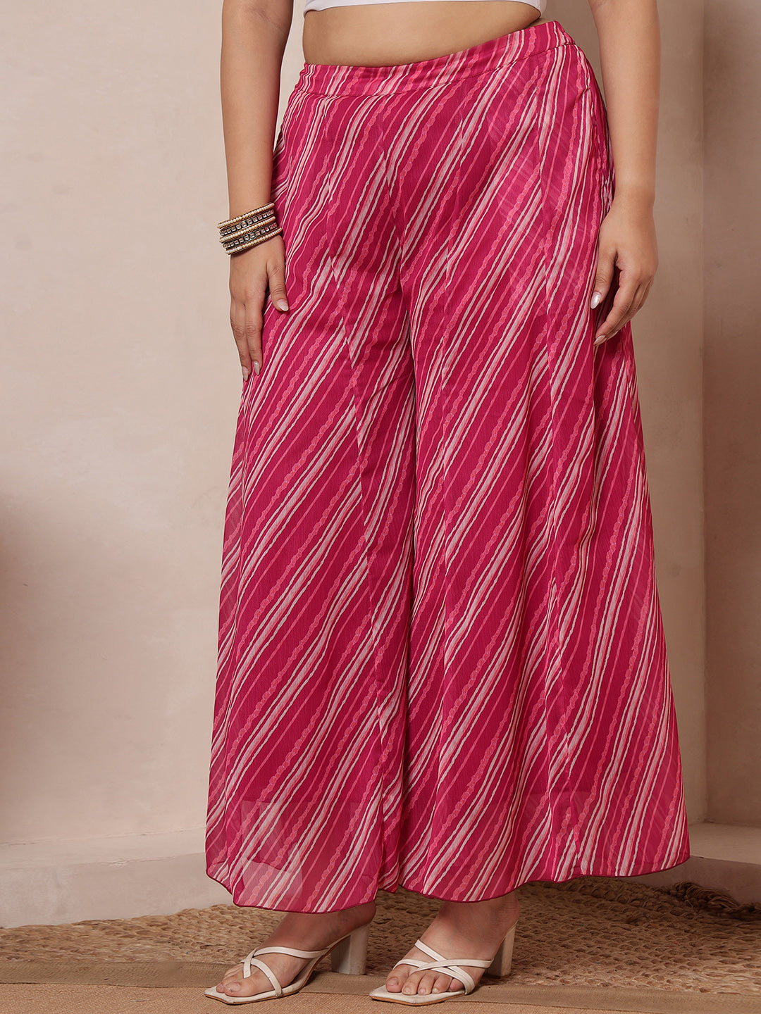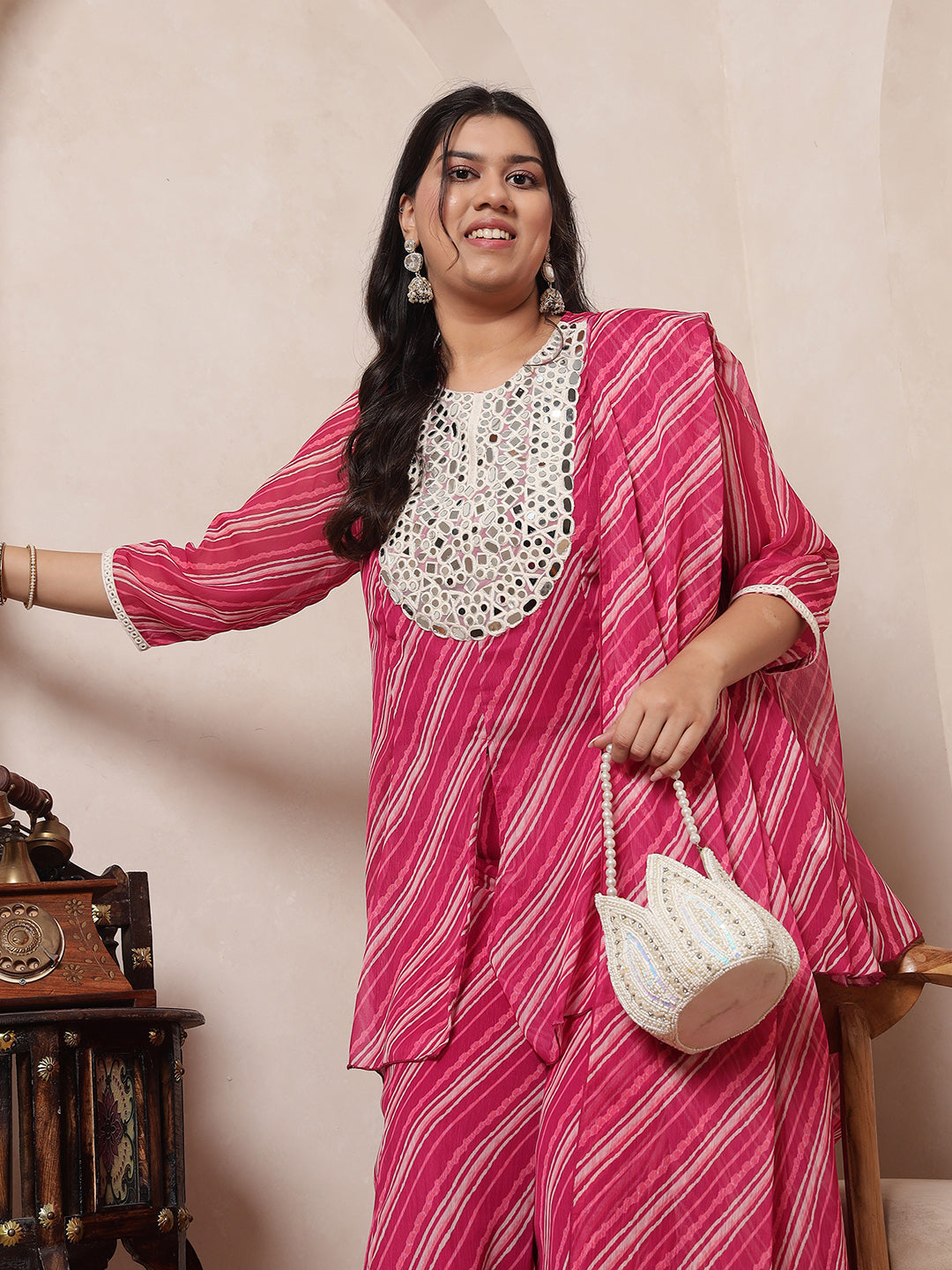 Pink Magenta Laheriya Peplum Embroidered Neck Patch Top With Panel Sharara With Dupatta Women Indo Western Co-Ord Set