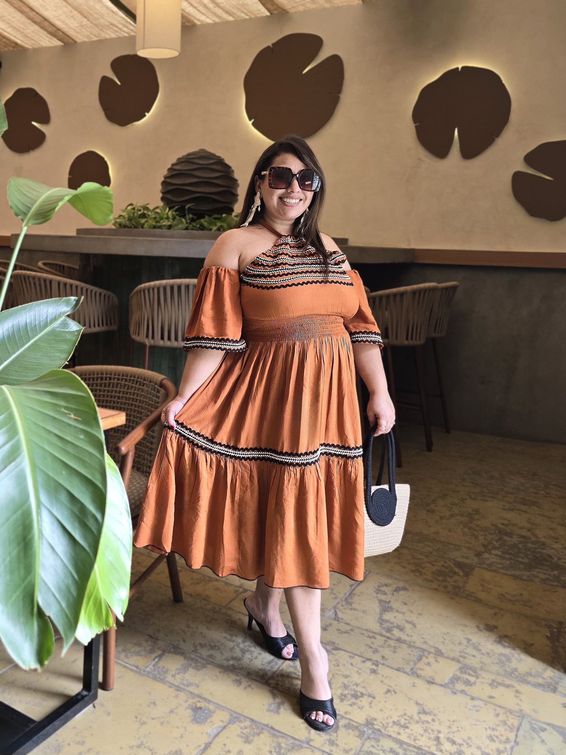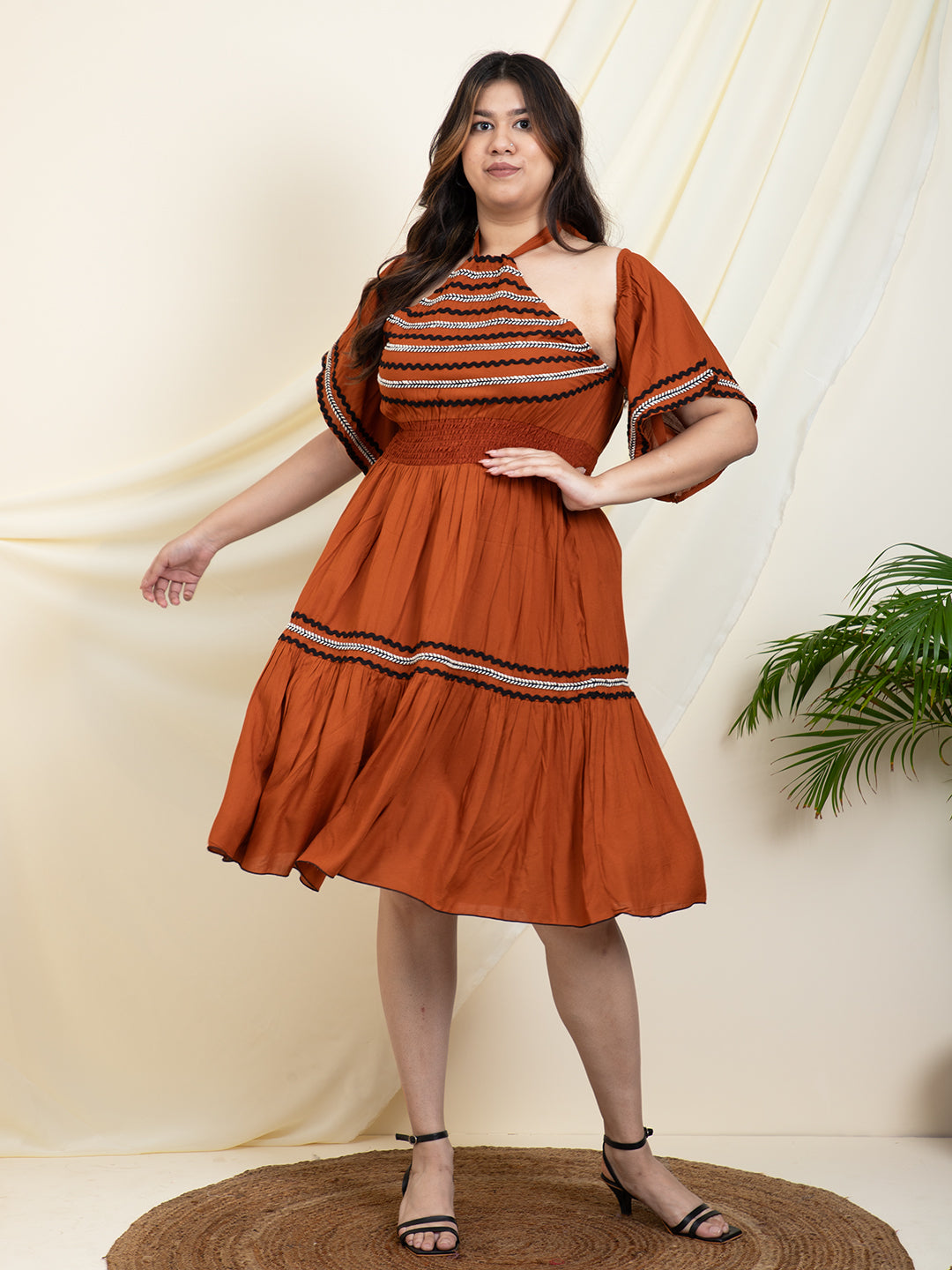 Tan Brown Halter Neck Tiered Women Plus Size Dress