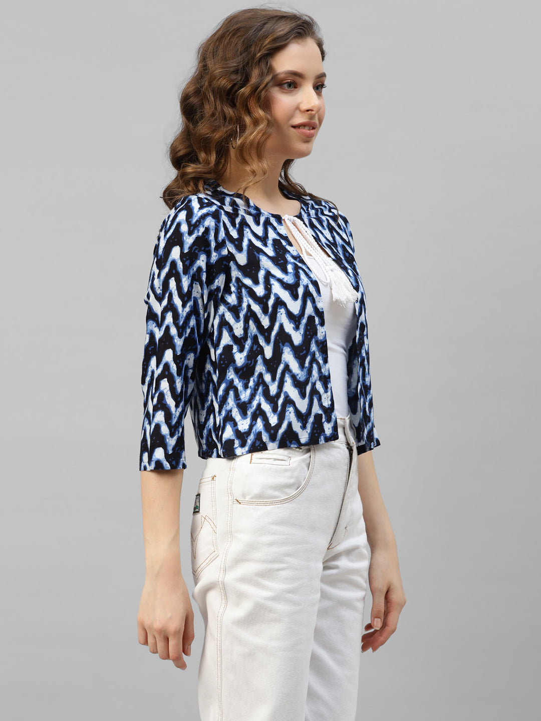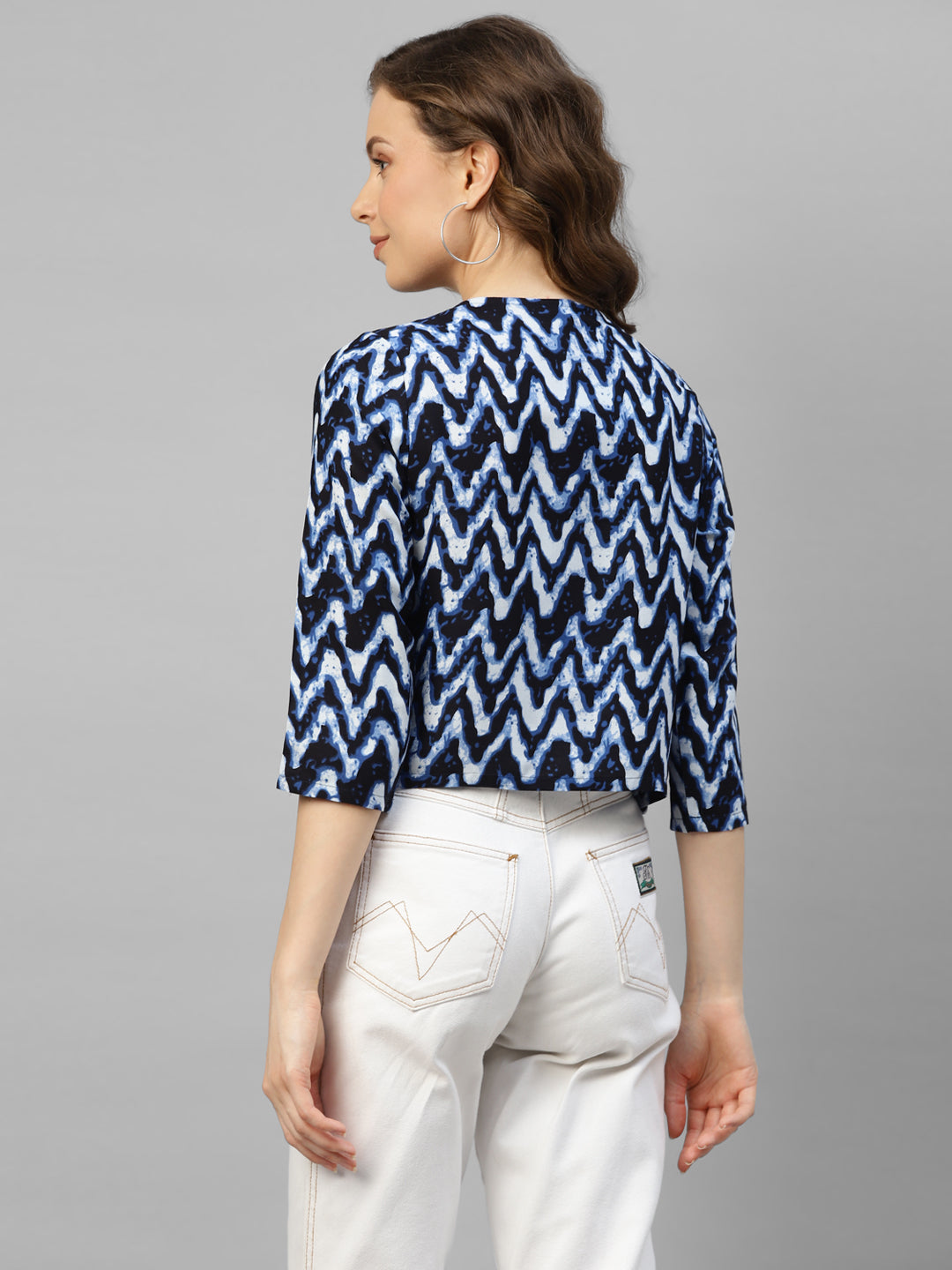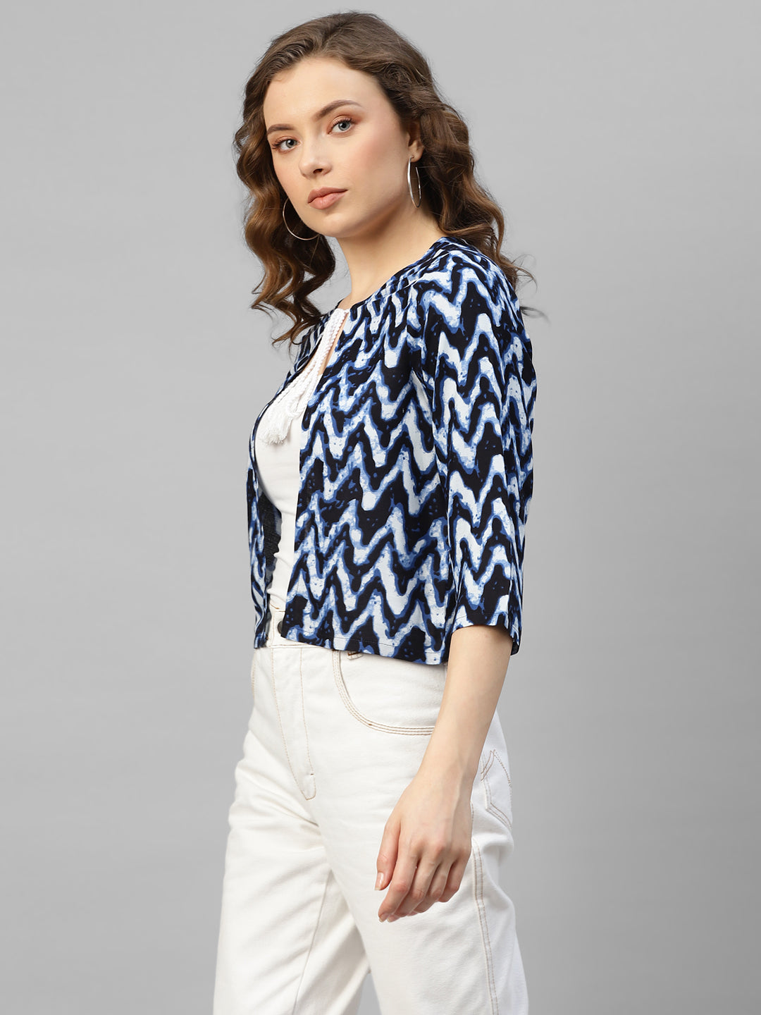 Women's Navy Blue Zig-Zag Rayon Cropped Shrug