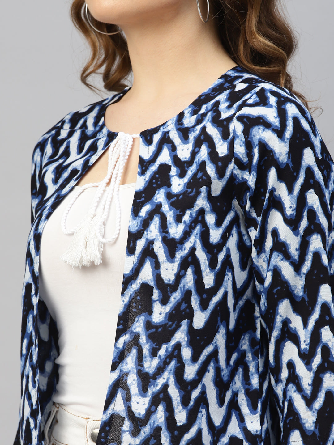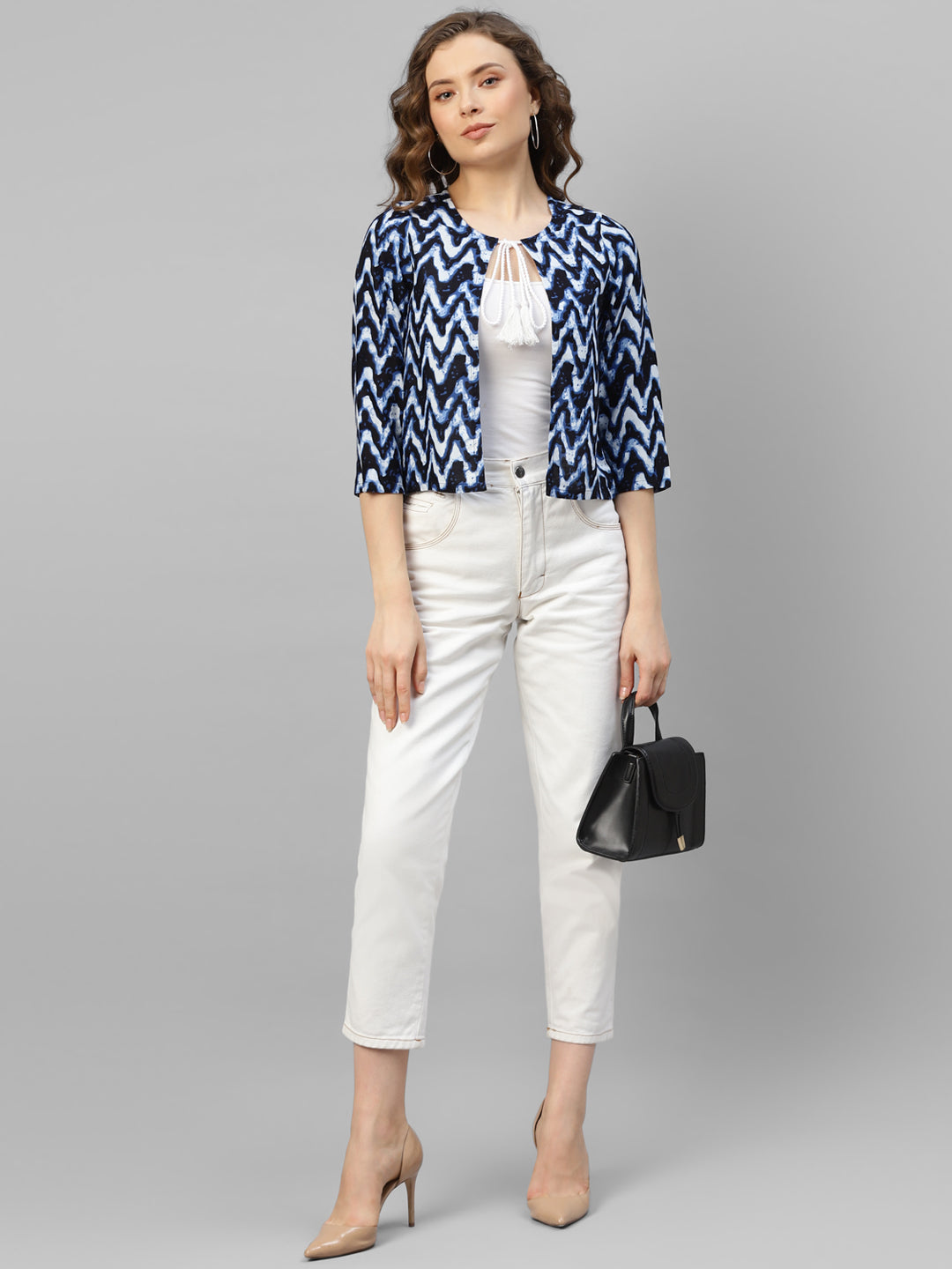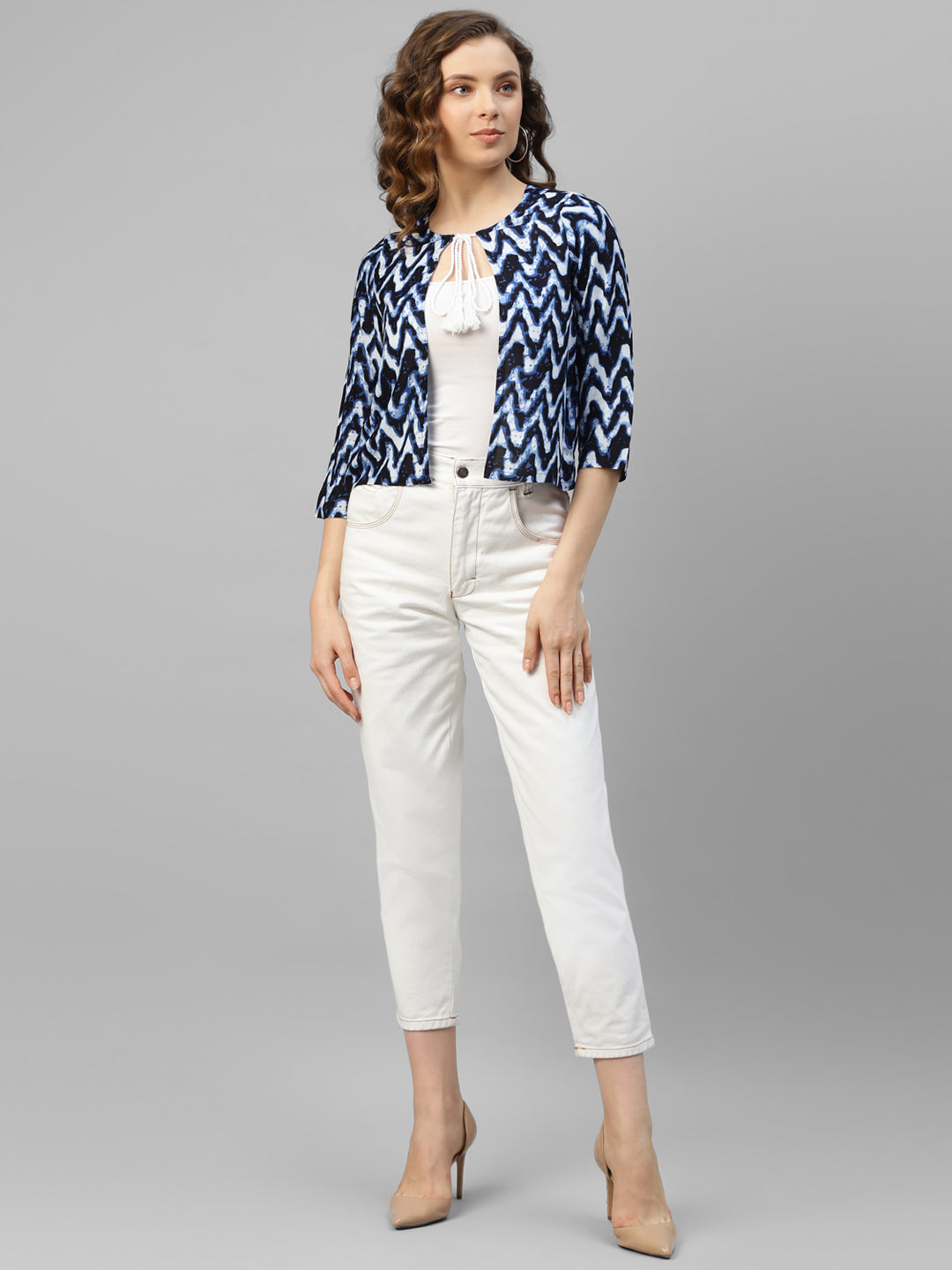 Women's Navy Blue Zig-Zag Rayon Cropped Shrug
