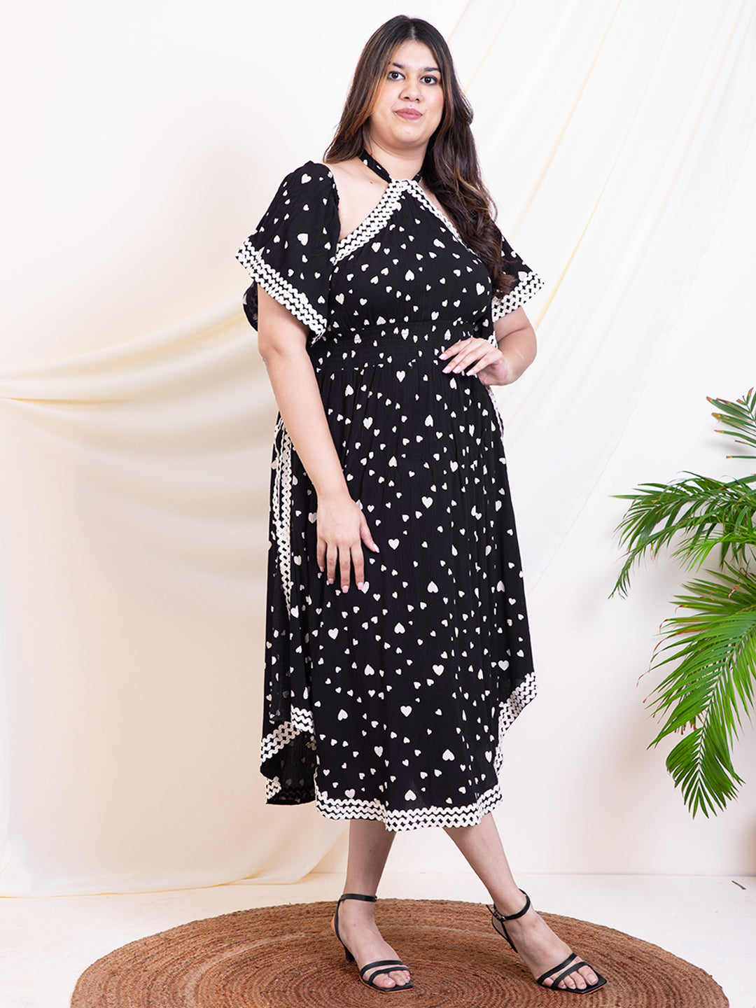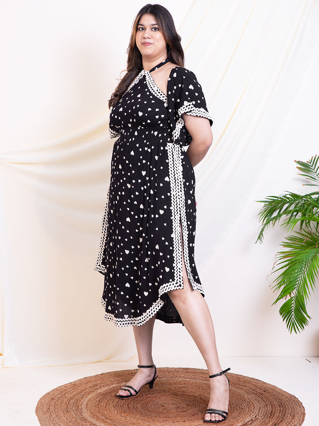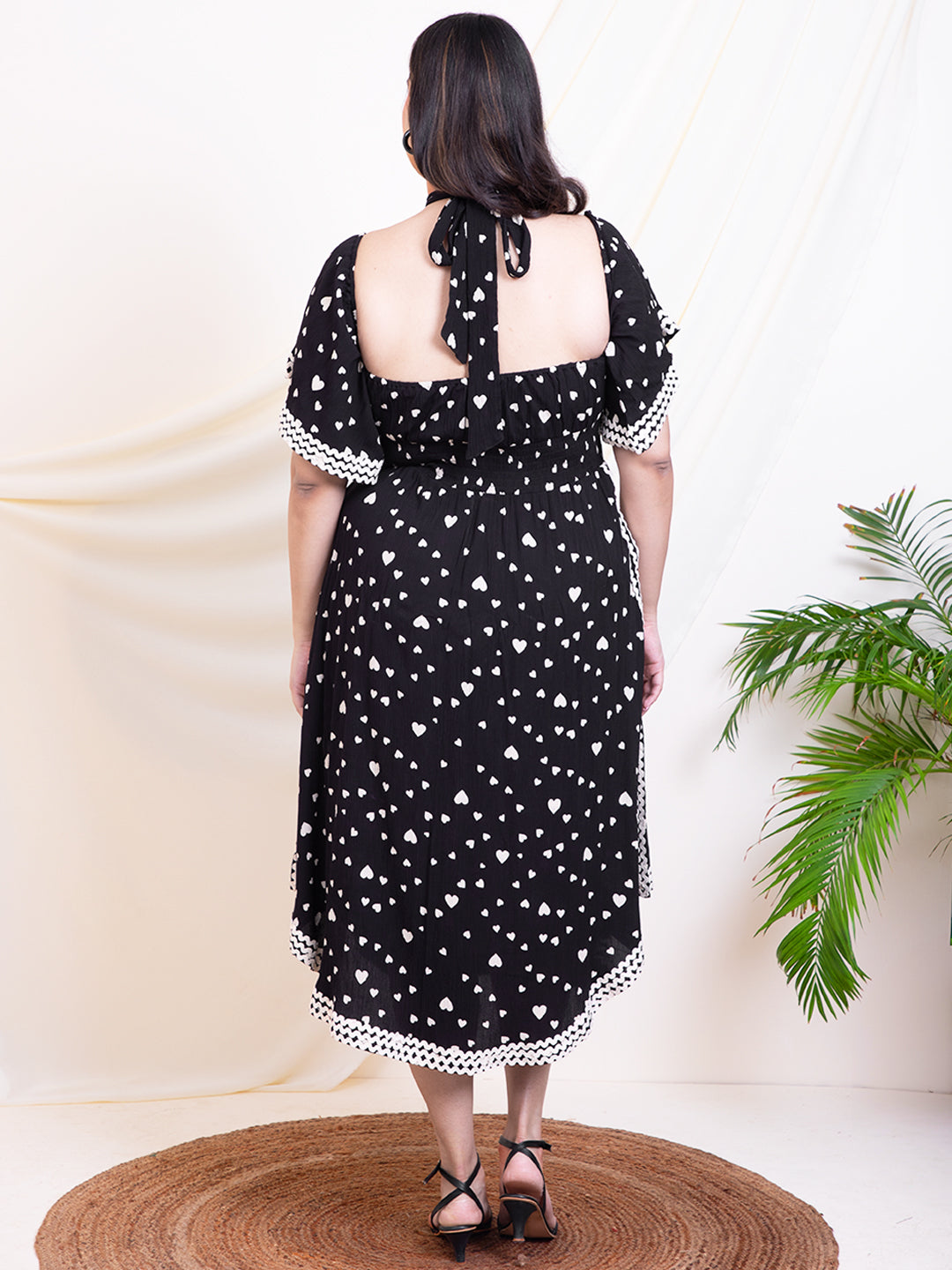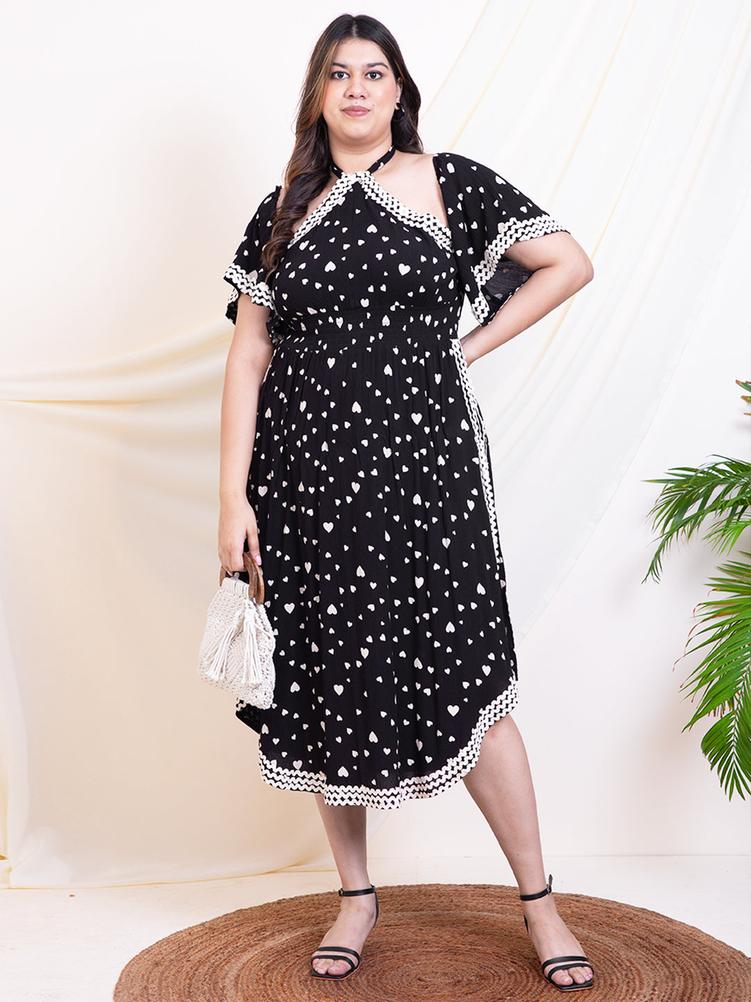 Women's Plus Size Black Heart Printed Halter Neck A Line Women Slit Dress