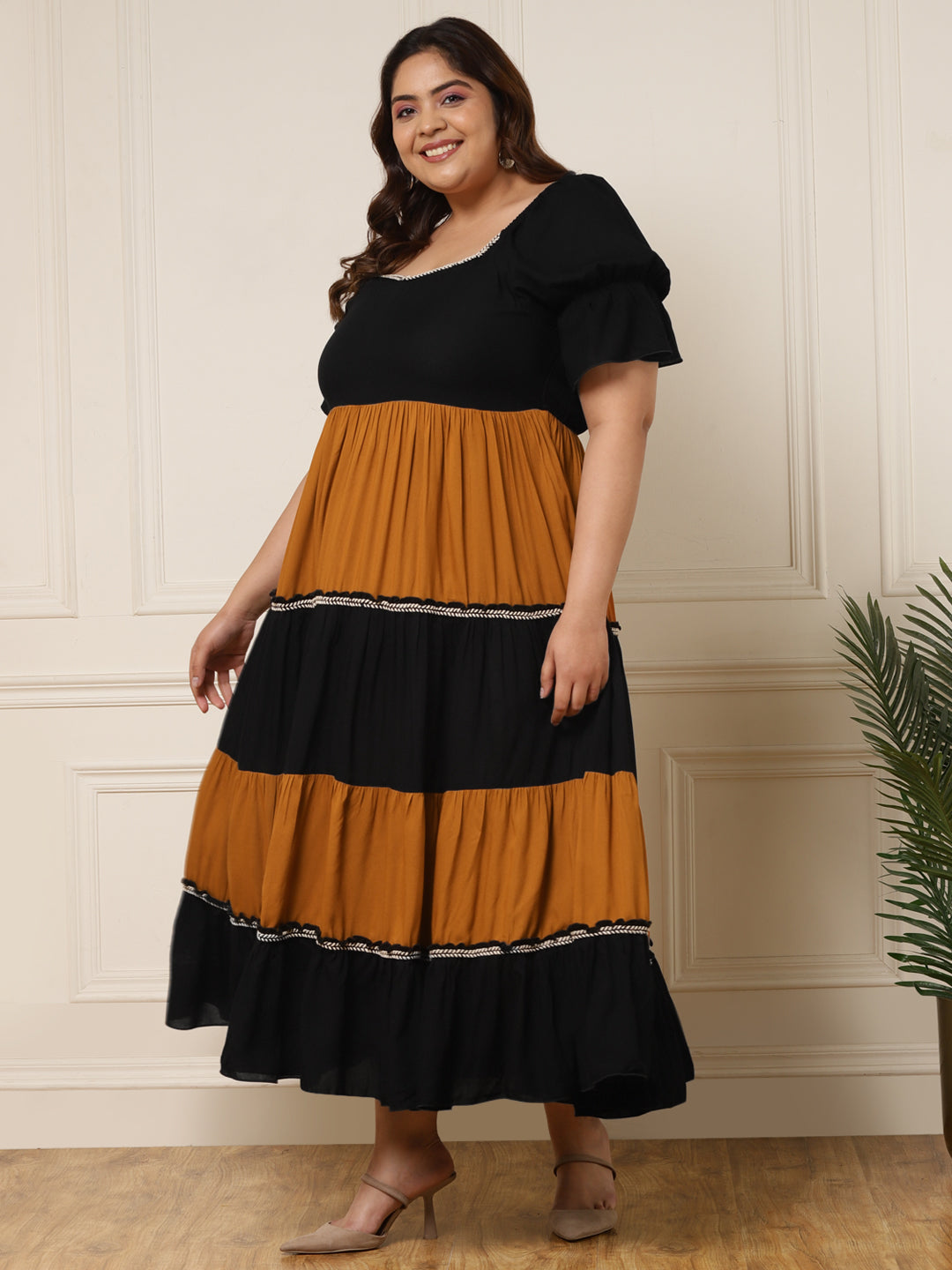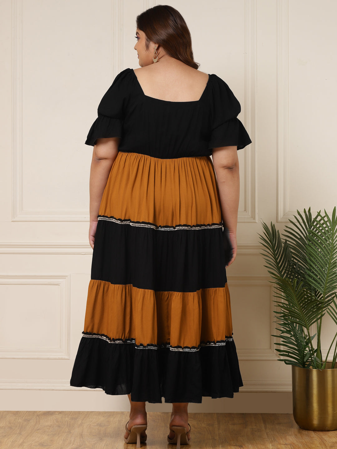 Women's Plus Size Black & Mustard Color block Dress