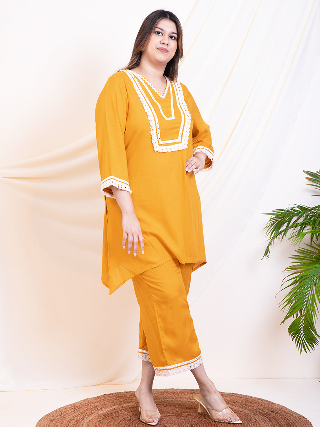 Women's Plus Size Mustard Ethnic Kurta Sets With Dupatta For Women