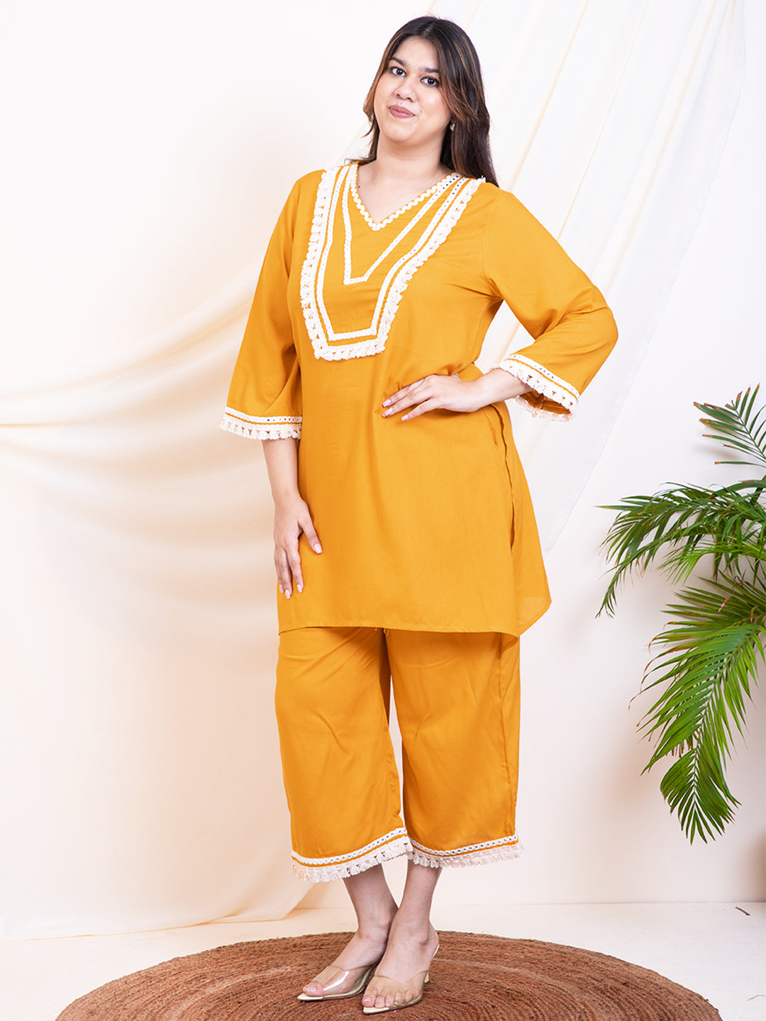 Women's Plus Size Mustard Ethnic Kurta Sets With Floral Dupatta For Women