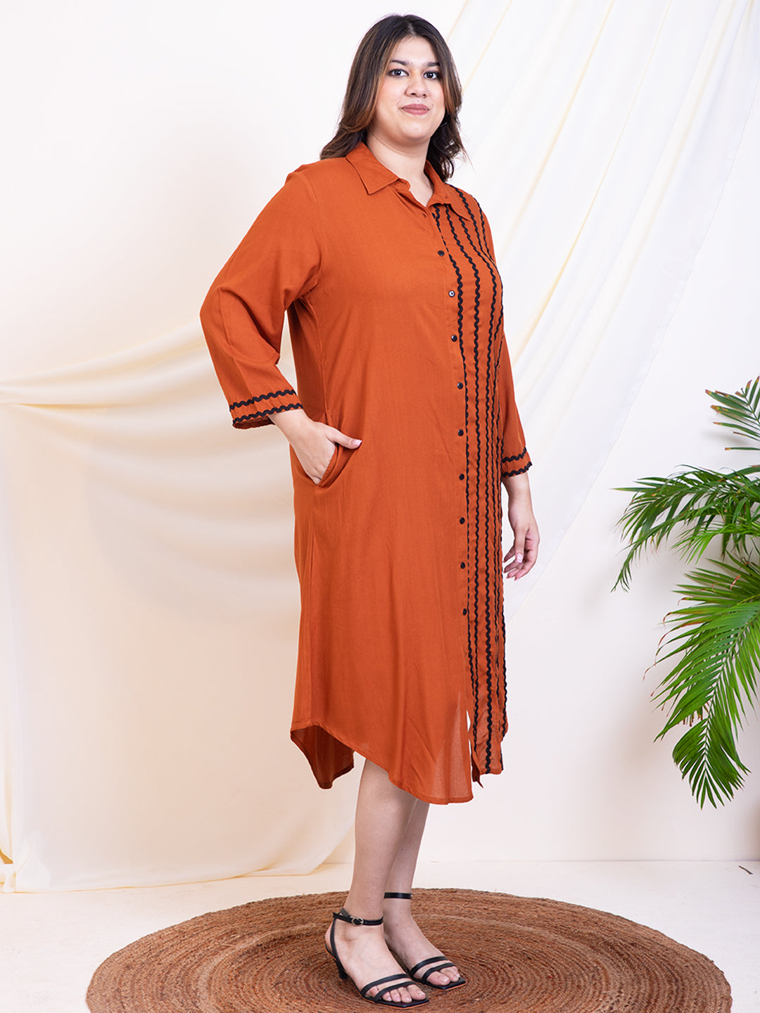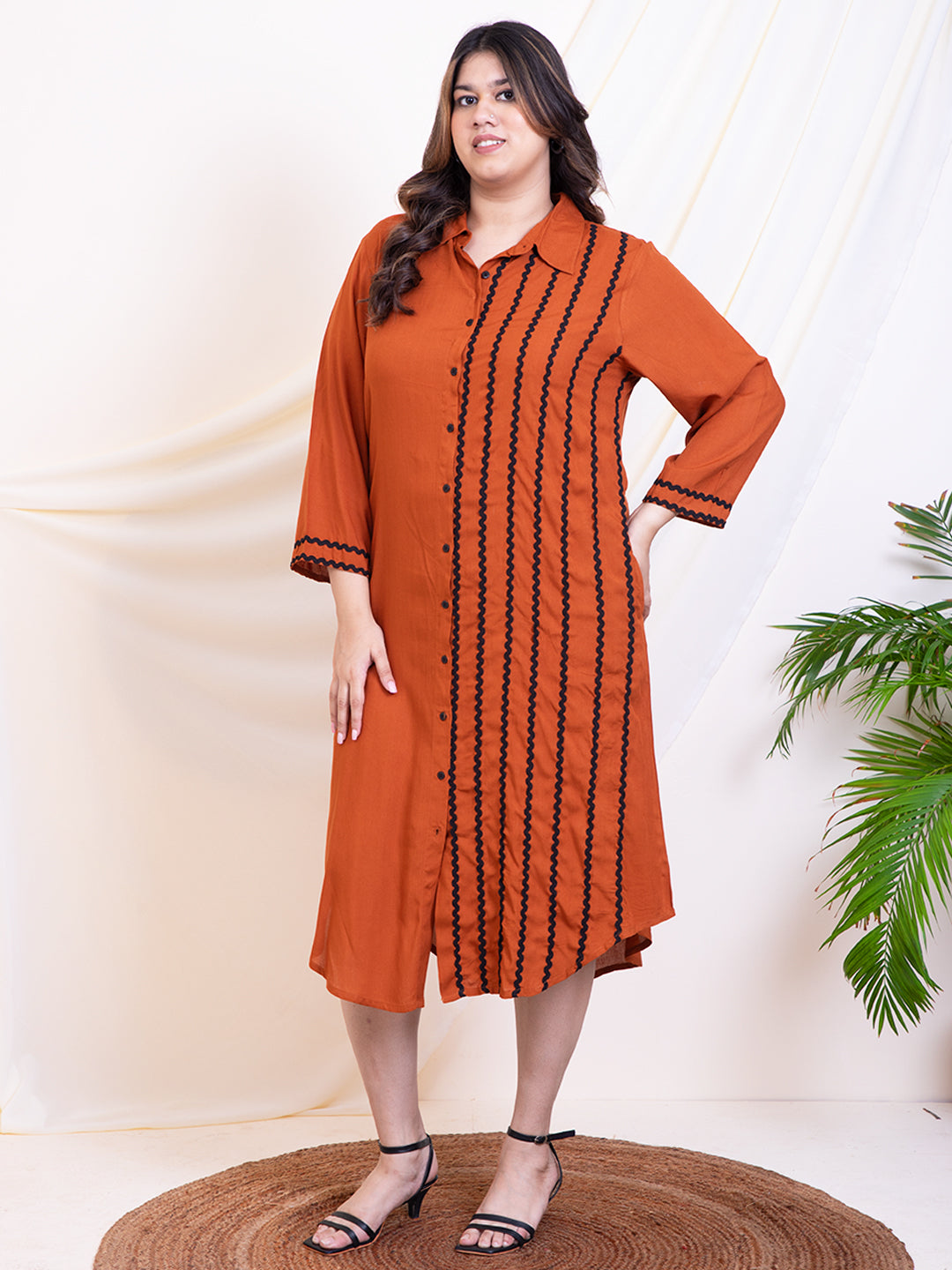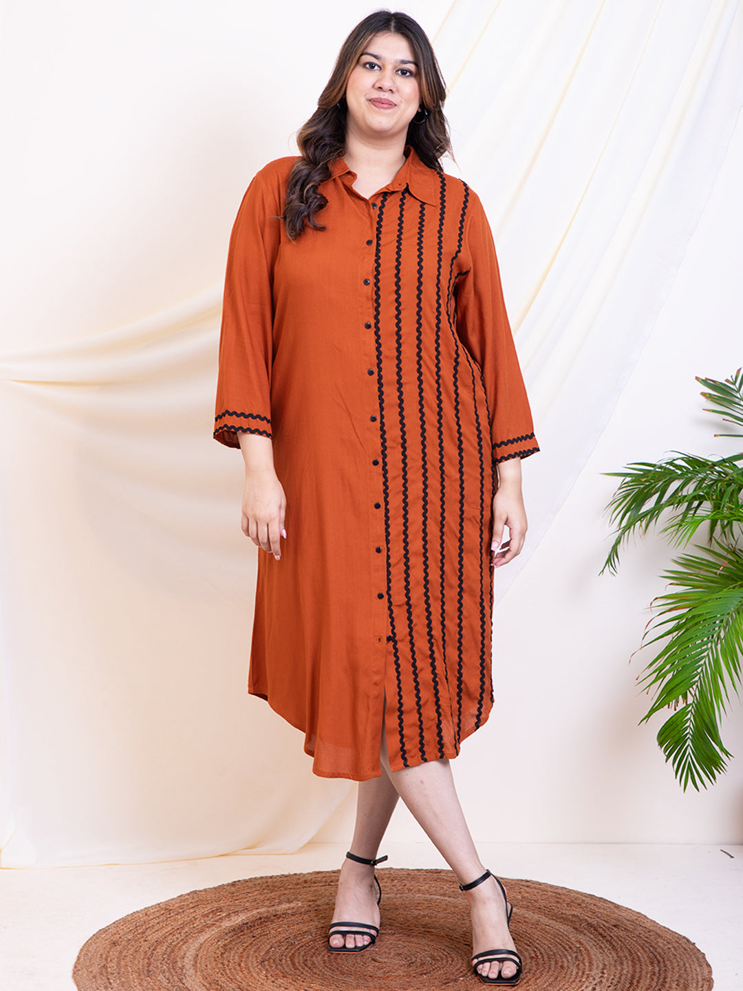 Women's Plus Size Tan Brown Women Shirt Dress
